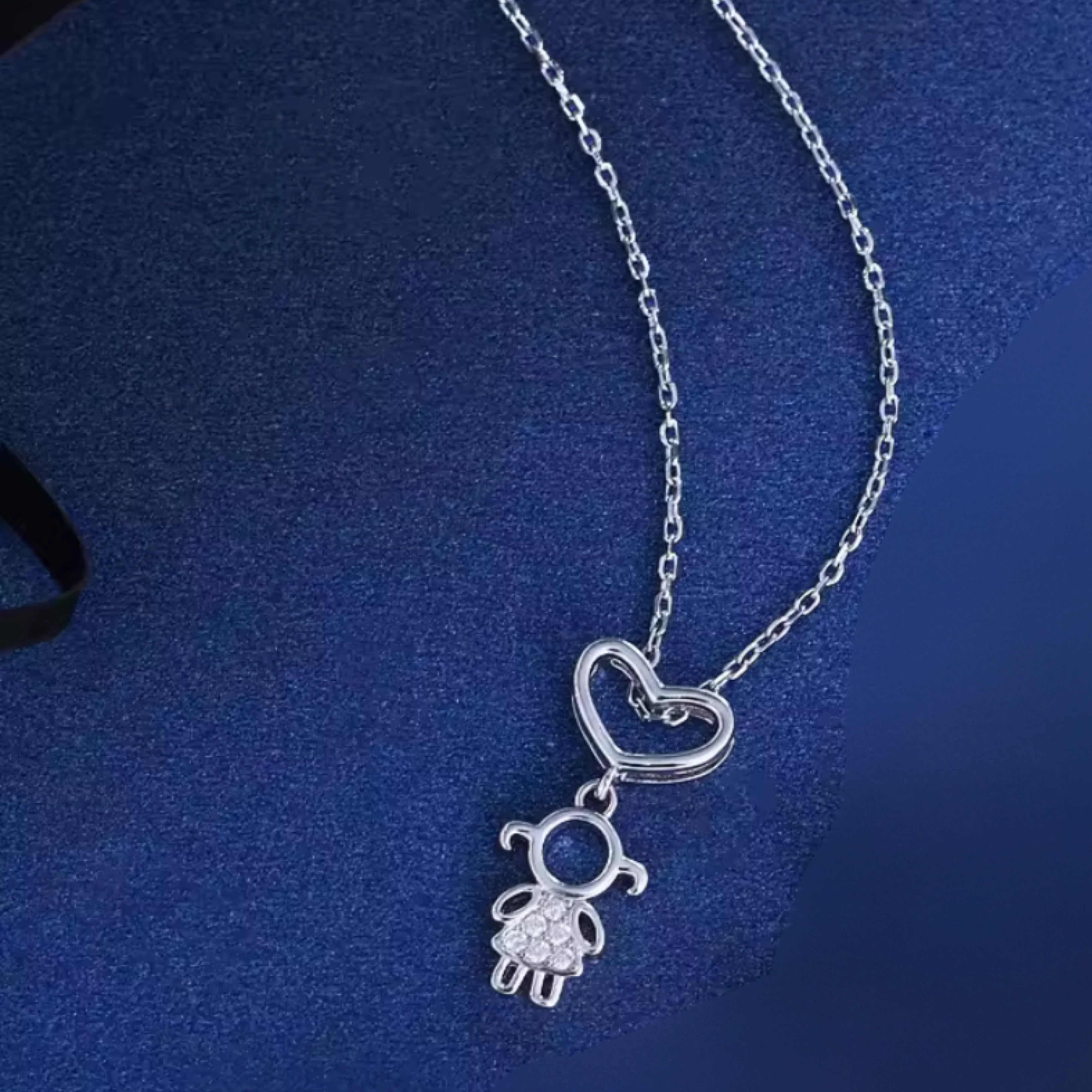 Cartoon Heart Link Chain 925 Silver Cubic Zircon Necklace - Girls