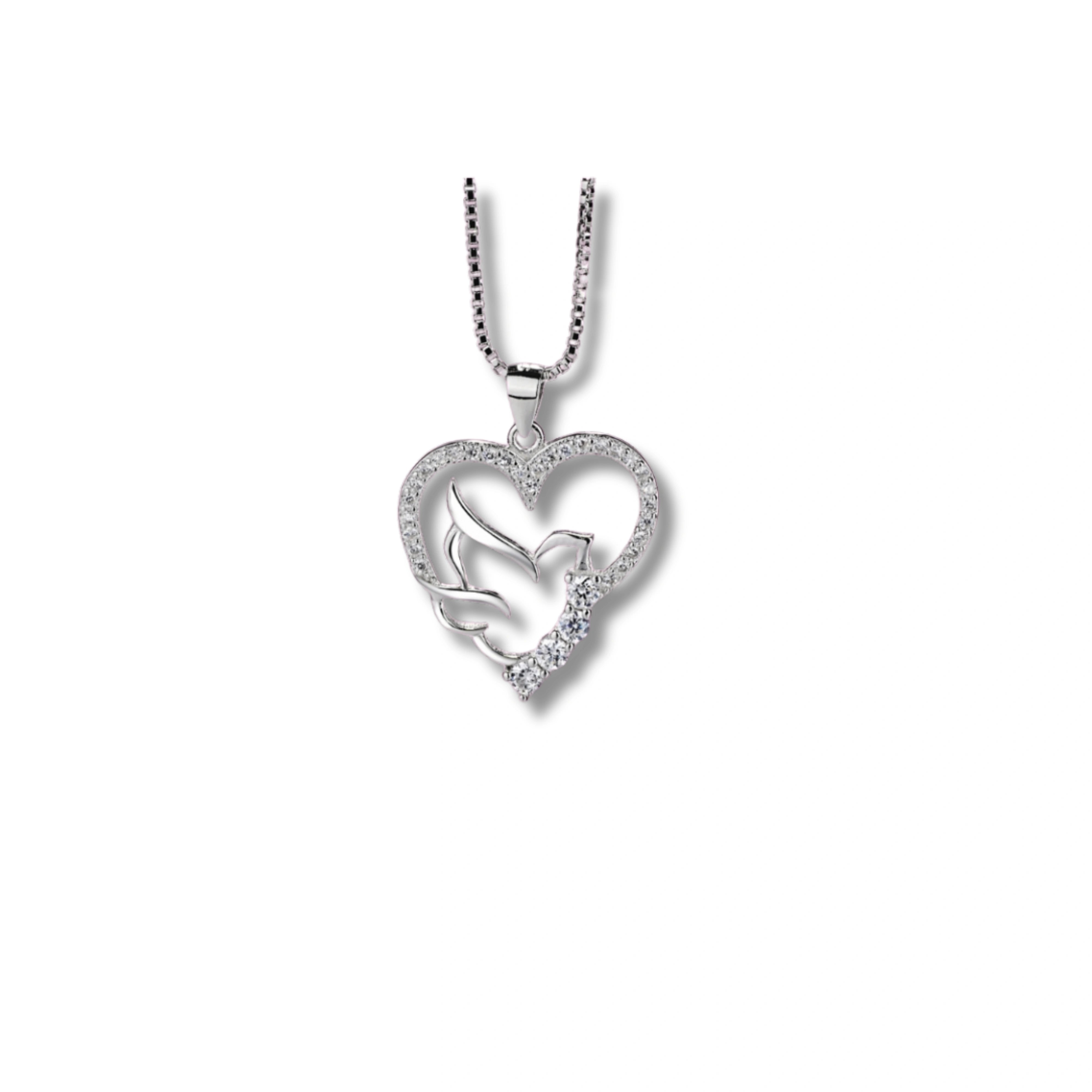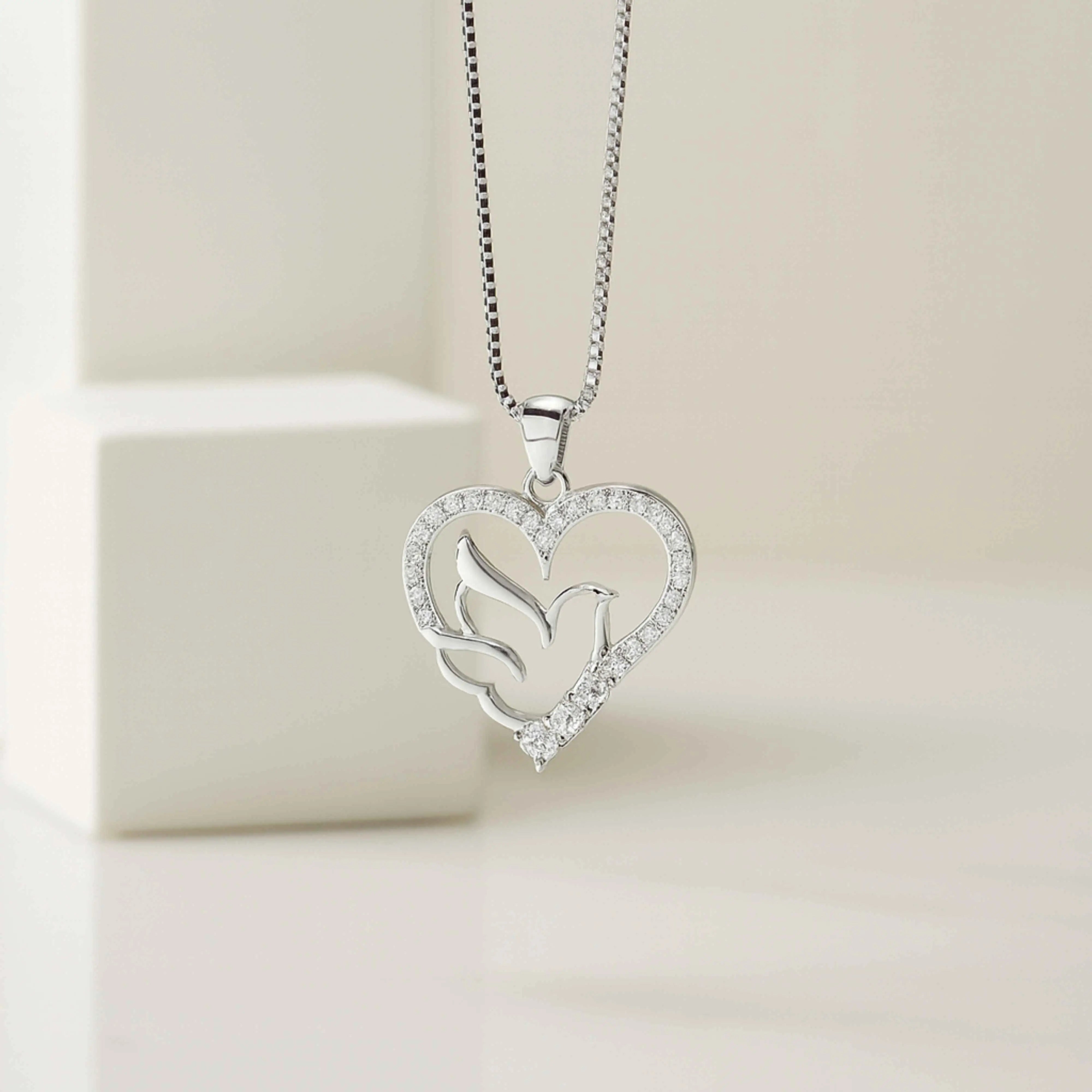 925 Silver Dove and Heart Pendant with Crystal Accents