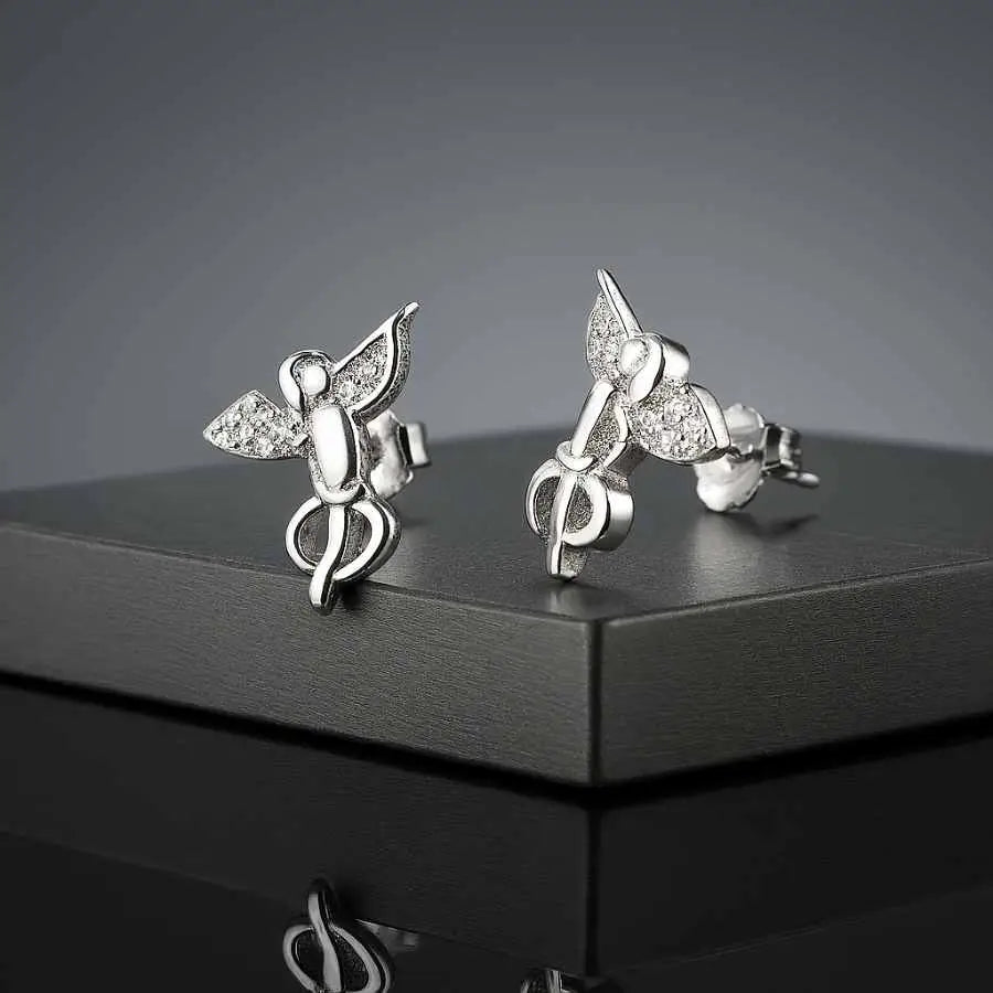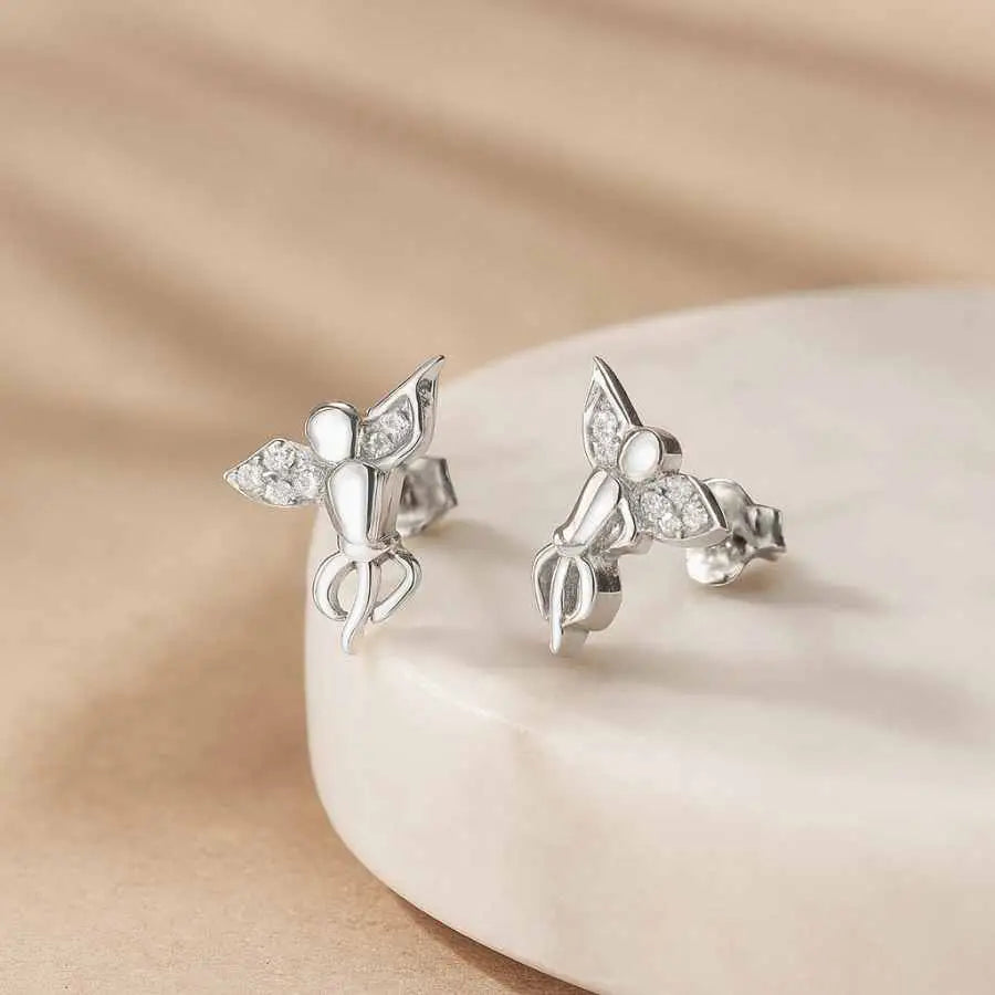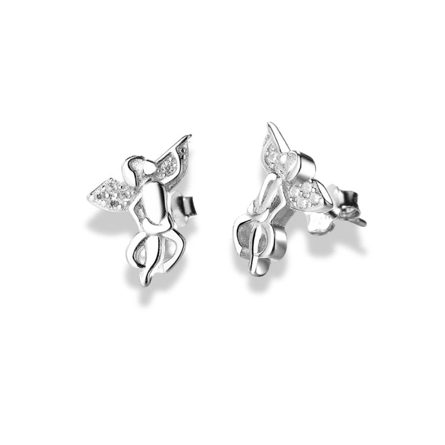 925 Sterling Silver Angel Stud Earrings|Rhodium Plated with Cubic Zirconia Wings