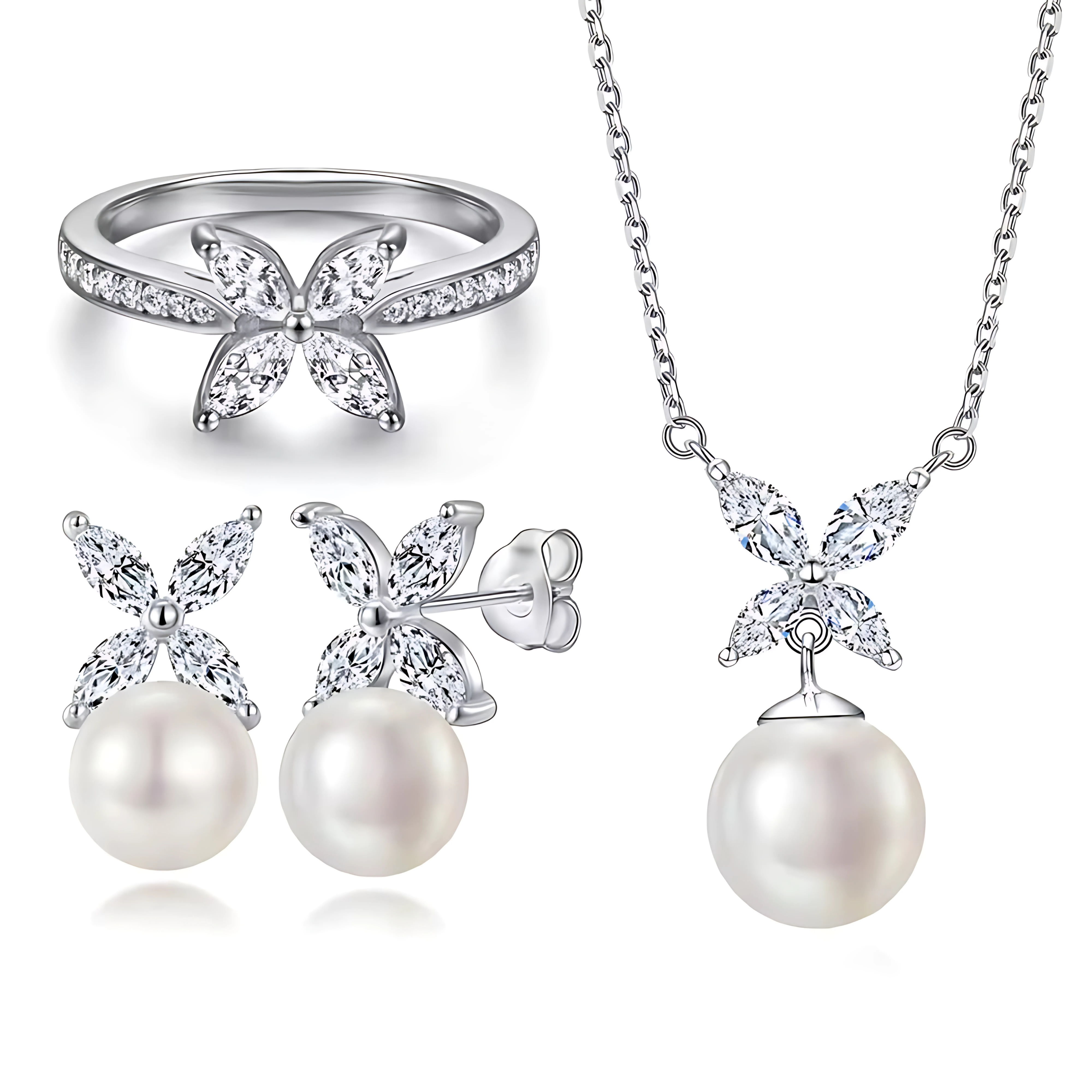 925 Sterling Silver Butterfly Pearl Elegance Set