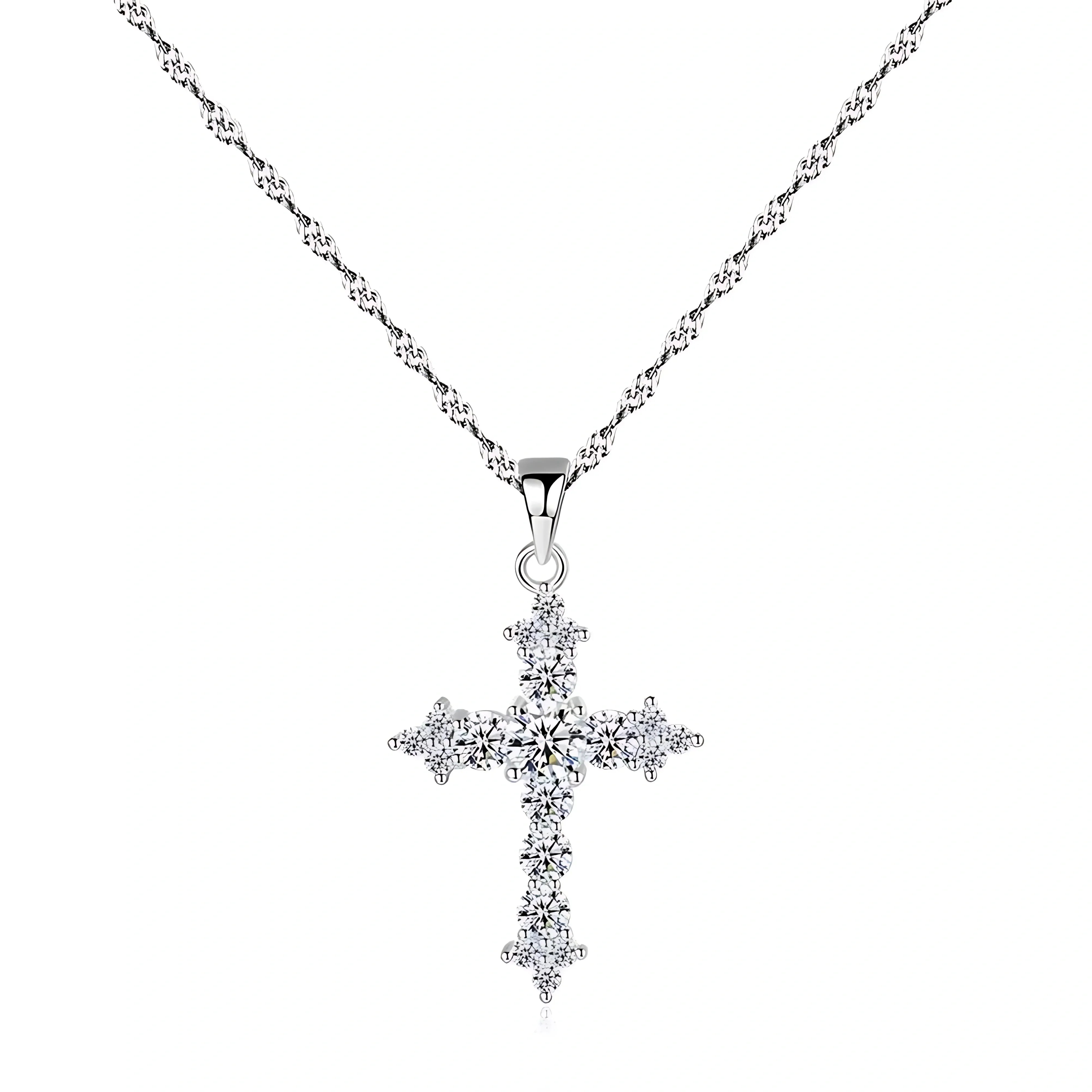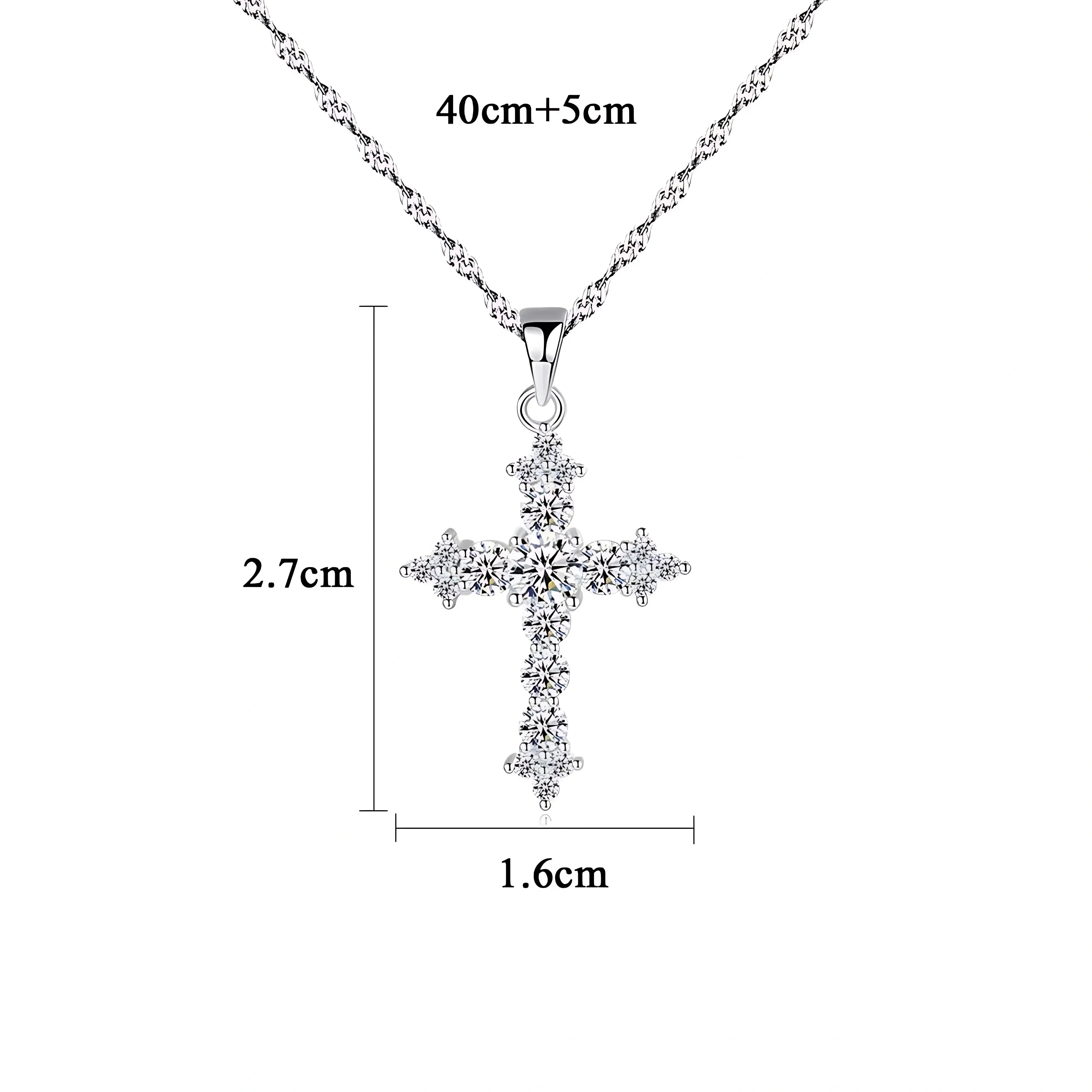 925 Sterling Silver Cross Pendant Necklace with Zircon Accents