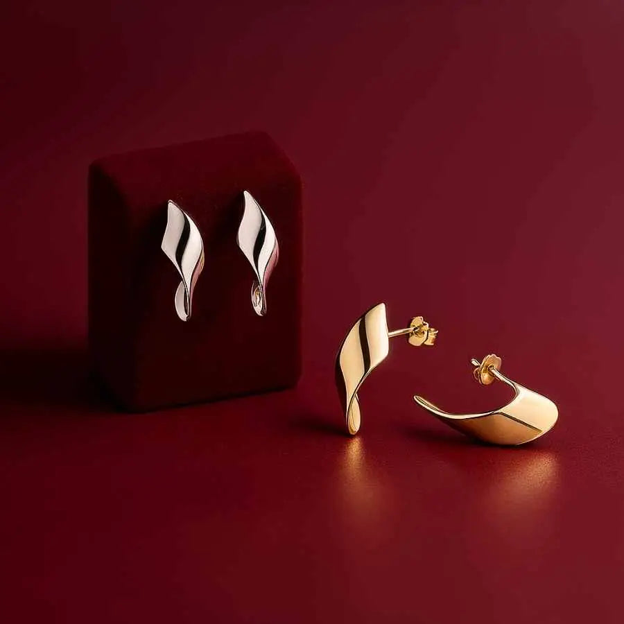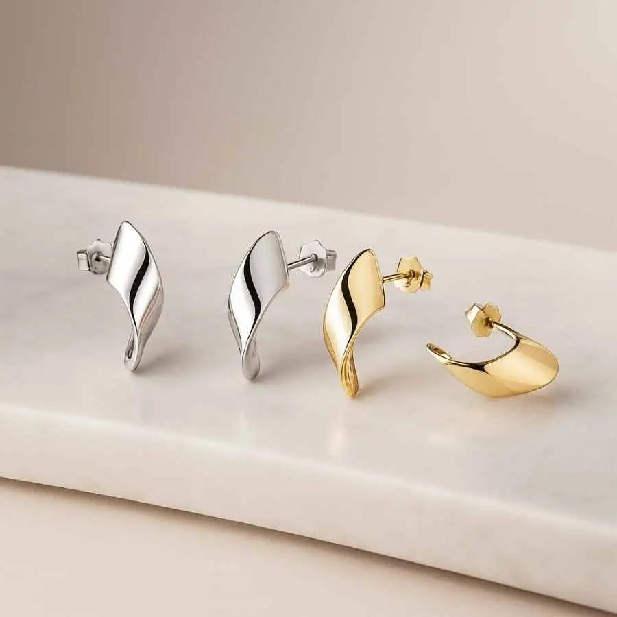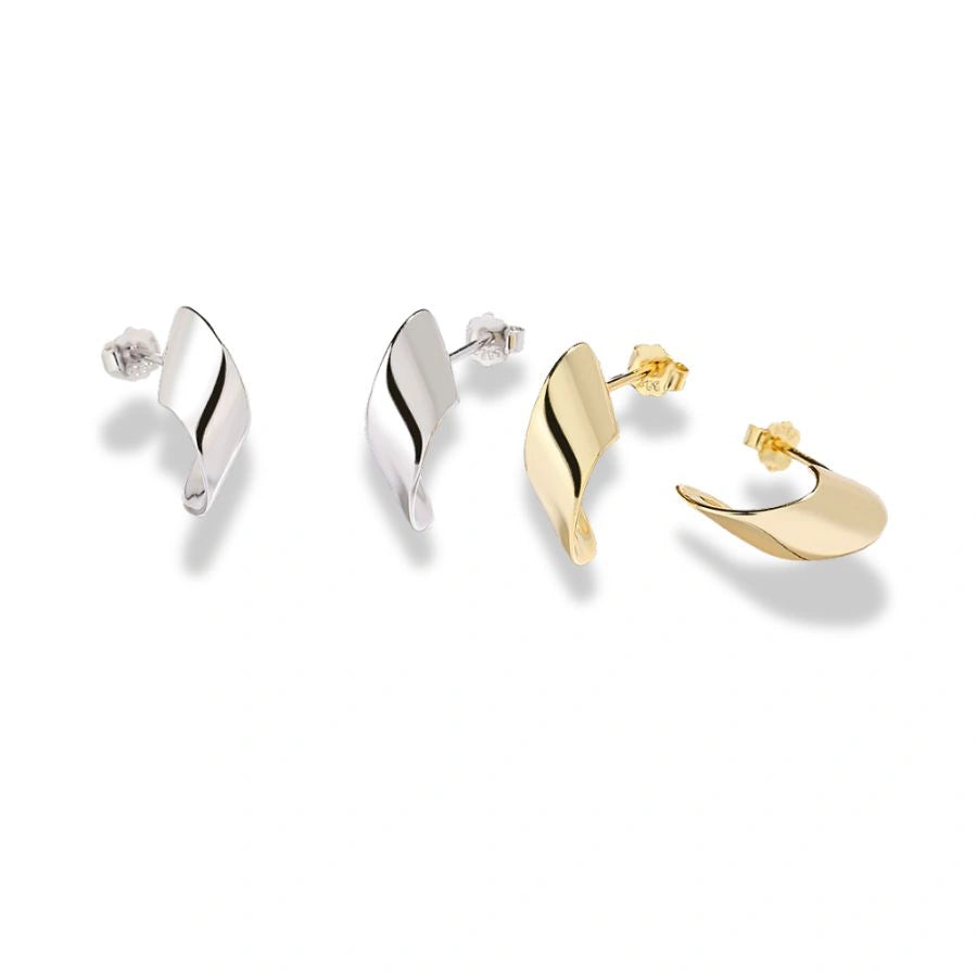 925 Sterling Silver Curved Minimal Earrings | Rhodium & Gold Plated Options