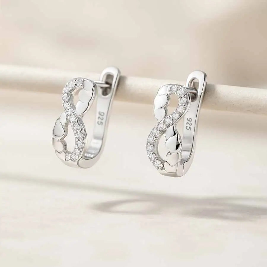 925 Sterling Silver Heart Motif Earrings | Rhodium Plated with Cubic Zirconia
