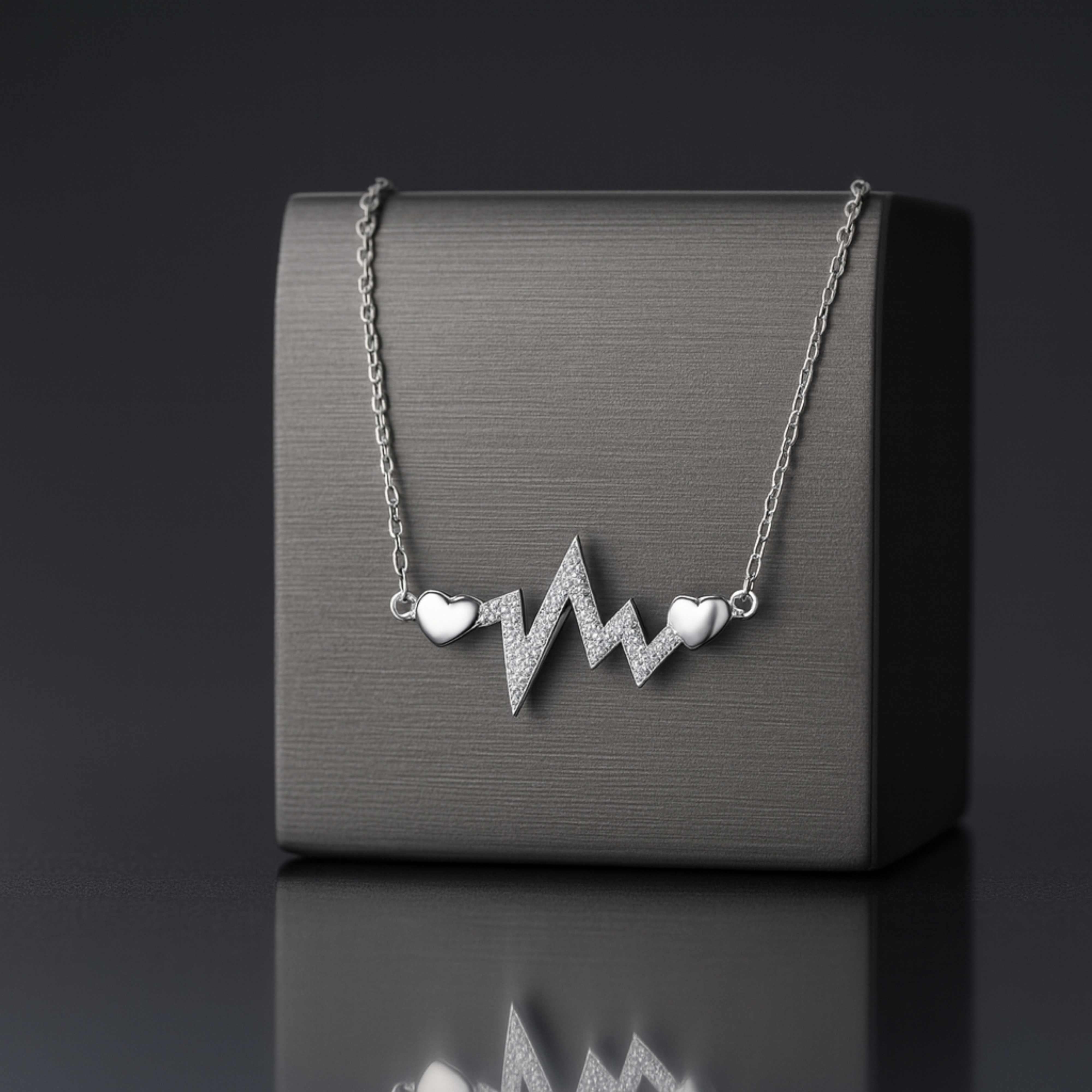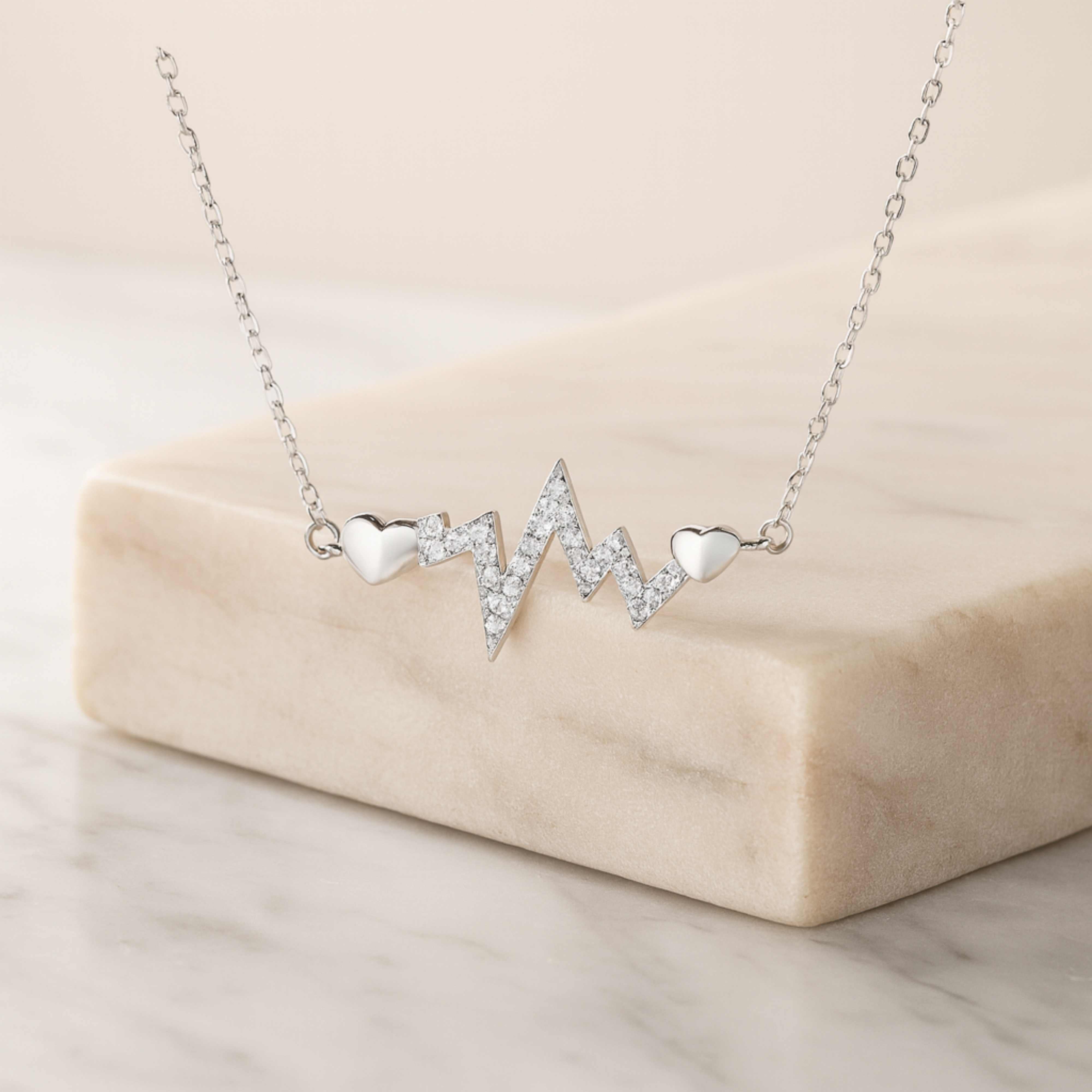 925 Sterling Silver Heartbeat Necklace with Hearts | Rhodium Plated CZ Pendant