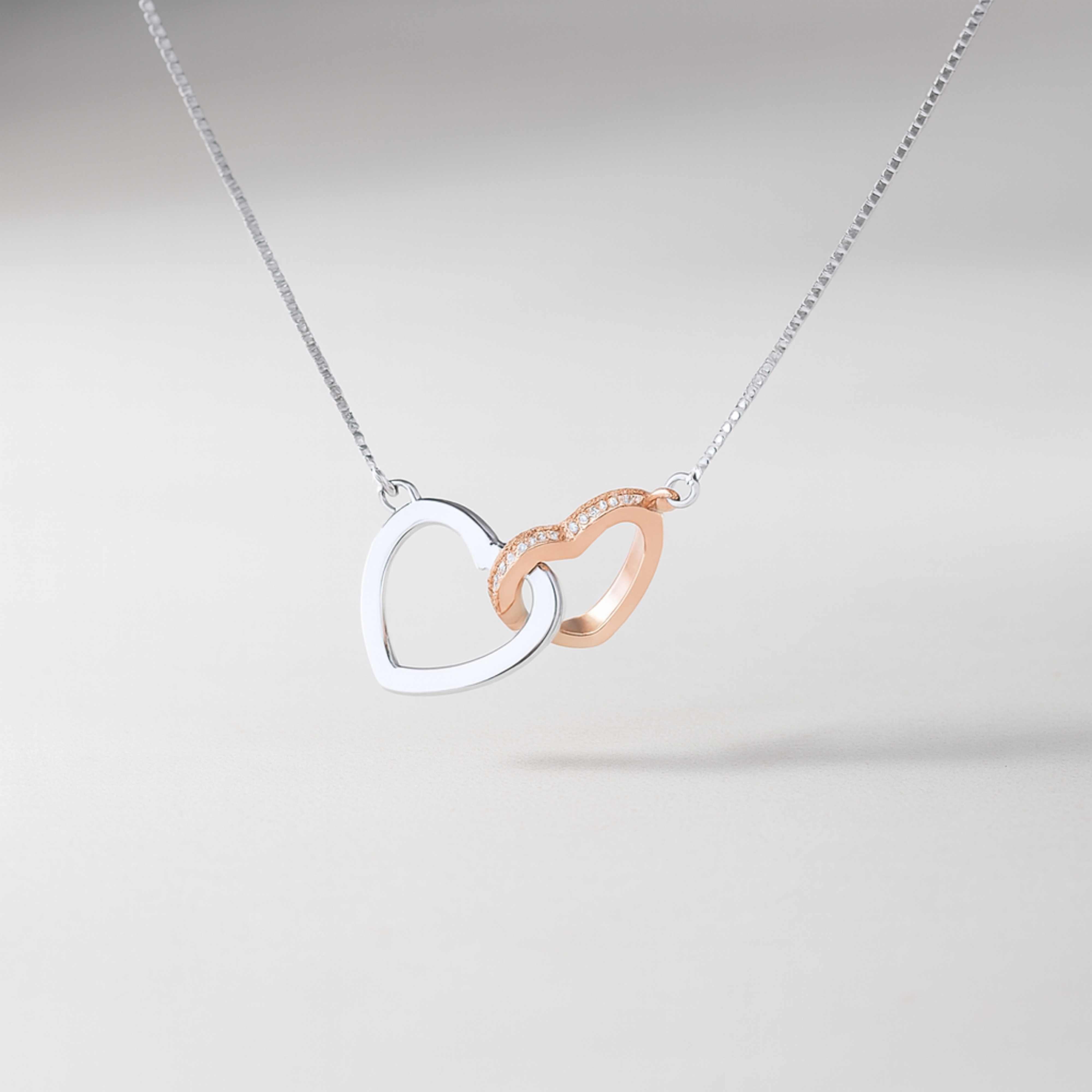 925 Sterling Silver Interlocking Hearts Necklace | Rose Gold & Rhodium Plated with Cubic Zirconia