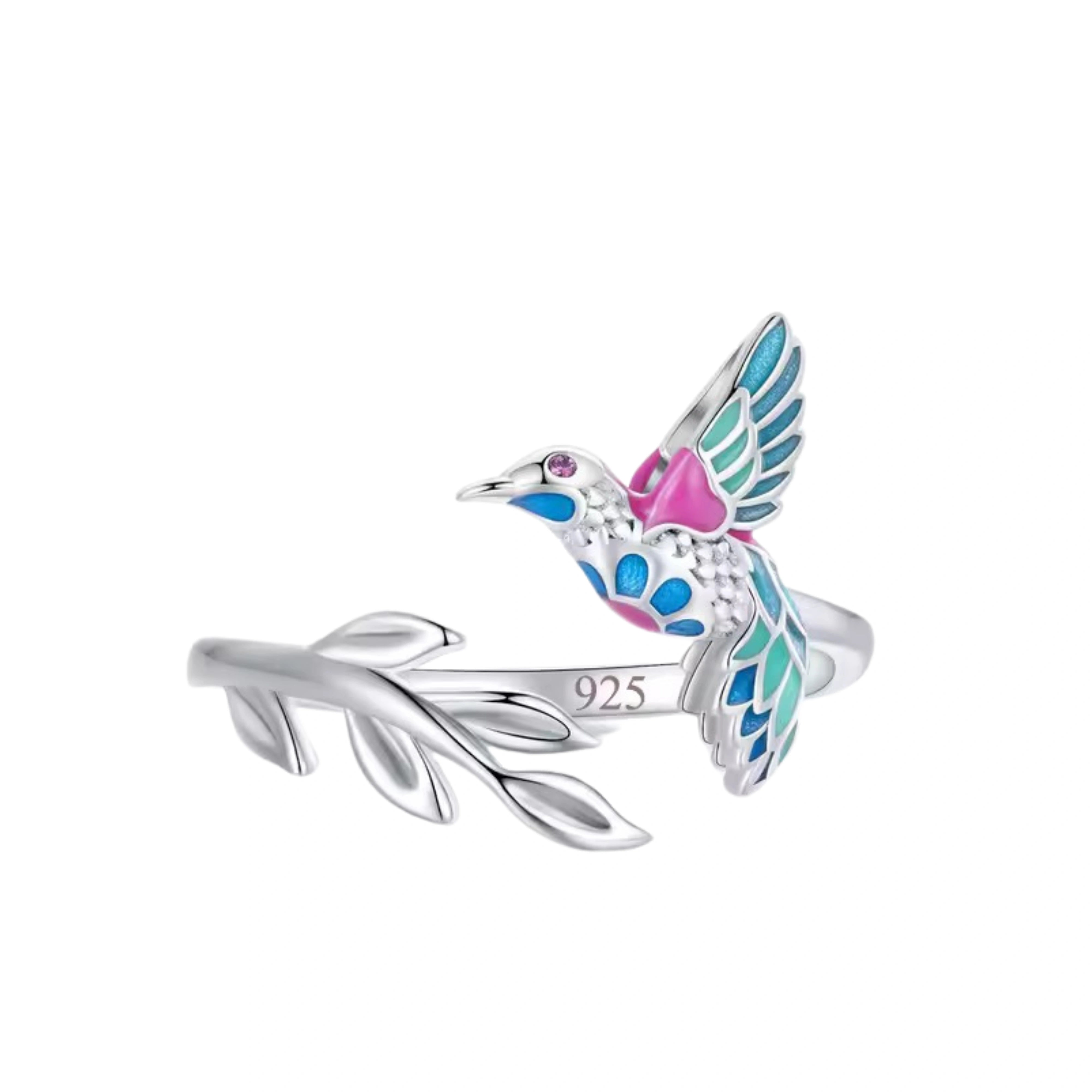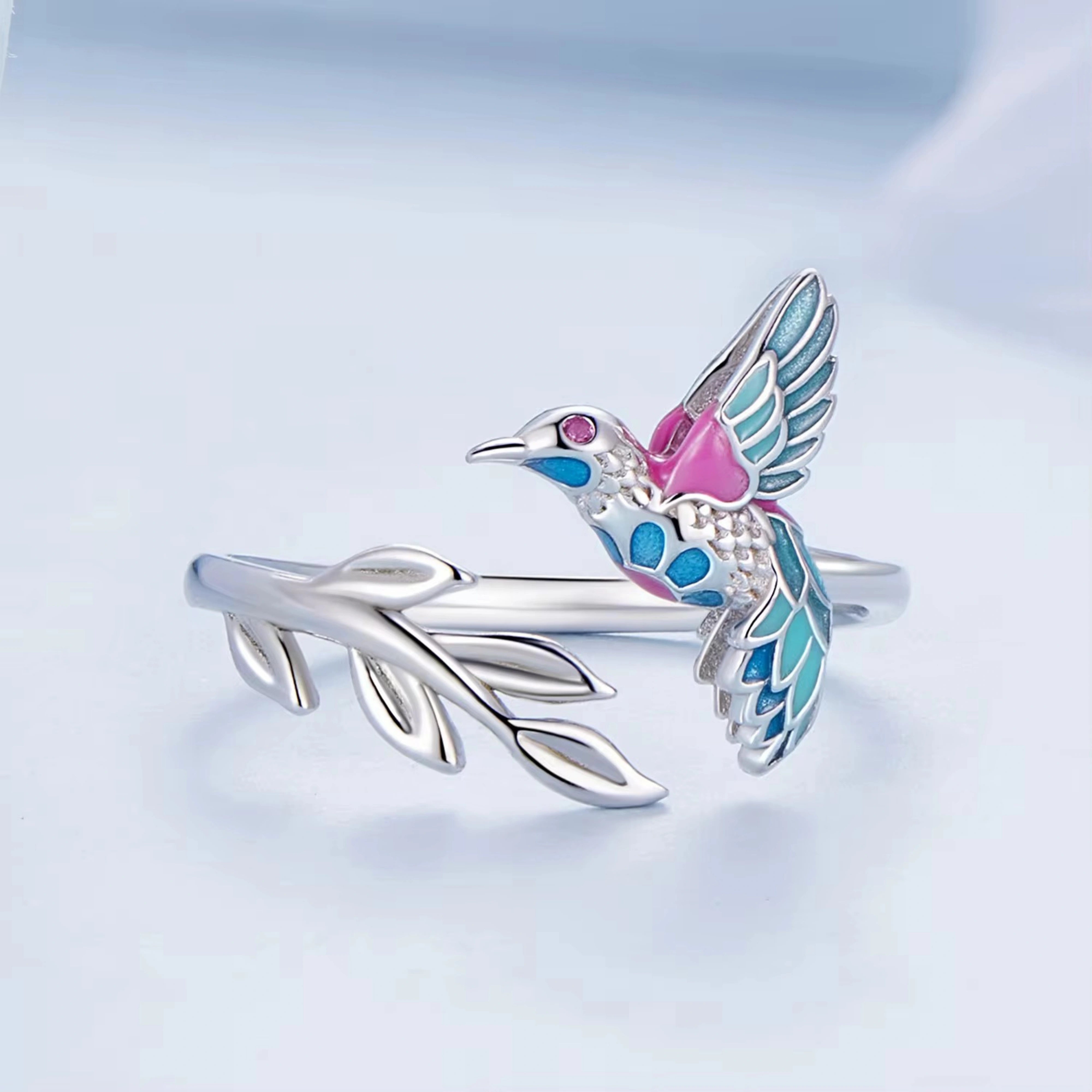 925 Sterling Silver Kingfisher Opening Ring Colorful Enamel Bird Adjustable Ring for Women Party Fine Jewelry Gift