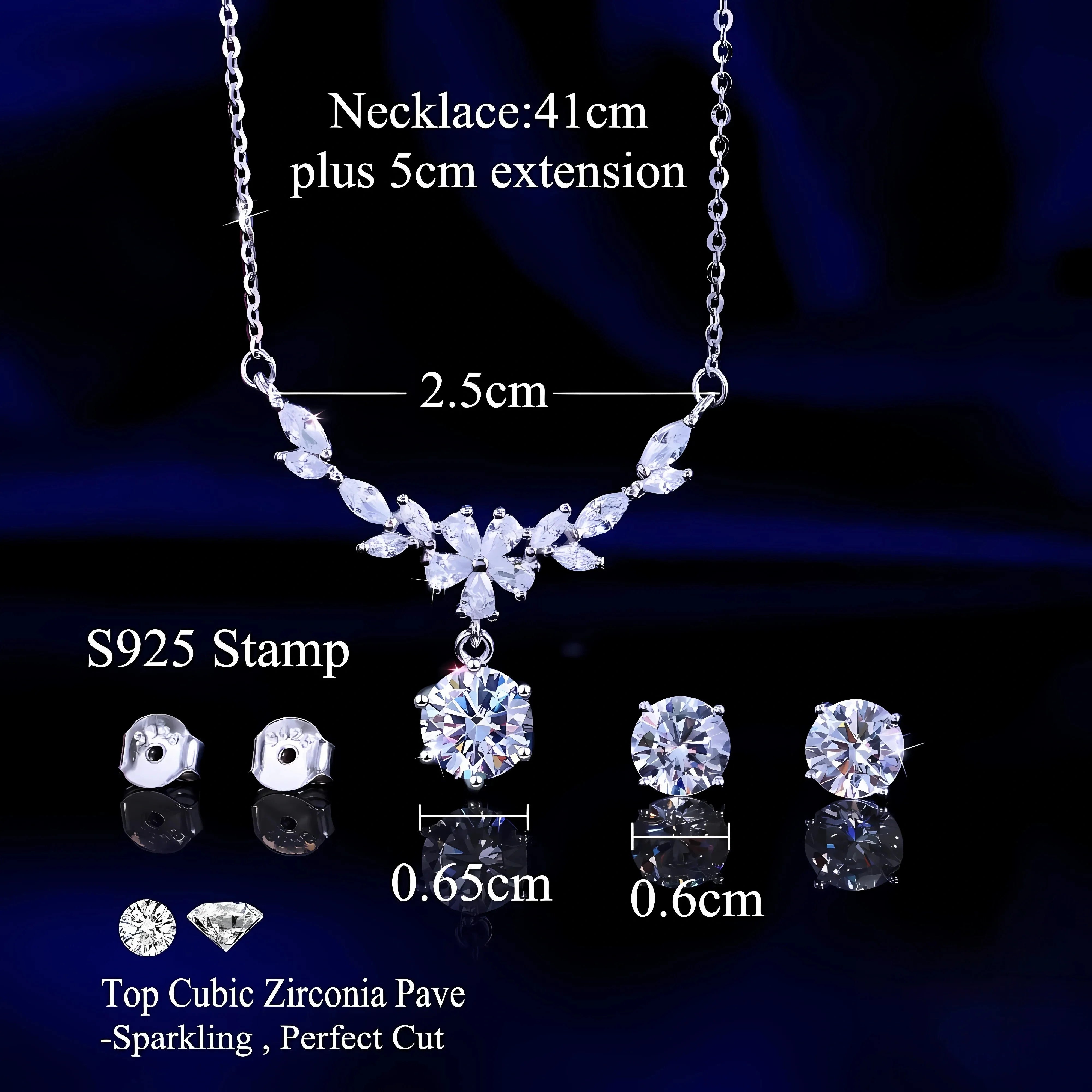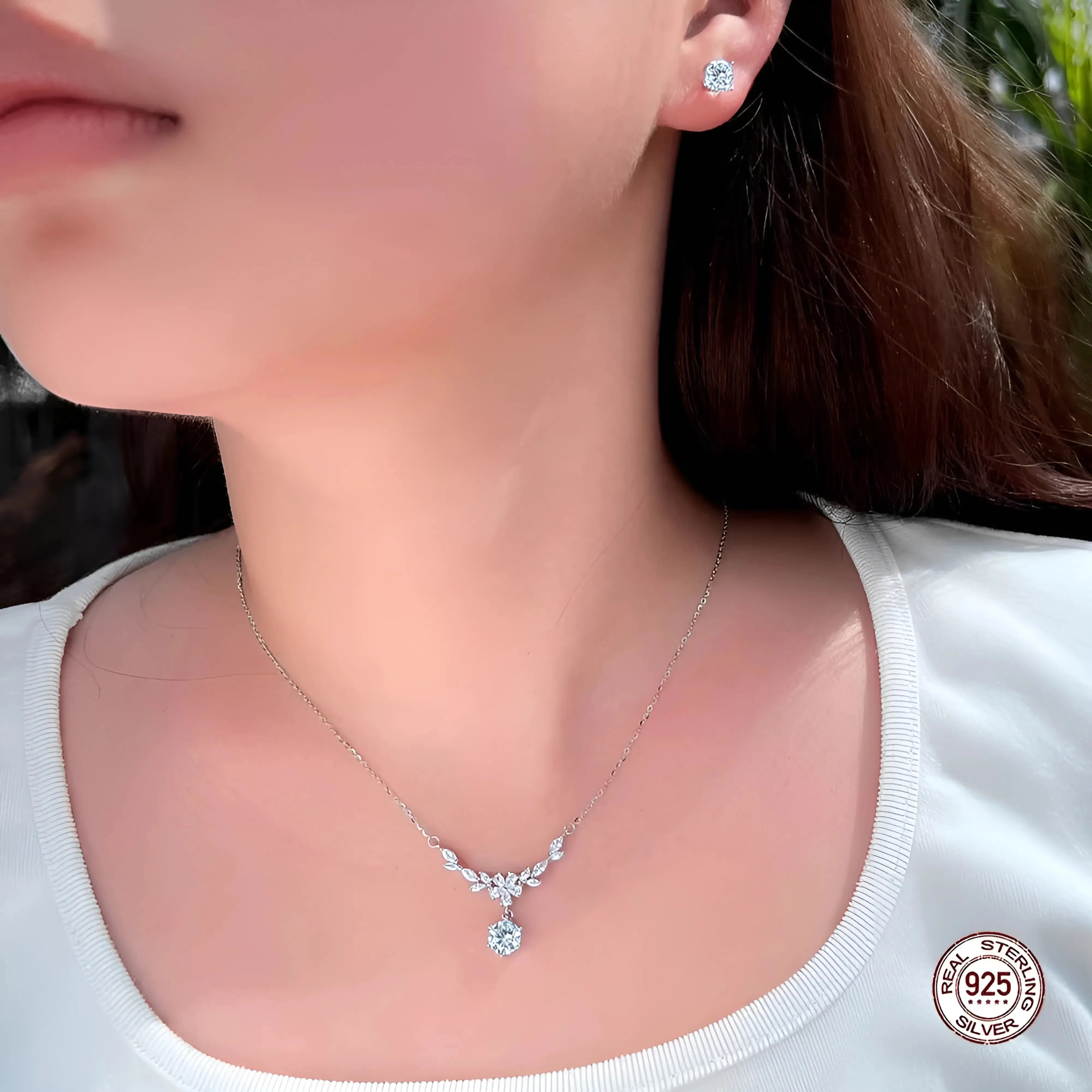 925 Sterling Silver Leaf Design Zircon Necklace & Earrings Set