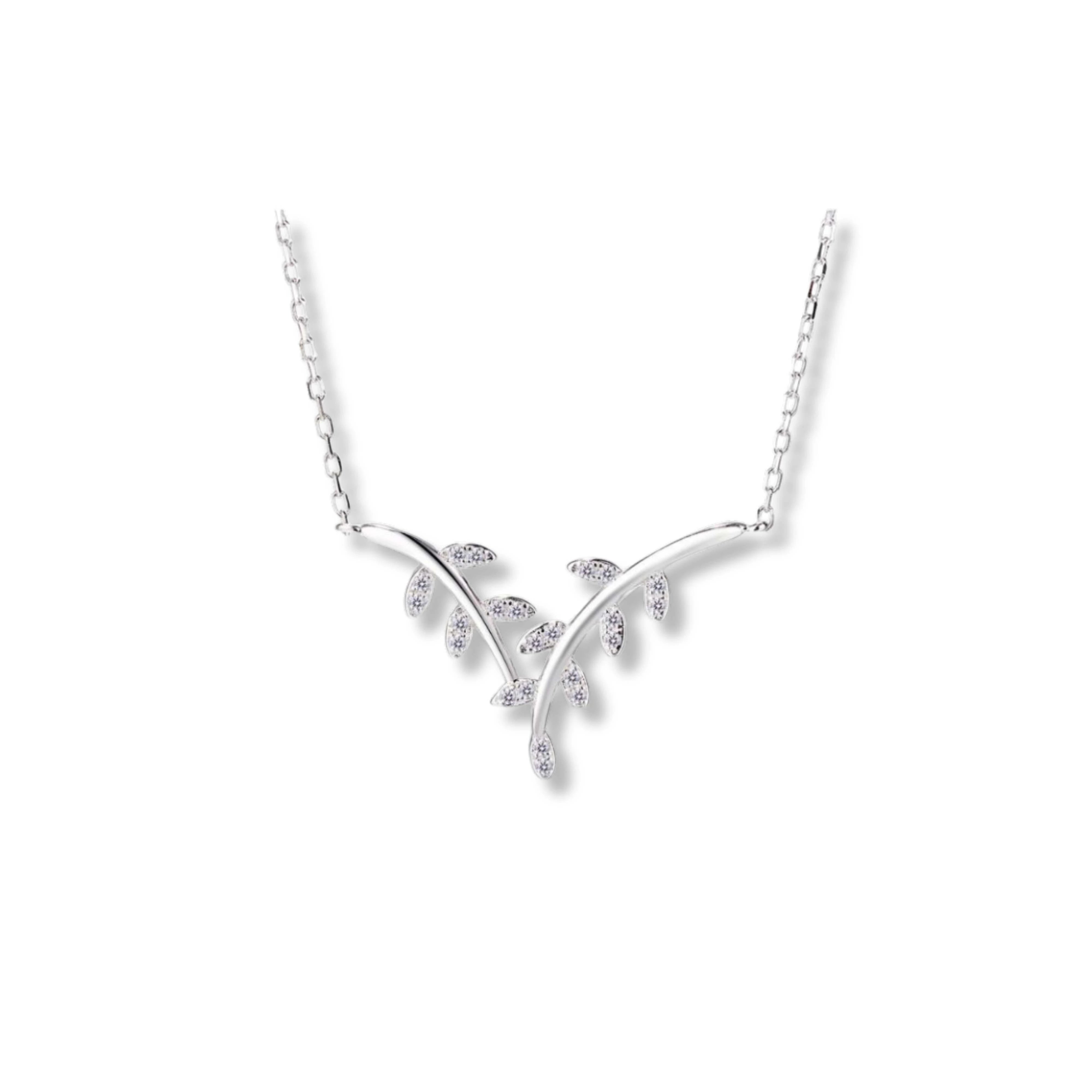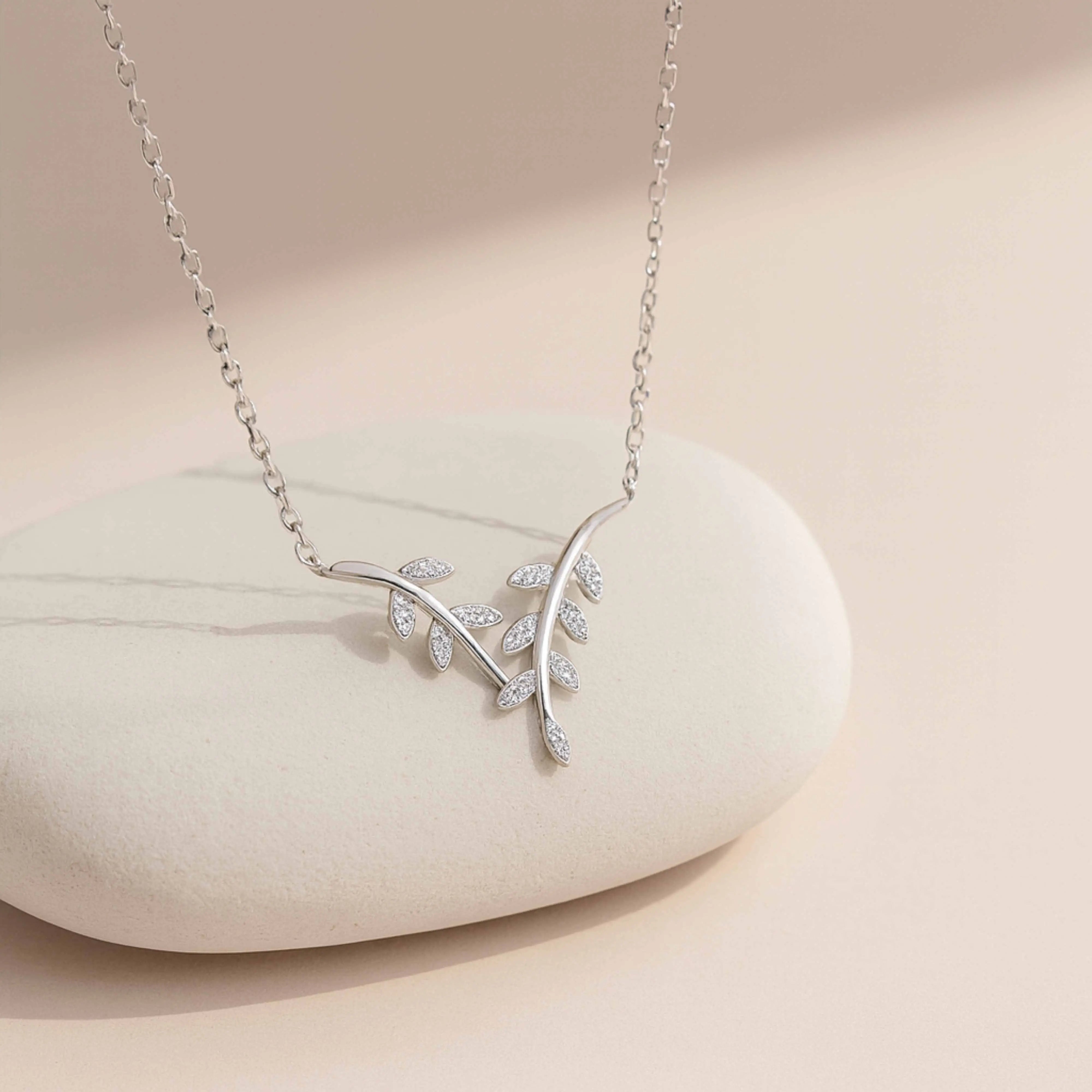 925 Sterling Silver Leaf Motif Necklace with CZ Accents