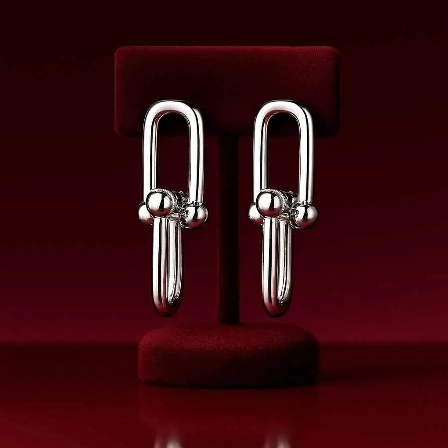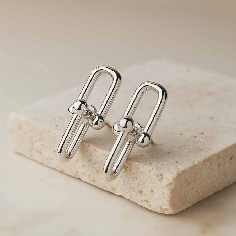 925 Sterling Silver Link Stud Earrings | Rhodium Plated Minimal Design