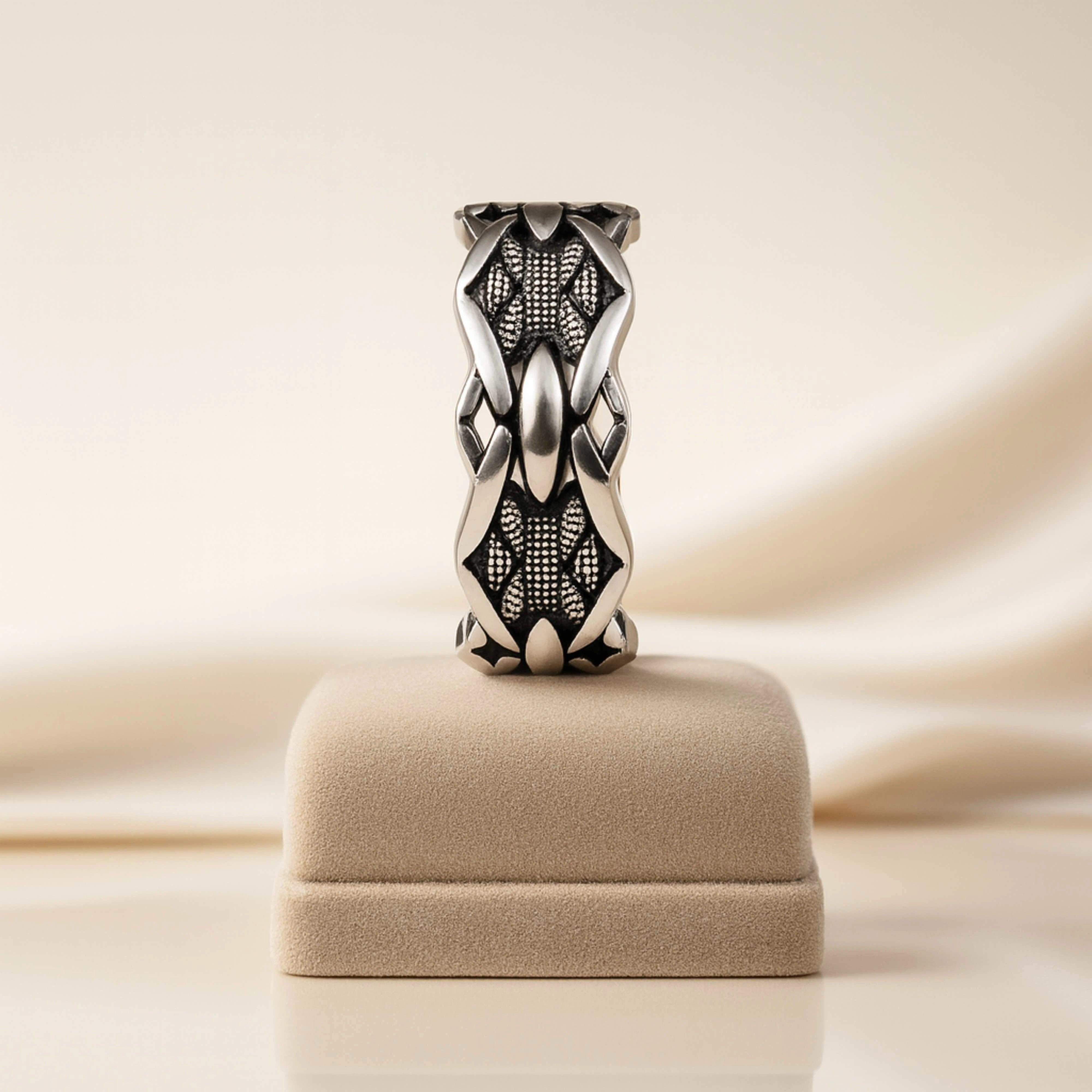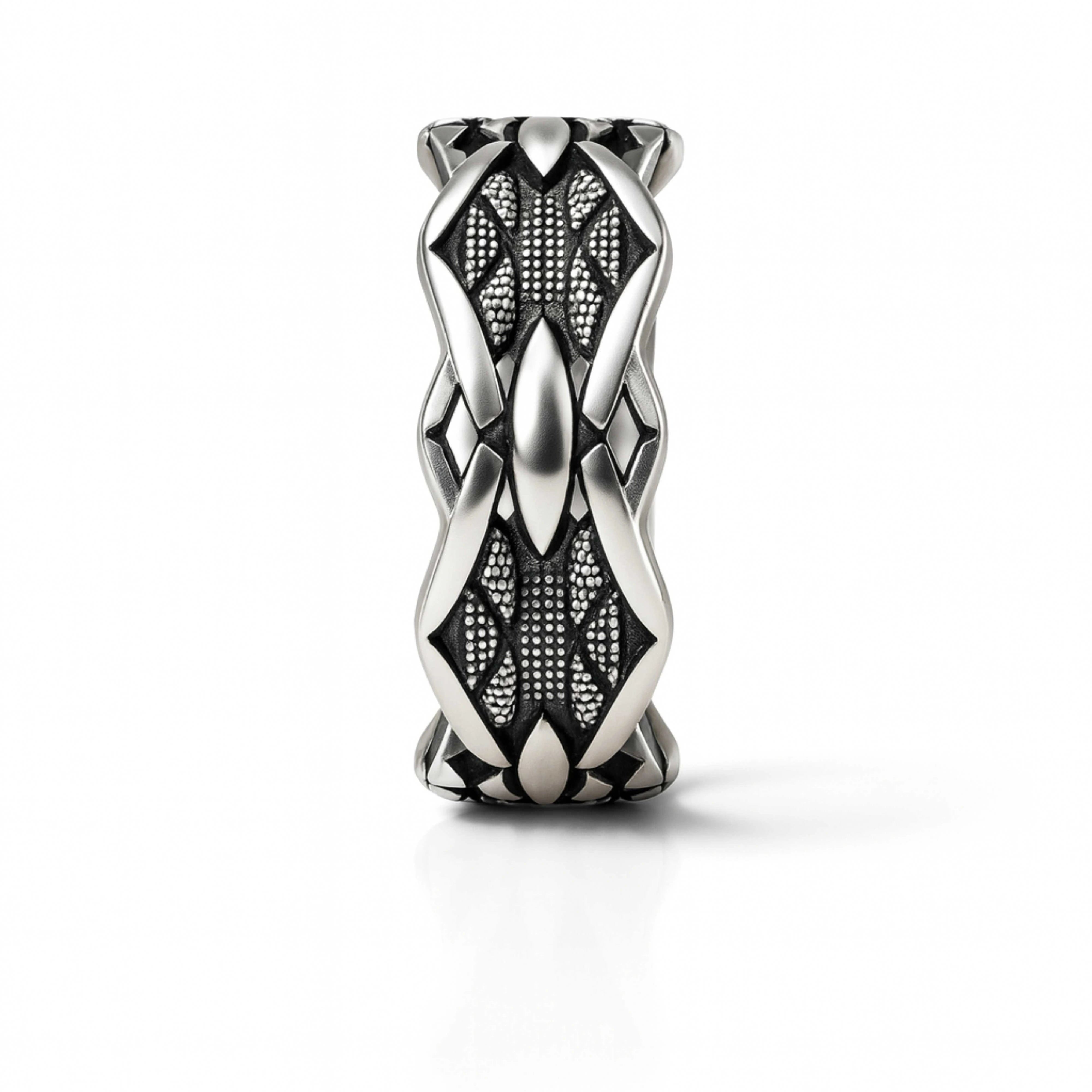 925 Sterling Silver Men’s Designer Statement Ring | Rhodium Plated Tribal Inspired Band