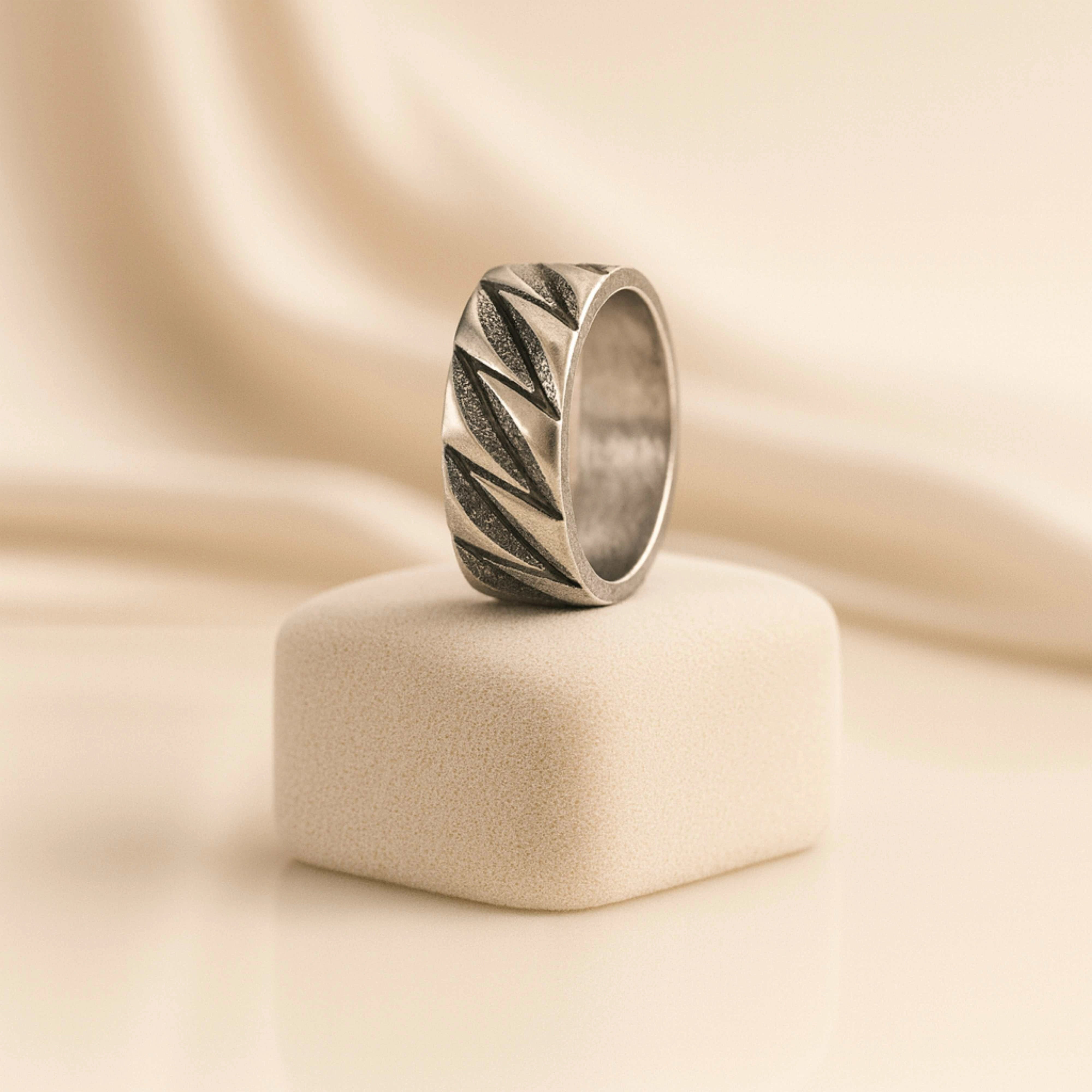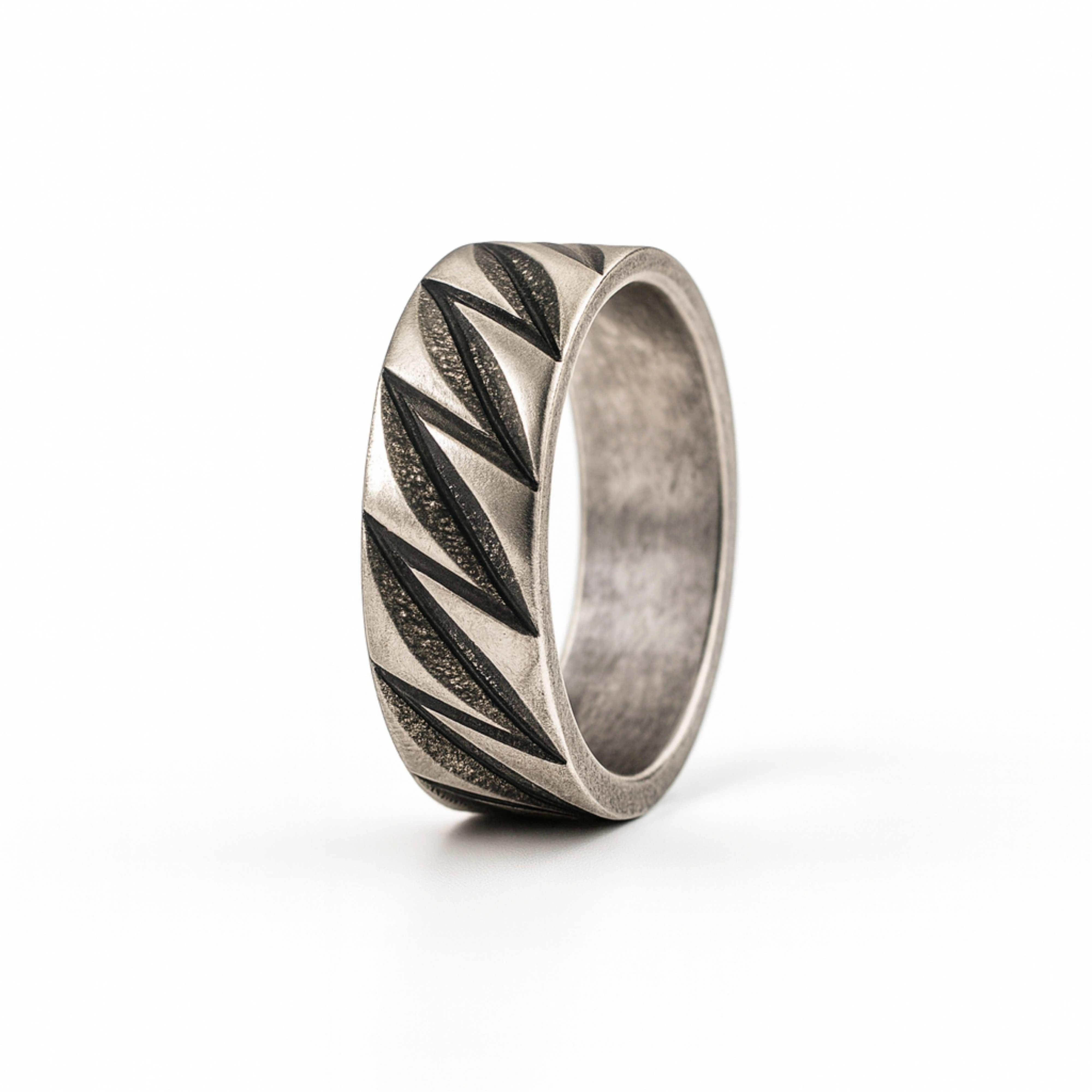 925 Sterling Silver Men’s Oxidized Ring | Rhodium Plated Bold Zigzag Band