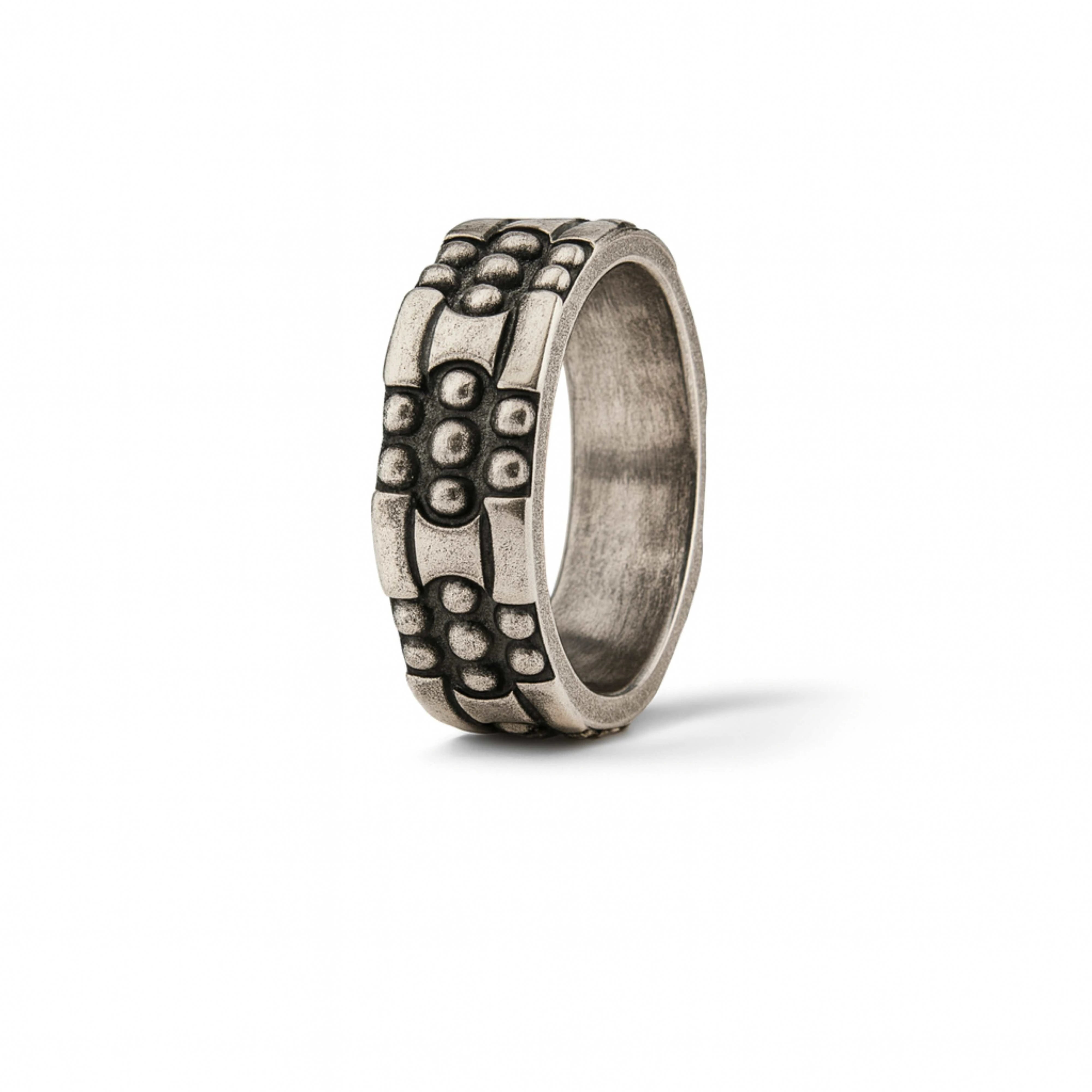 925 Sterling Silver Men’s Oxidized Ring | Rhodium Plated Dotted Textured Band