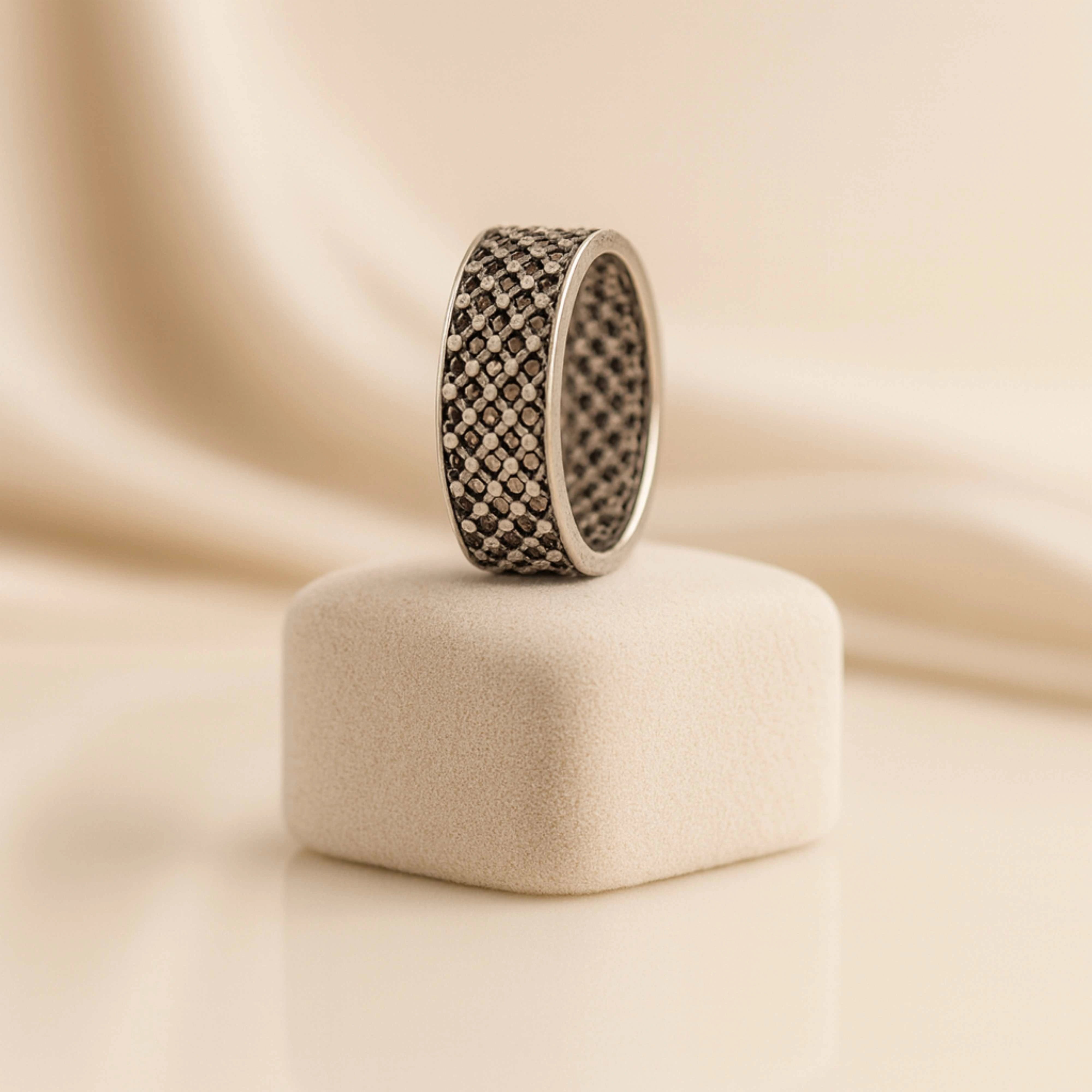 925 Sterling Silver Men’s Oxidized Ring | Rhodium Plated Woven Texture Band