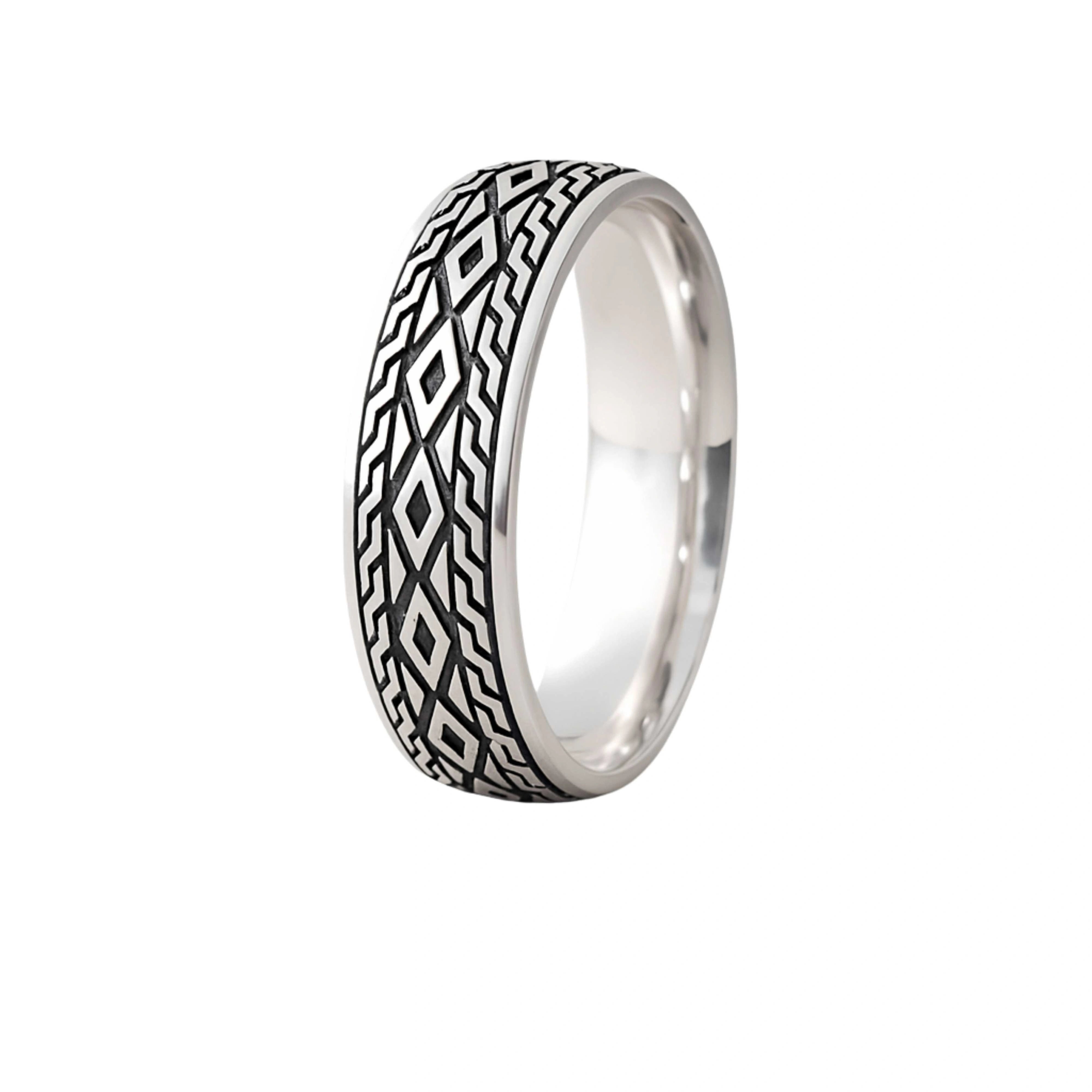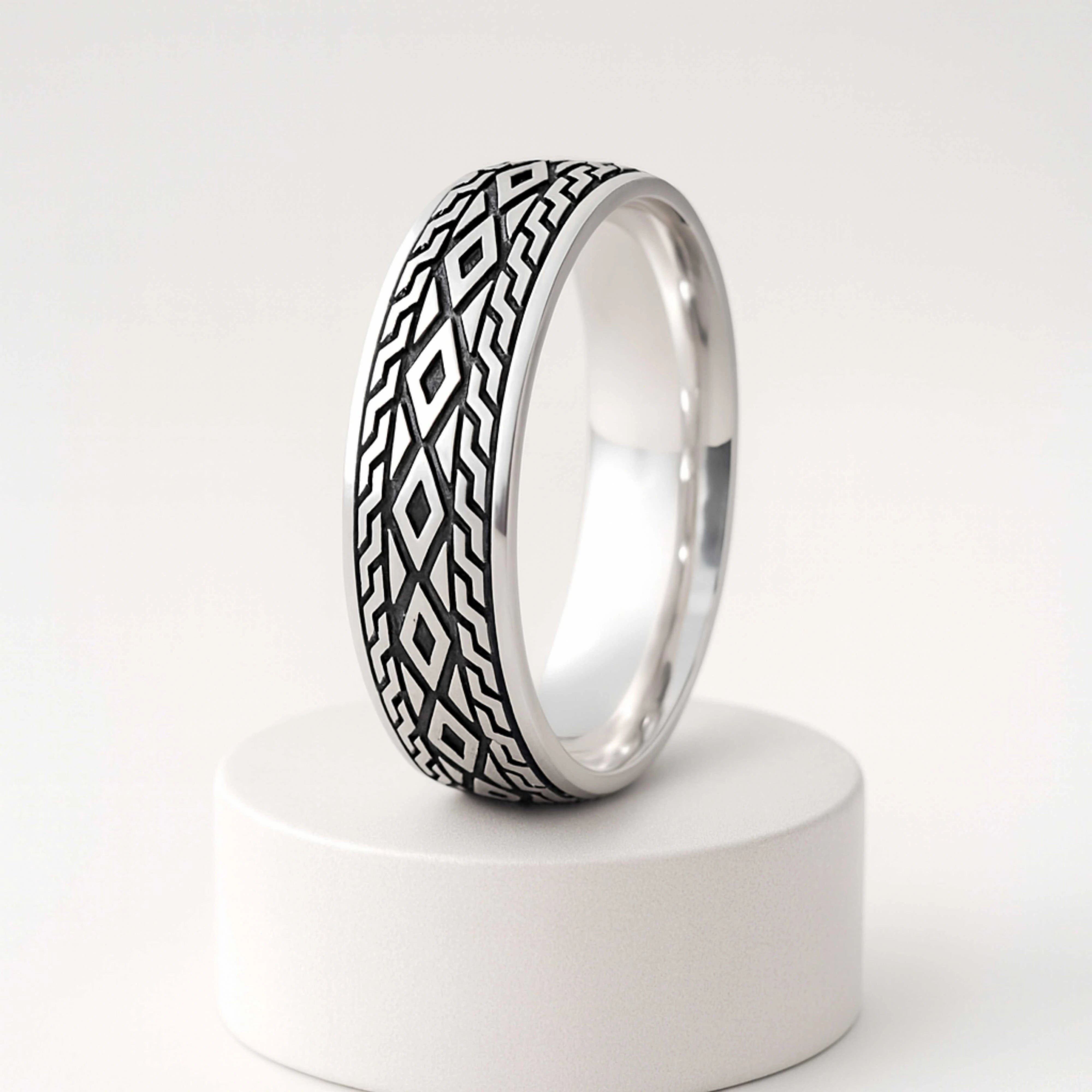 925 Sterling Silver Men’s Ring | Rhodium Plated Diamond Pattern Band