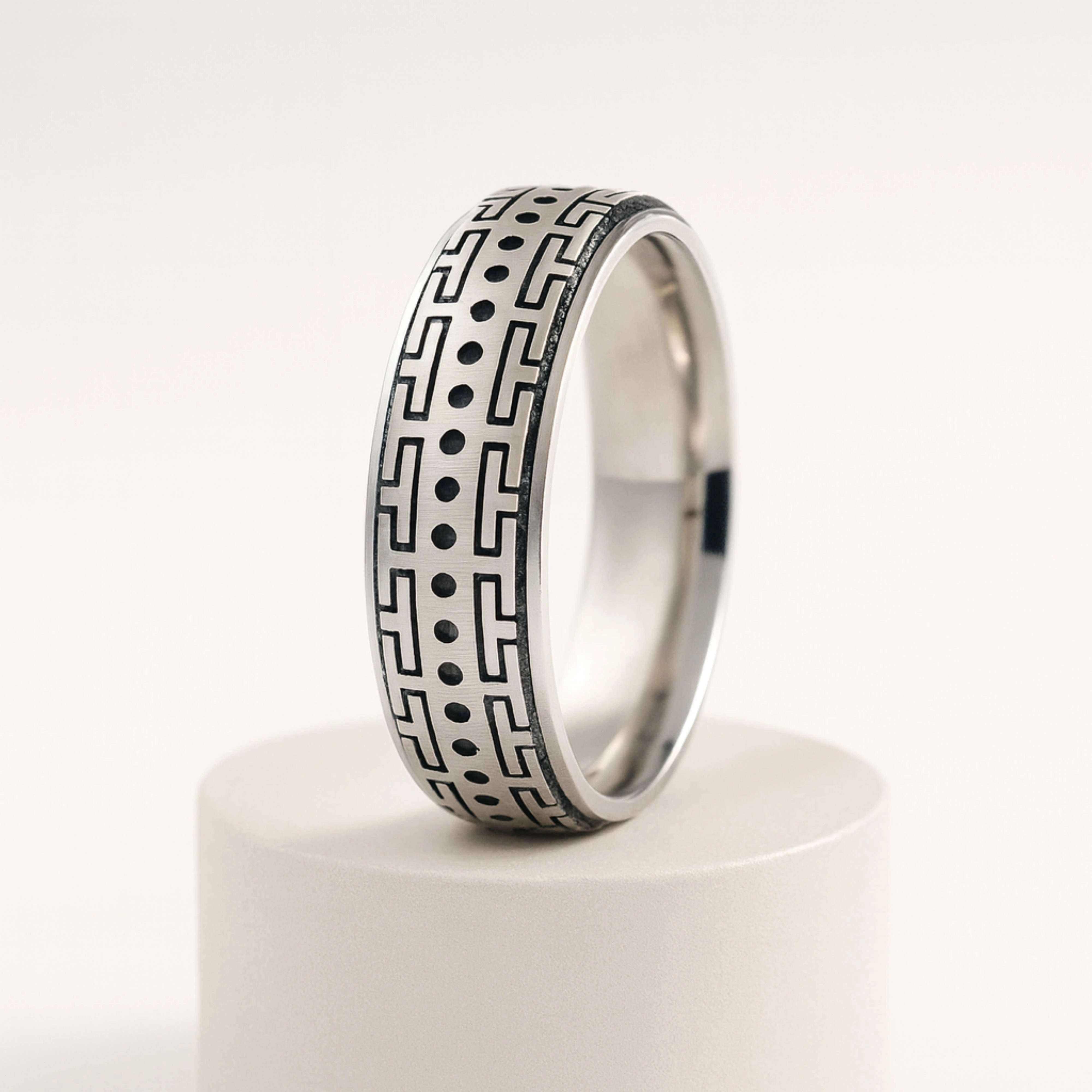 925 Sterling Silver Men’s Ring | Rhodium Plated Geometric Dot & Line Band
