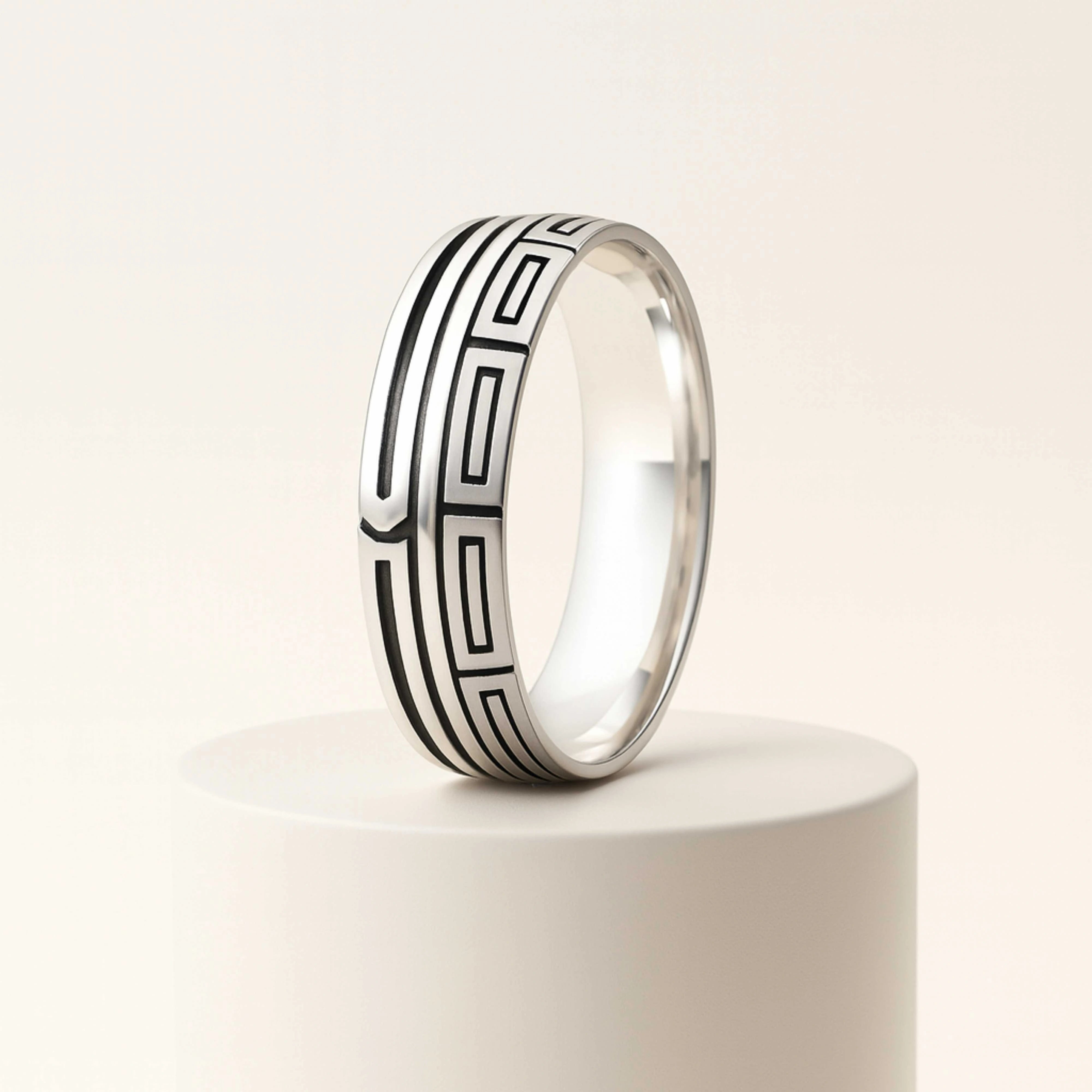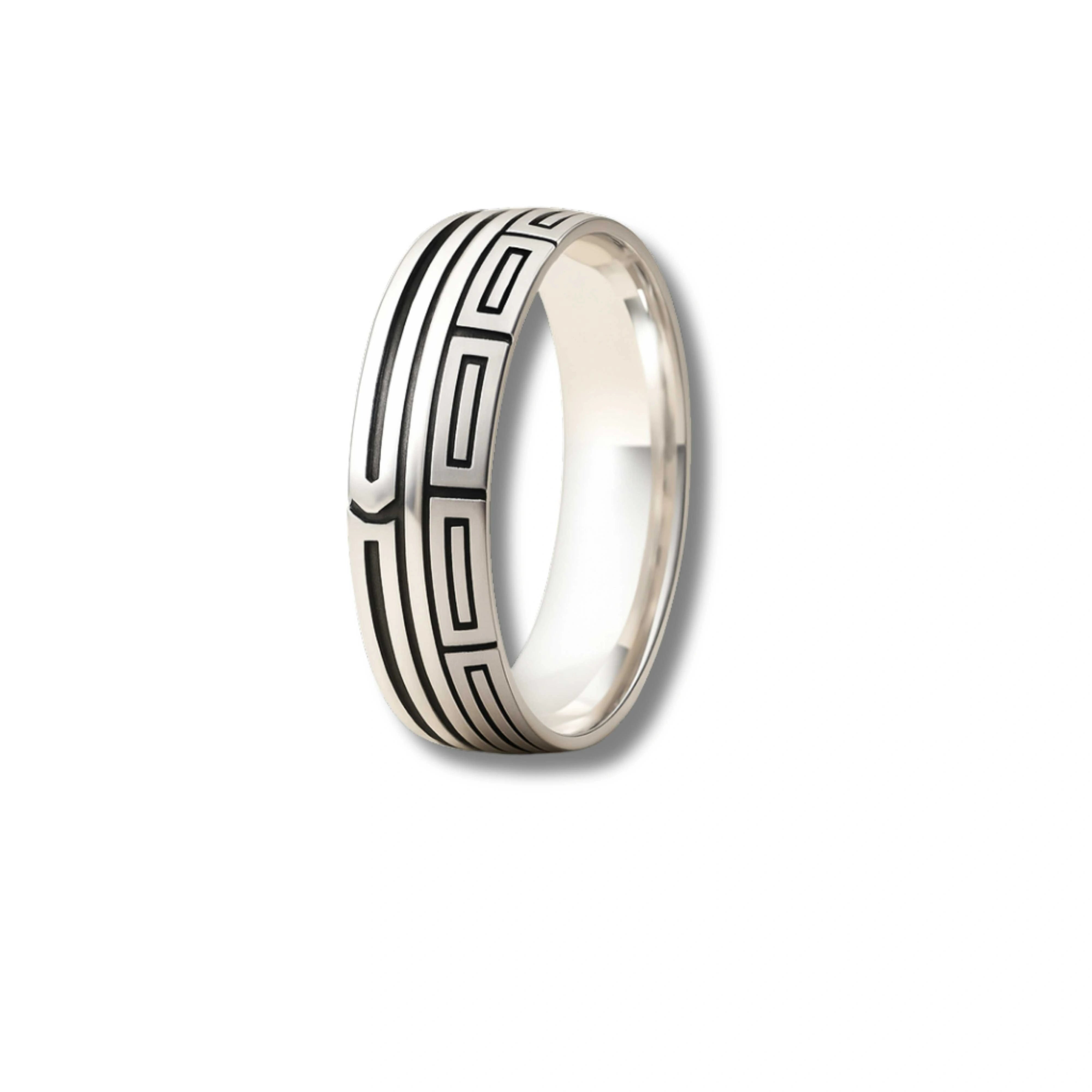 925 Sterling Silver Men’s Ring | Rhodium Plated Geometric Greek Key Band