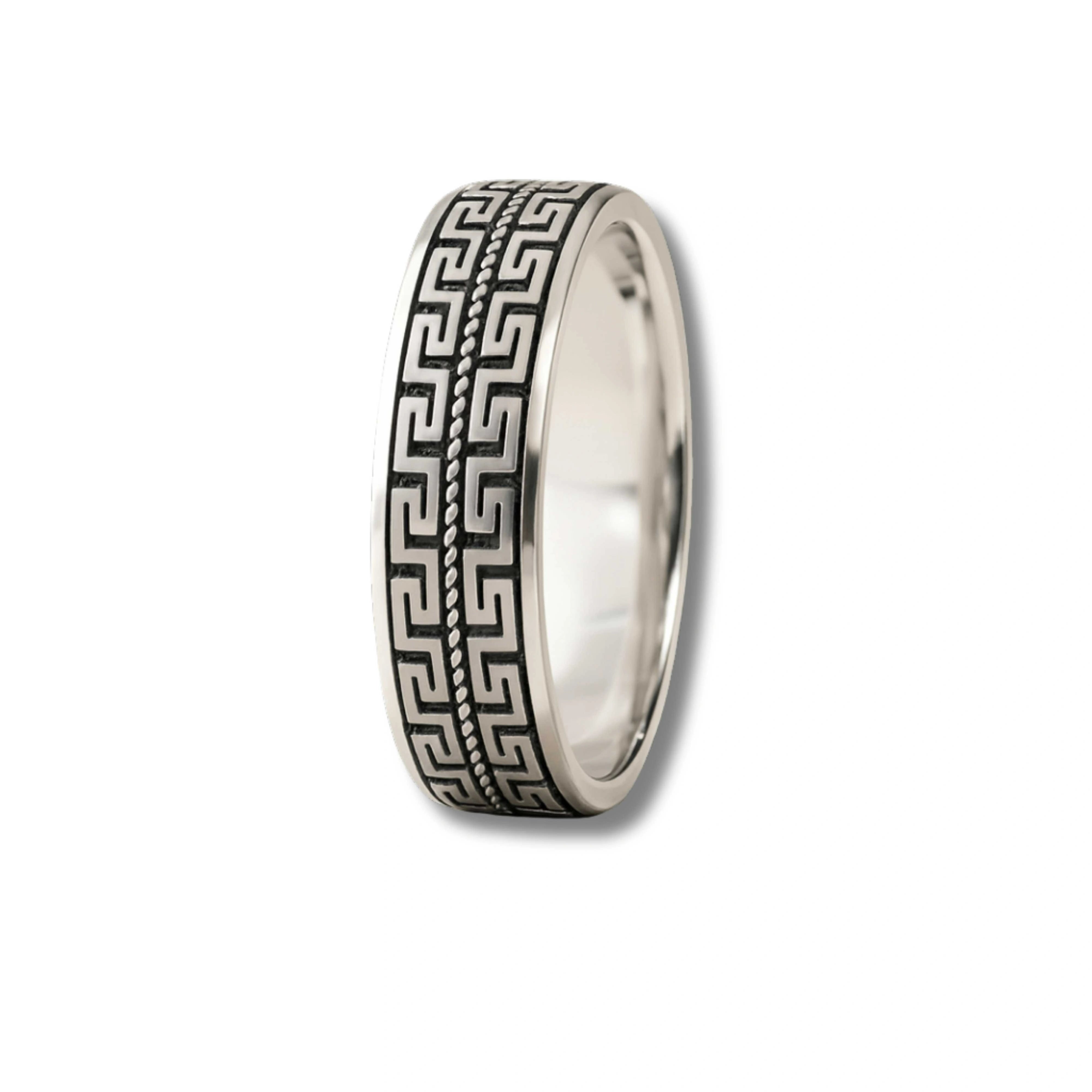 925 Sterling Silver Men’s Ring | Rhodium Plated Greek Key Pattern Band
