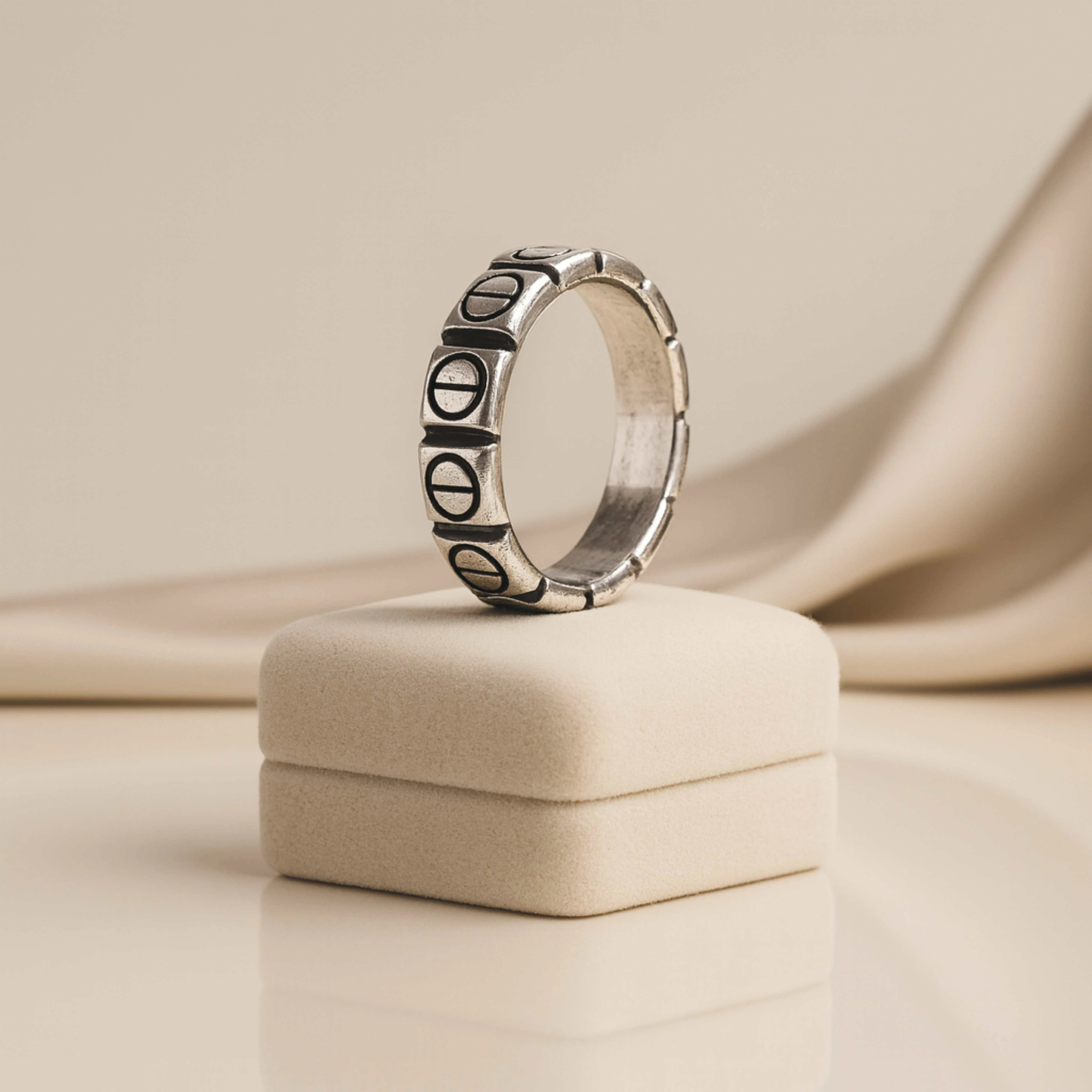 925 Sterling Silver Men’s Ring with Screw Motif | Rhodium Plated Industrial Band