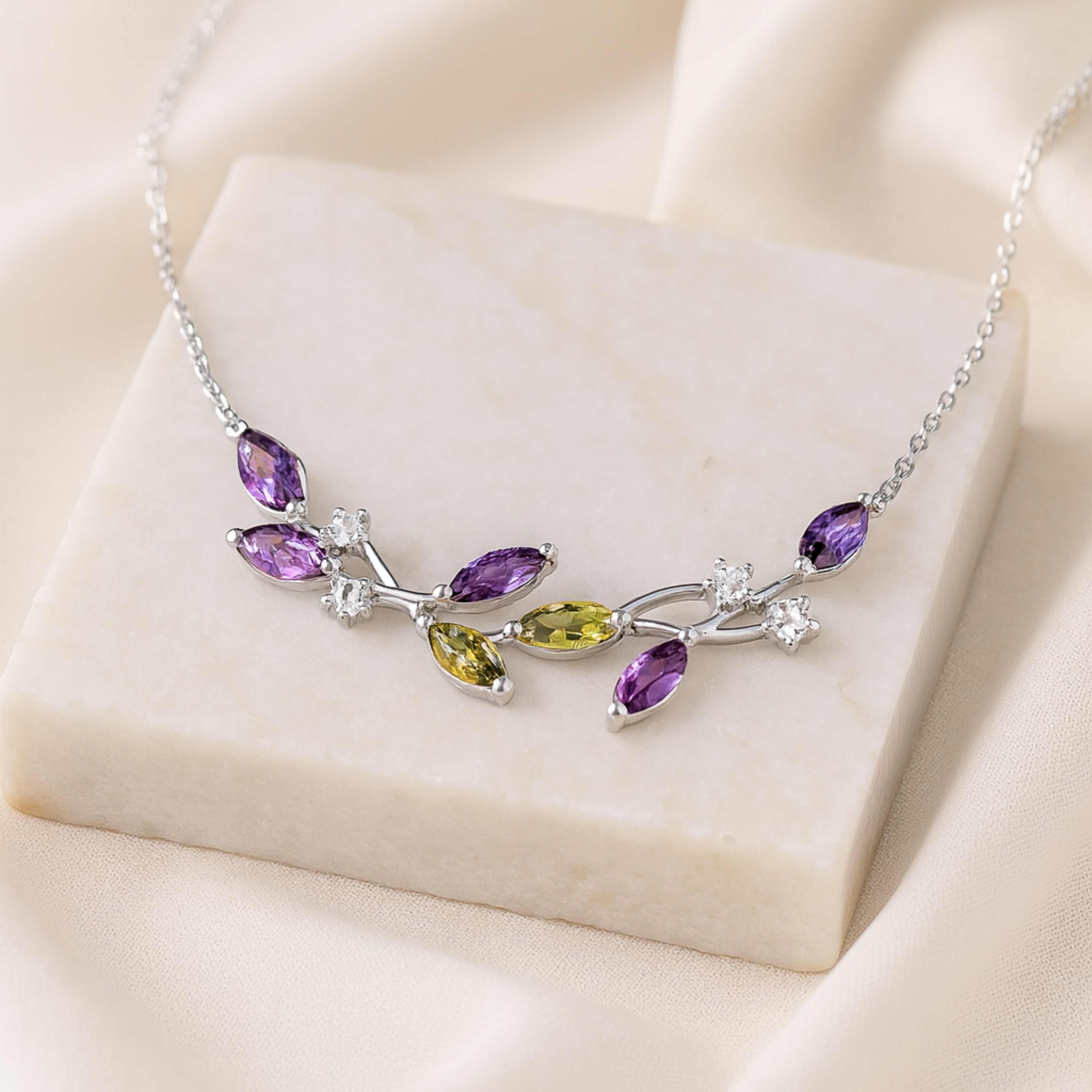 925 Sterling Silver Multicolor Leaf Necklace | Rhodium Plated with Cubic Zirconia