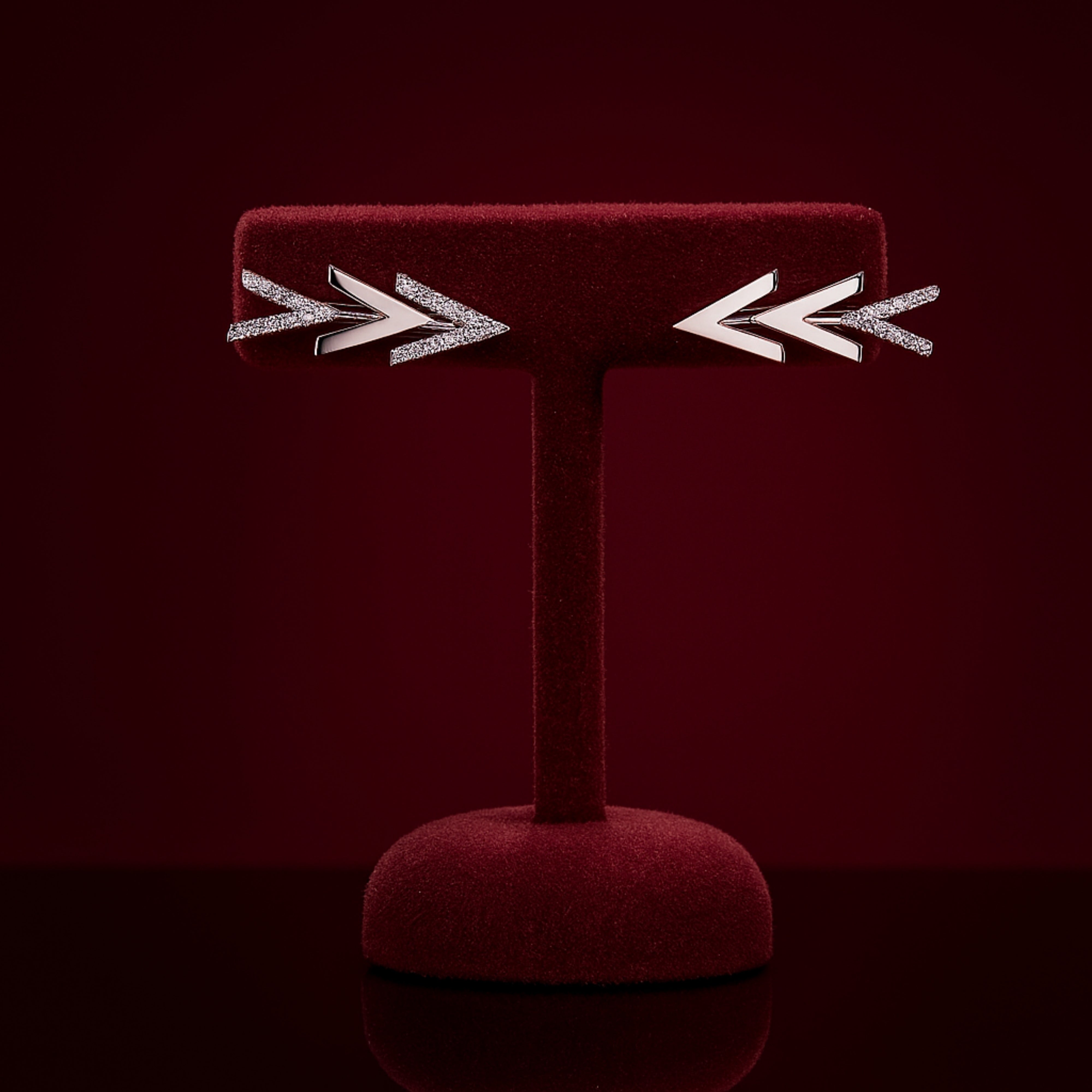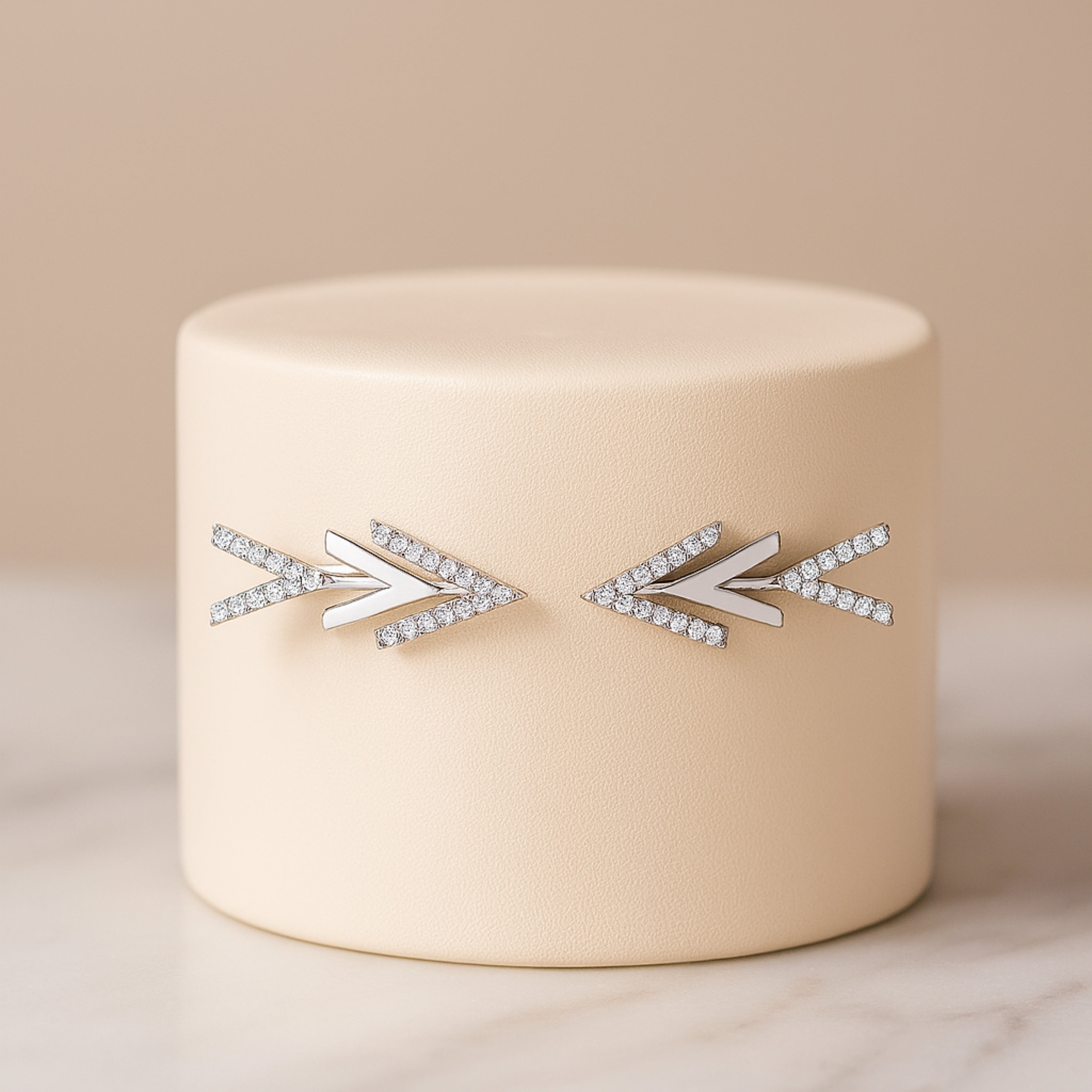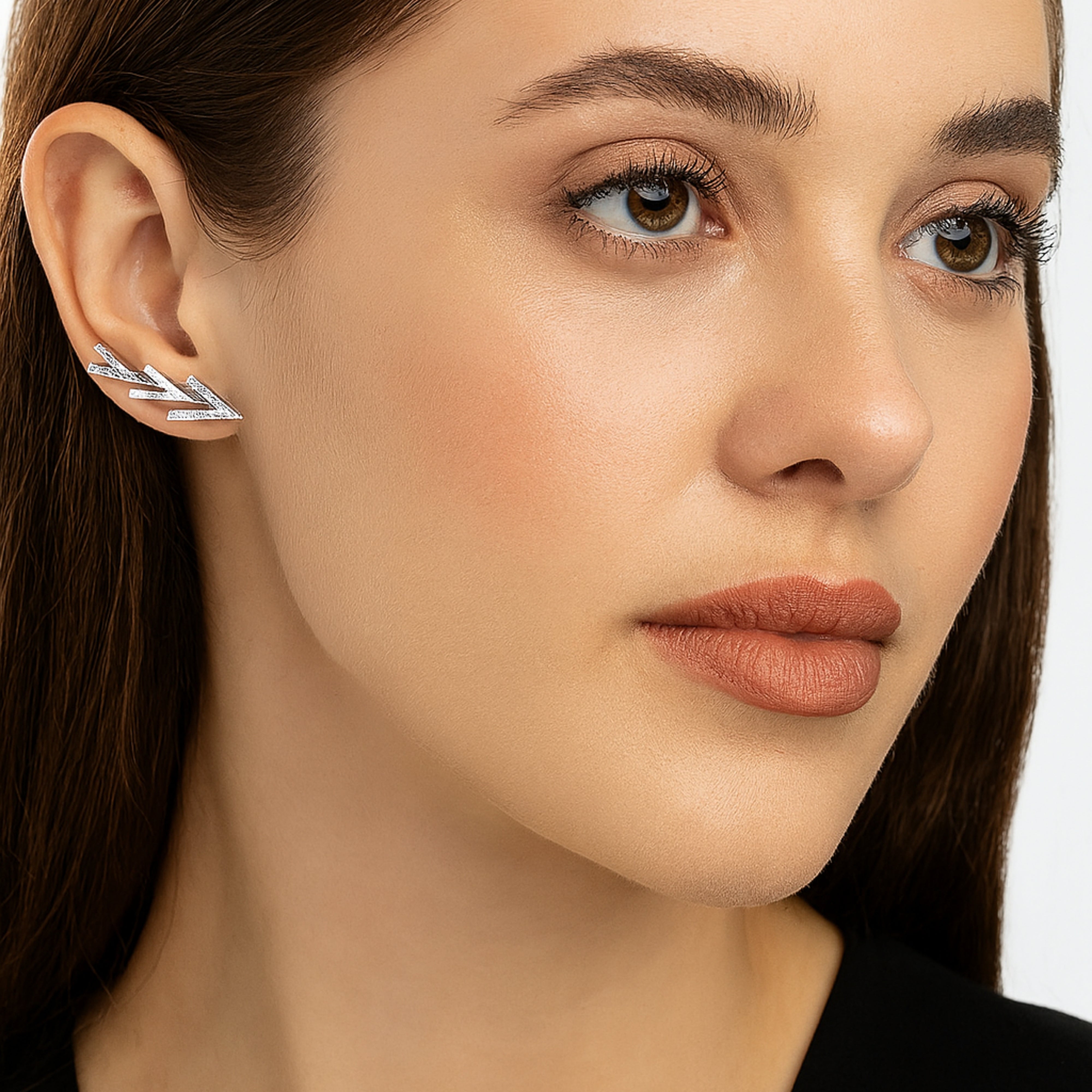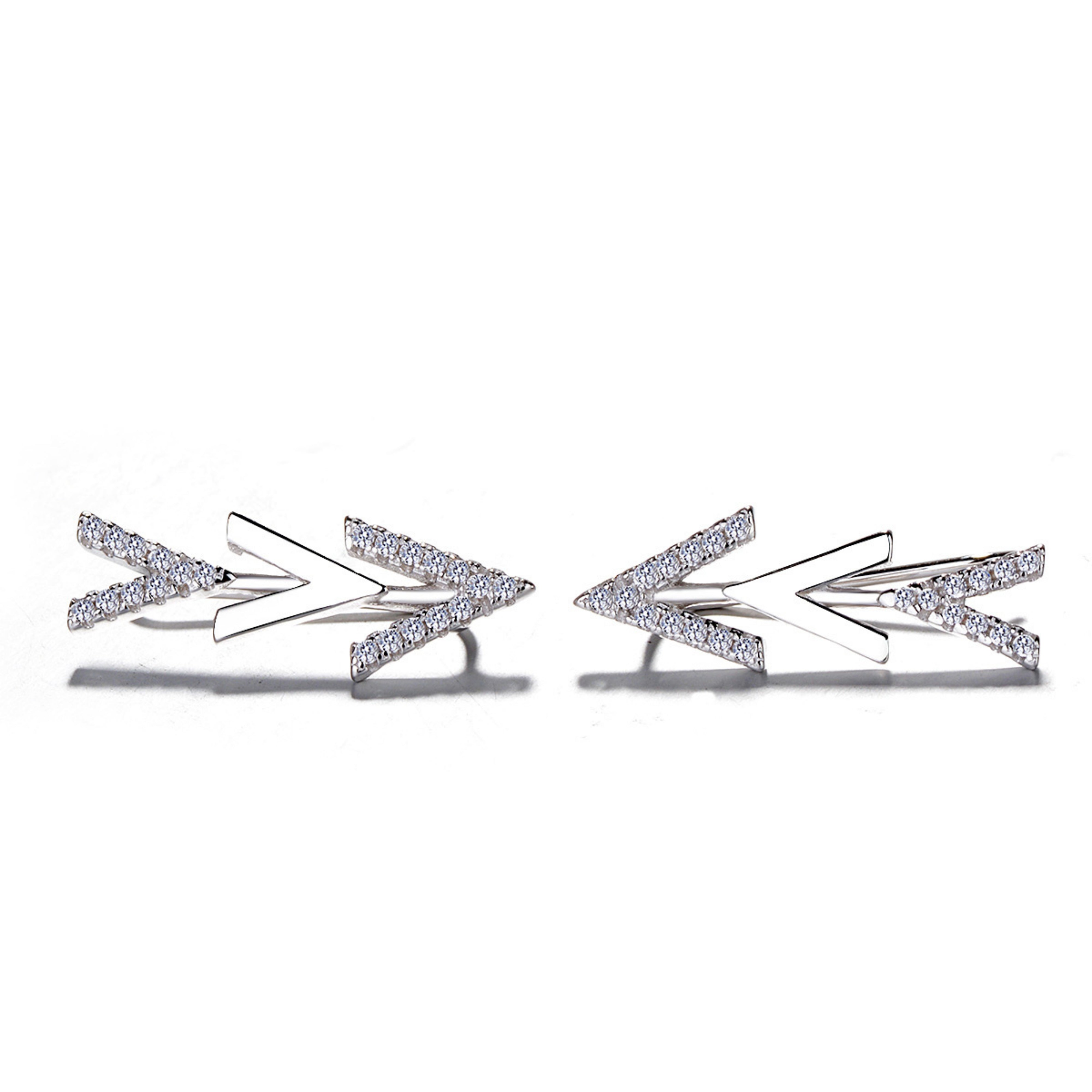 925 Sterling Silver Rhodium Plated Arrow Design Ear Cuffs with Cubic Zirconia