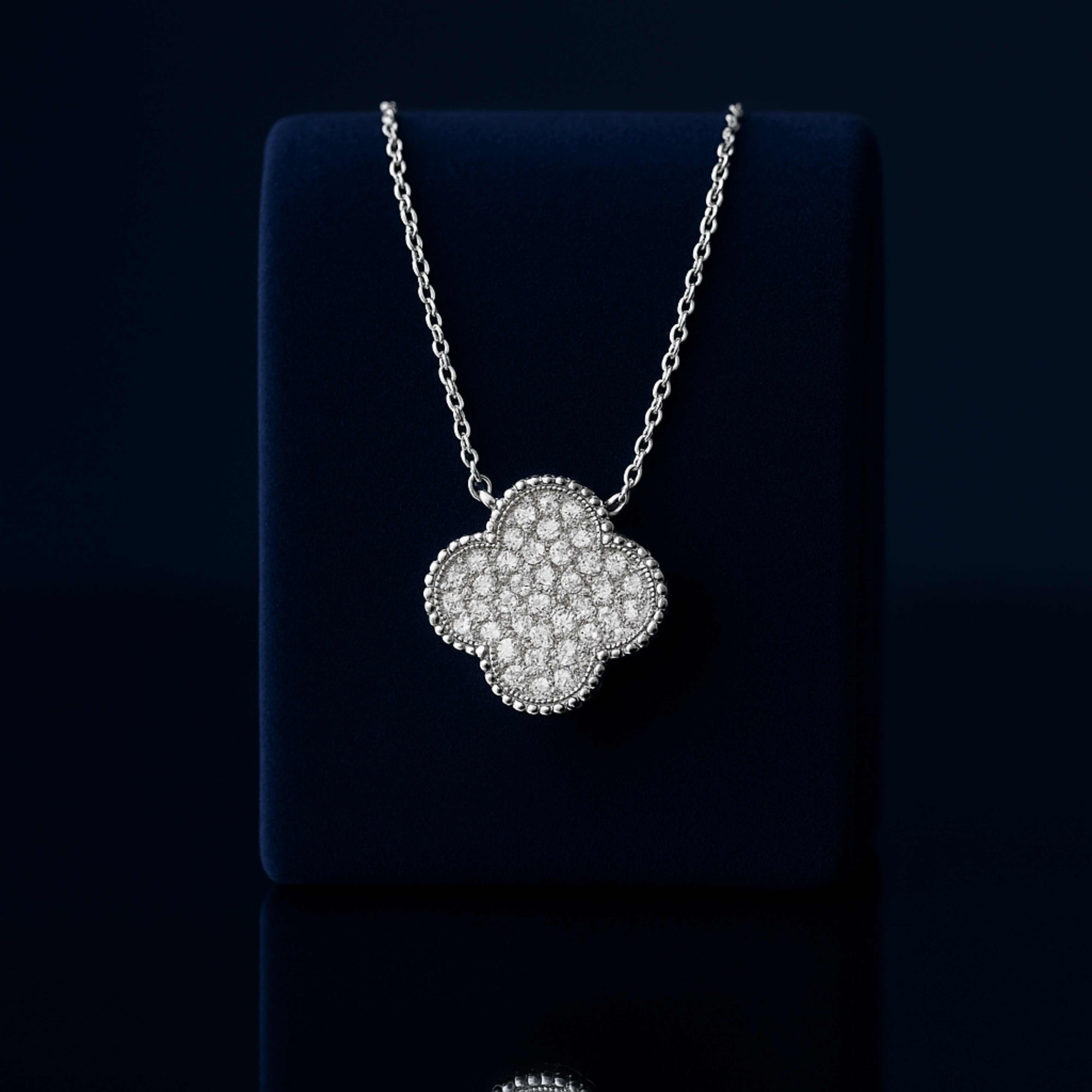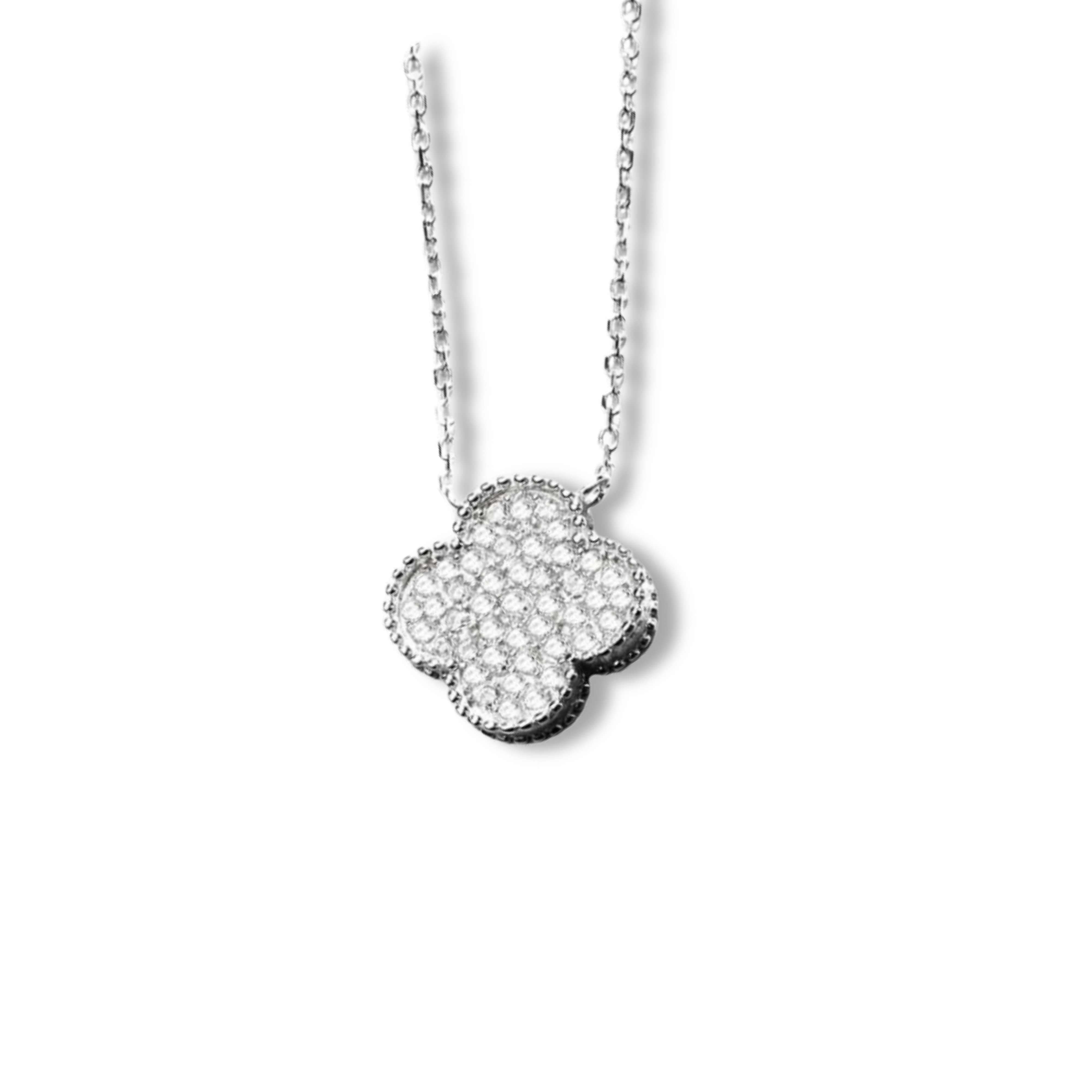 925 Sterling Silver Rhodium Plated Clover Necklace with Cubic Zirconia