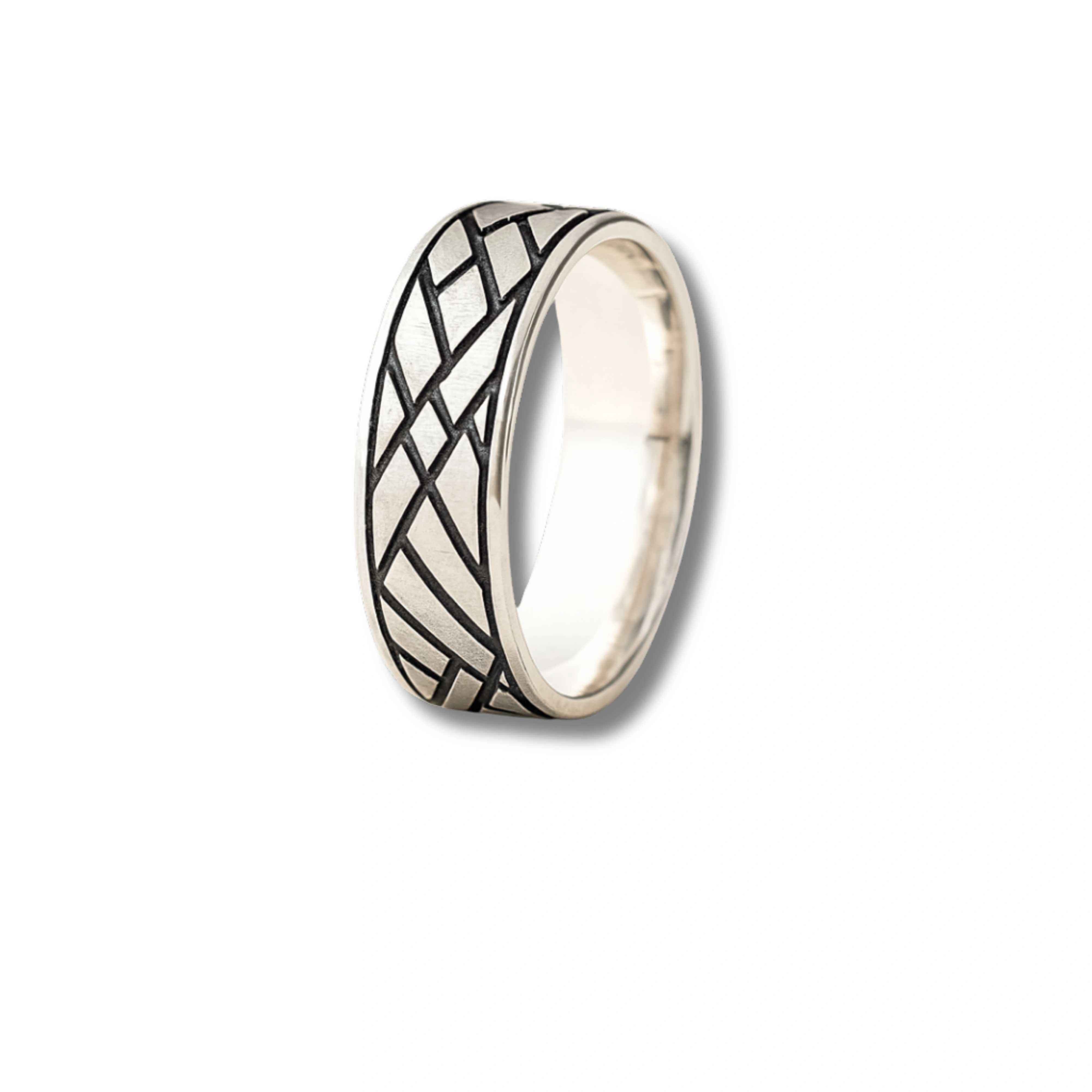 925 Sterling Silver Rhodium Plated Criss-Cross Band Ring for Men