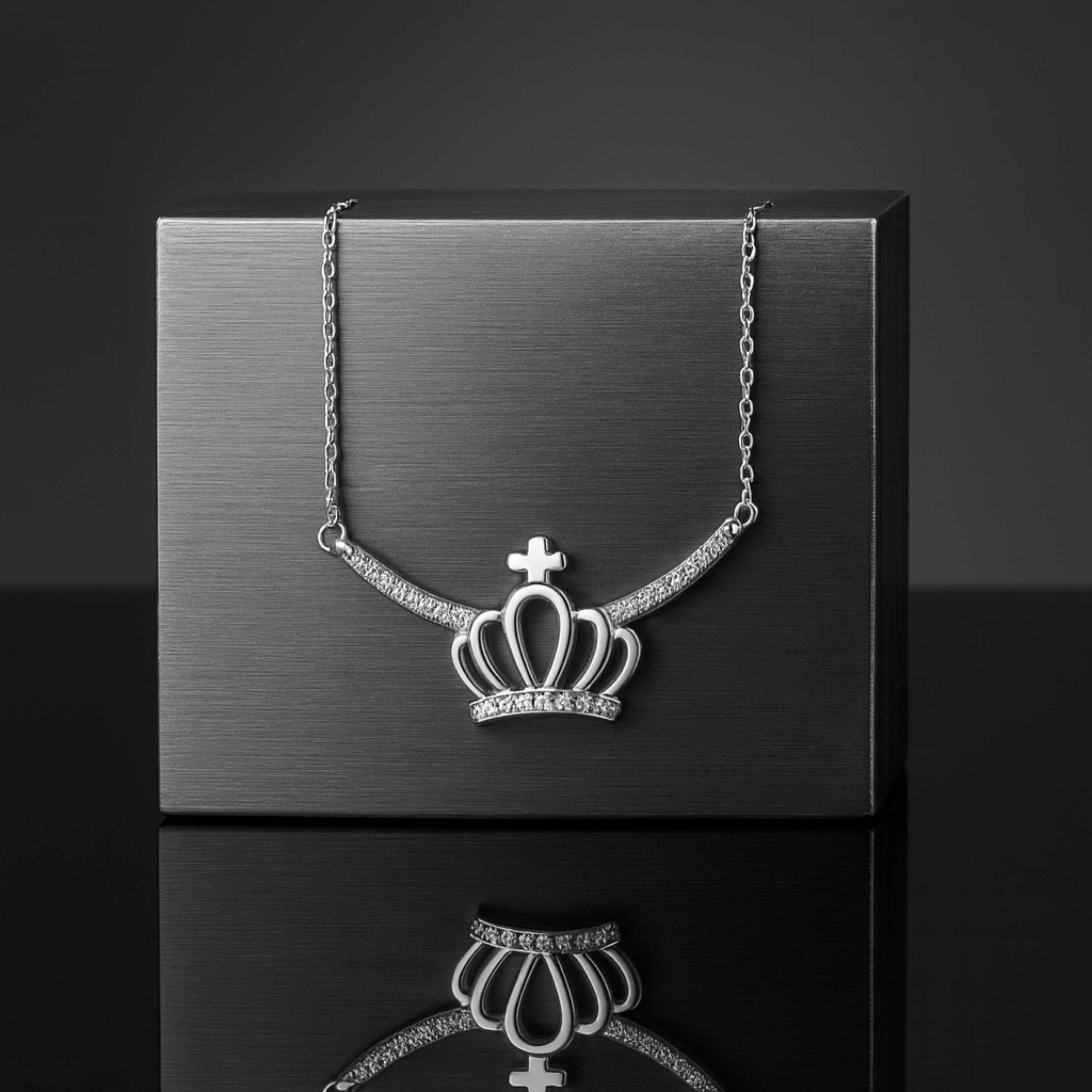 925 Sterling Silver Rhodium Plated Crown Necklace with Cubic Zirconia