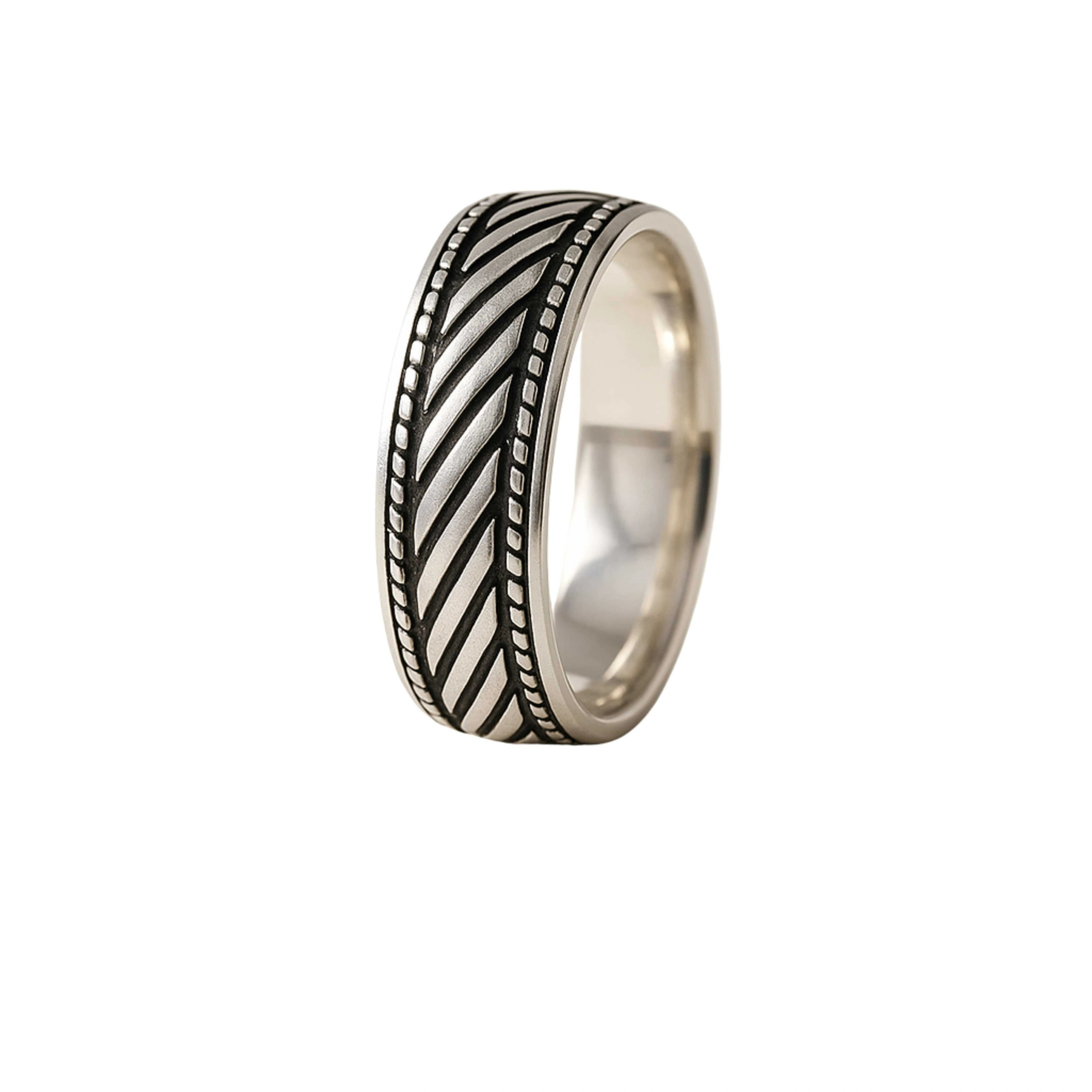 925 Sterling Silver Rhodium Plated Diagonal Line Band Ring for Men