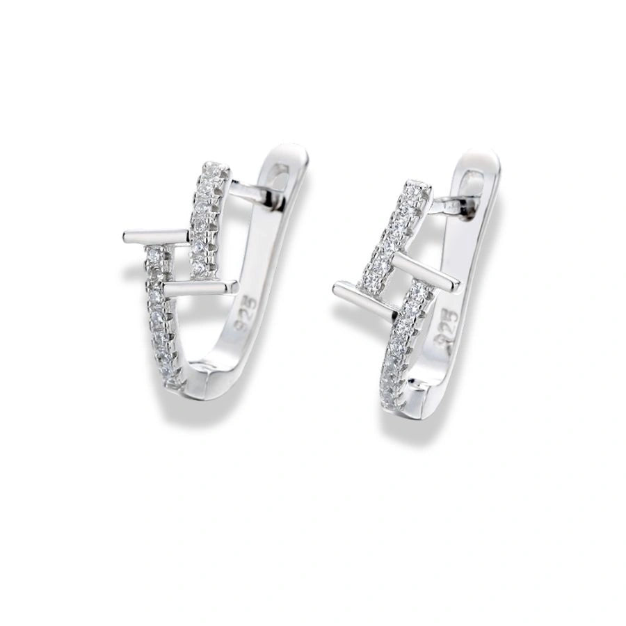 925 Sterling Silver Rhodium Plated Geometric CZ Hoop Earrings for Women
