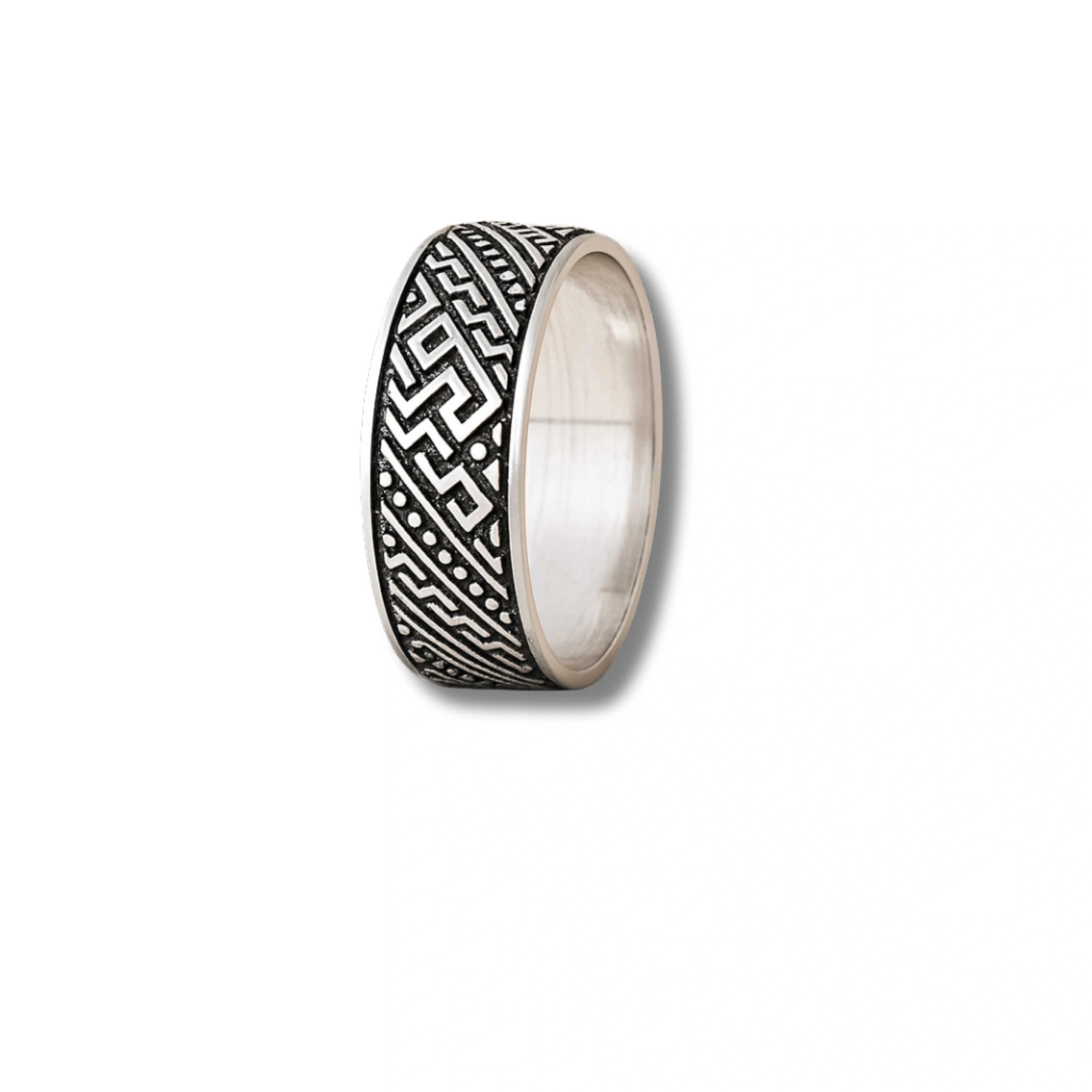 925 Sterling Silver Rhodium Plated Geometric Pattern Band Ring for Men