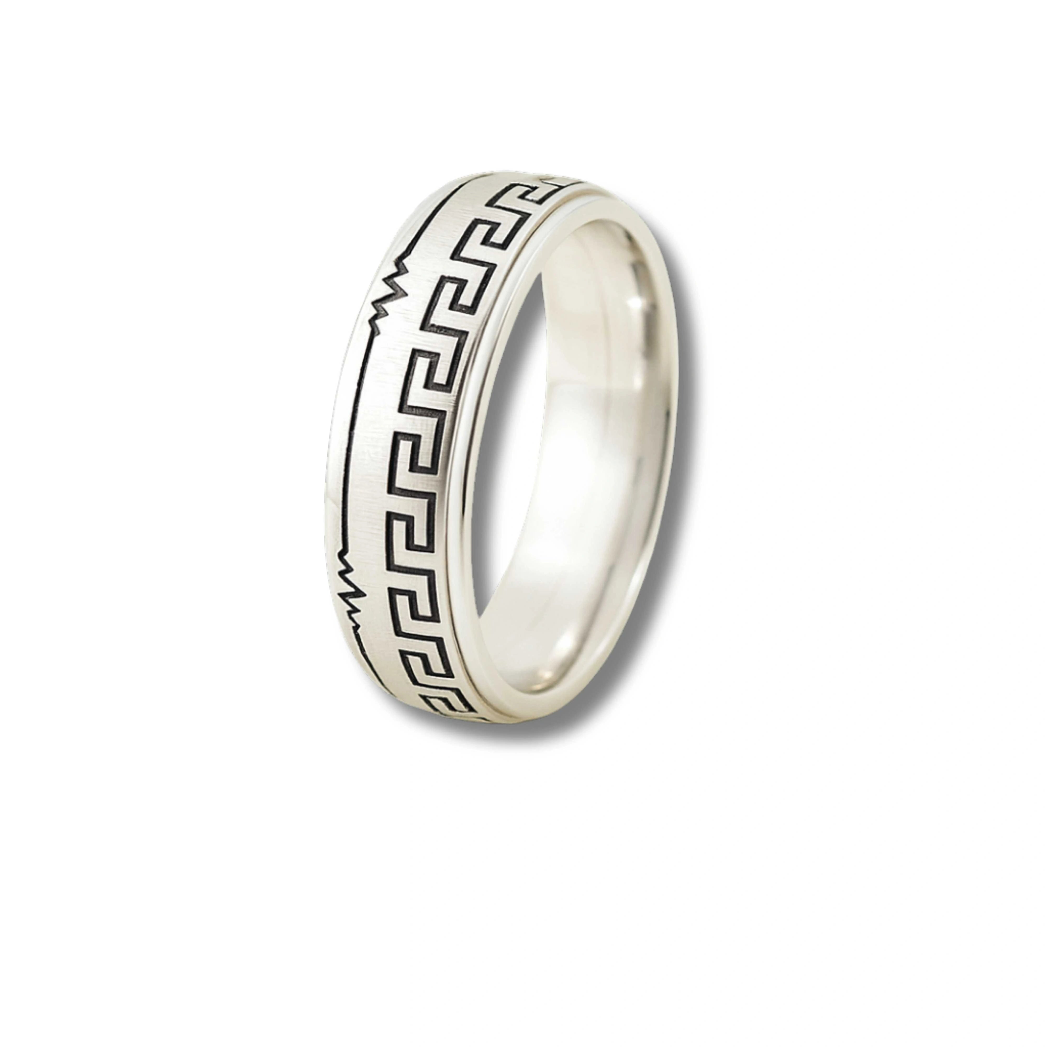 925 Sterling Silver Rhodium Plated Greek Key Band Ring for Men