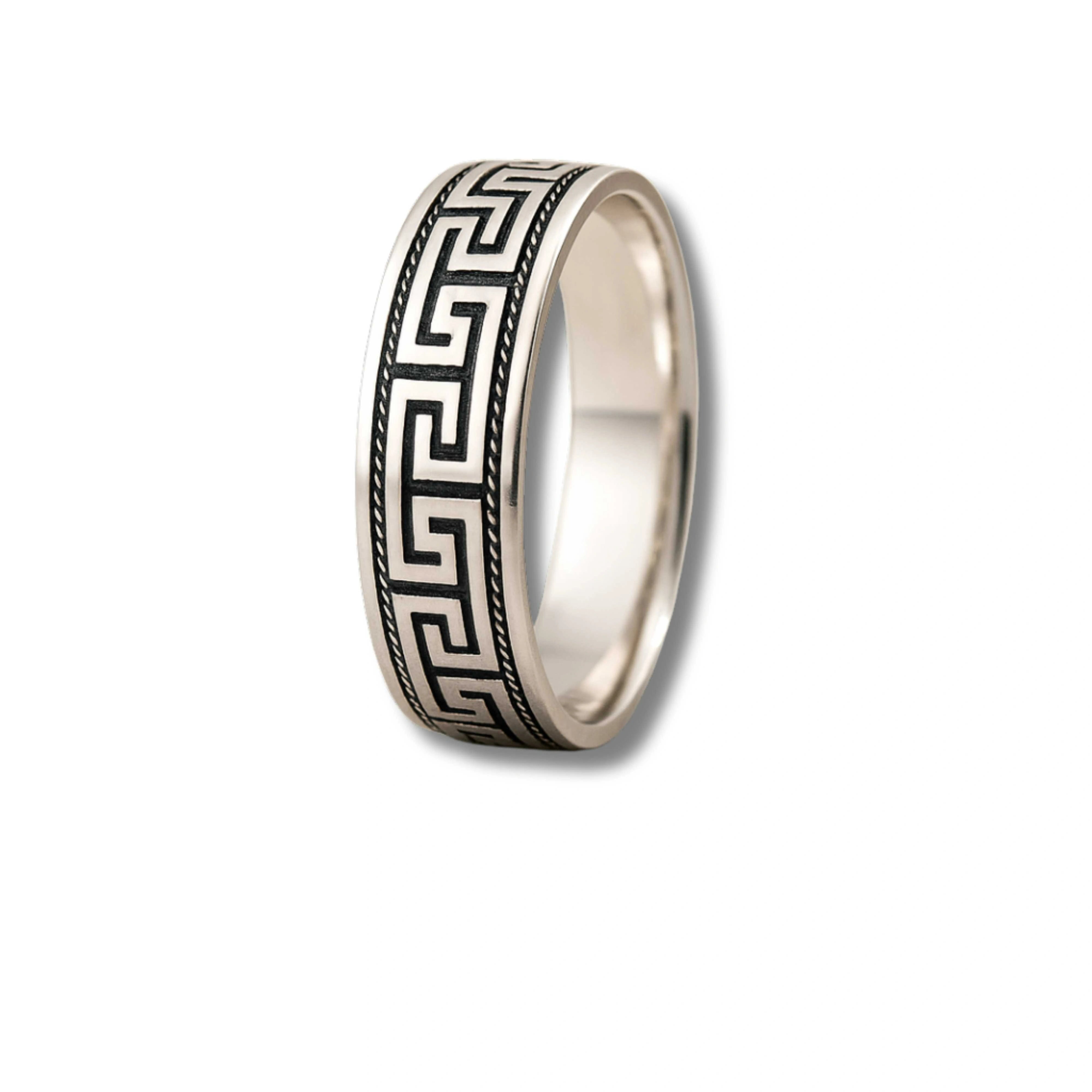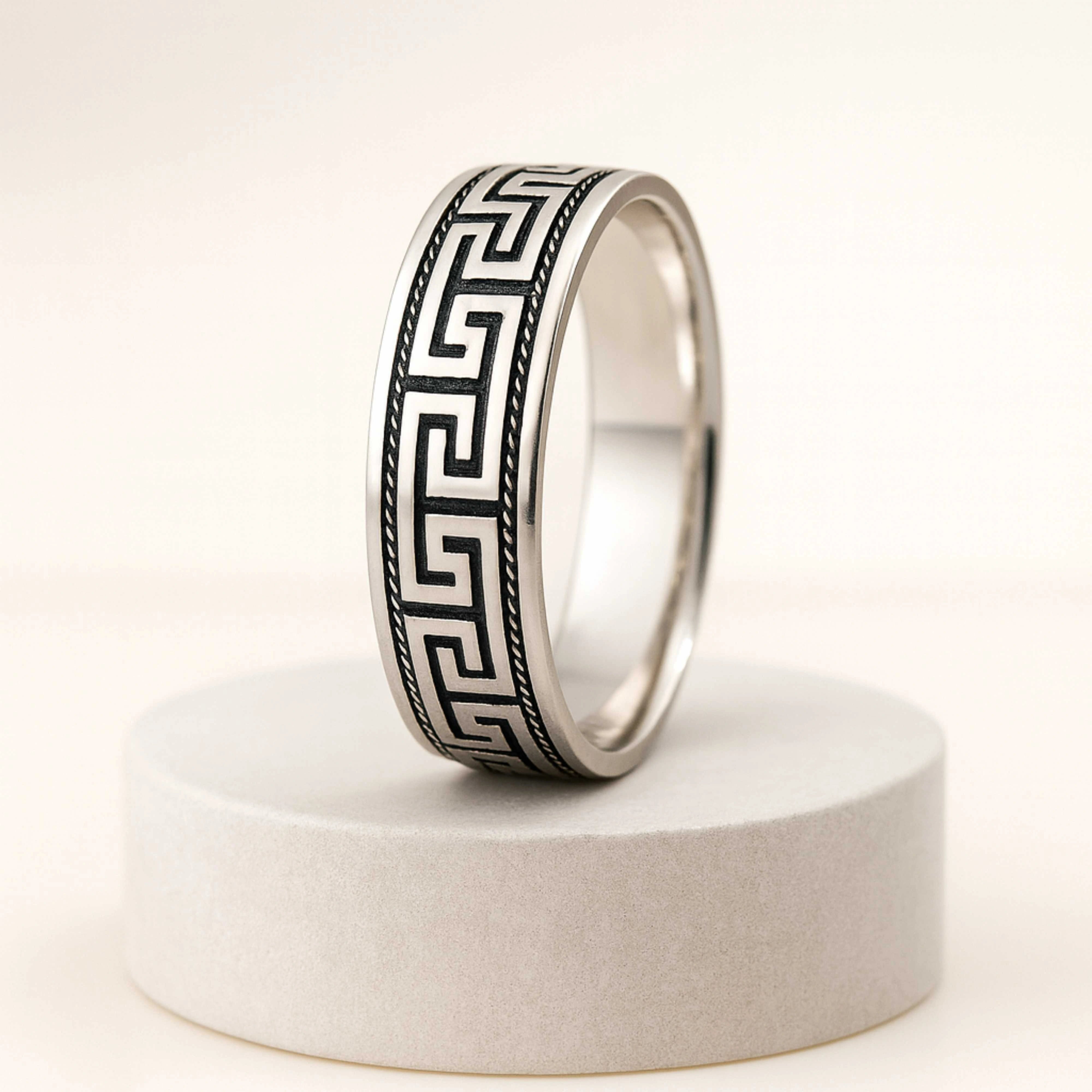 925 Sterling Silver Rhodium Plated Greek Pattern Band Ring for Men