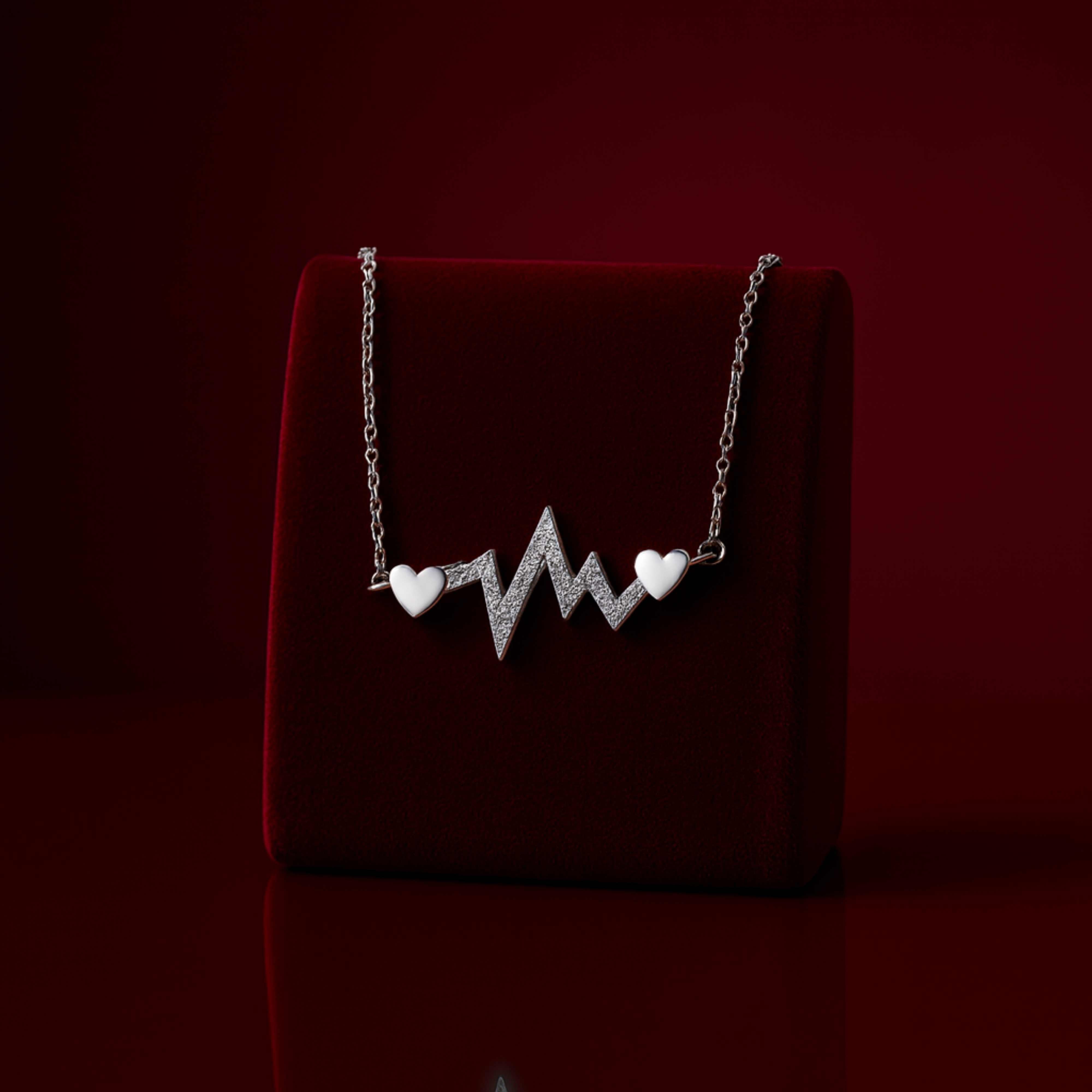 925 Sterling Silver Rhodium Plated Heartbeat Necklace with Cubic Zirconia
