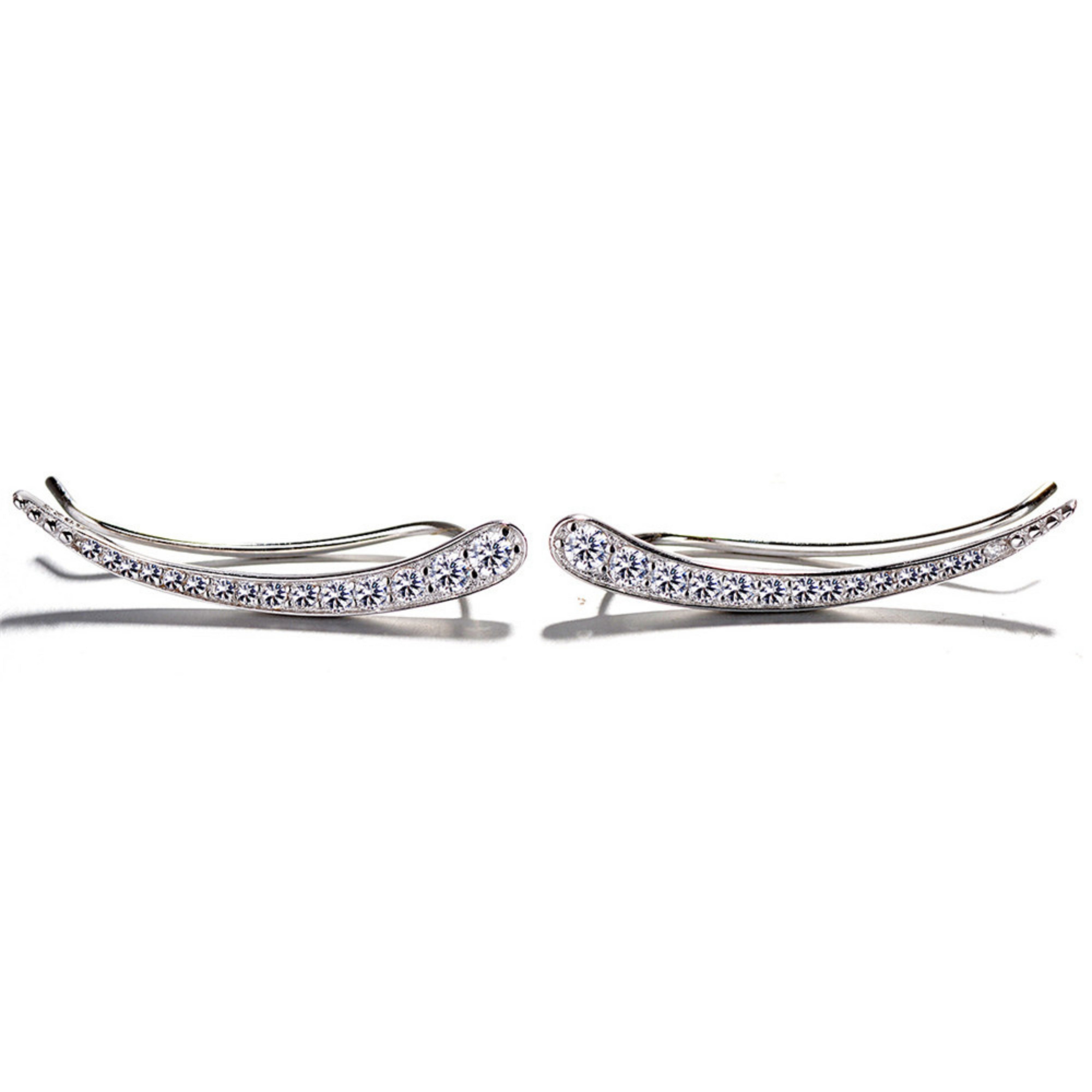 925 Sterling Silver Rhodium Plated Minimalist Ear Cuffs with Cubic Zirconia