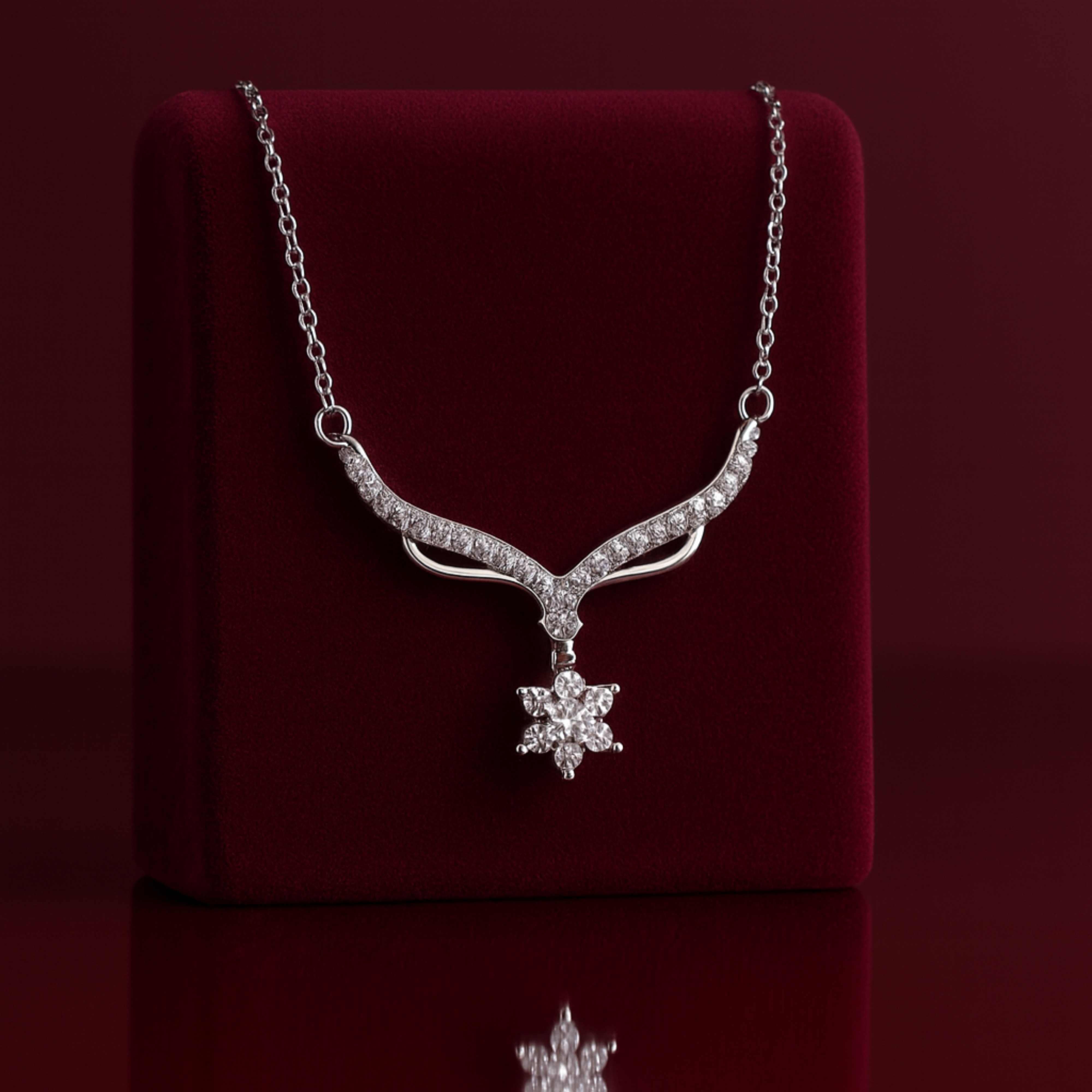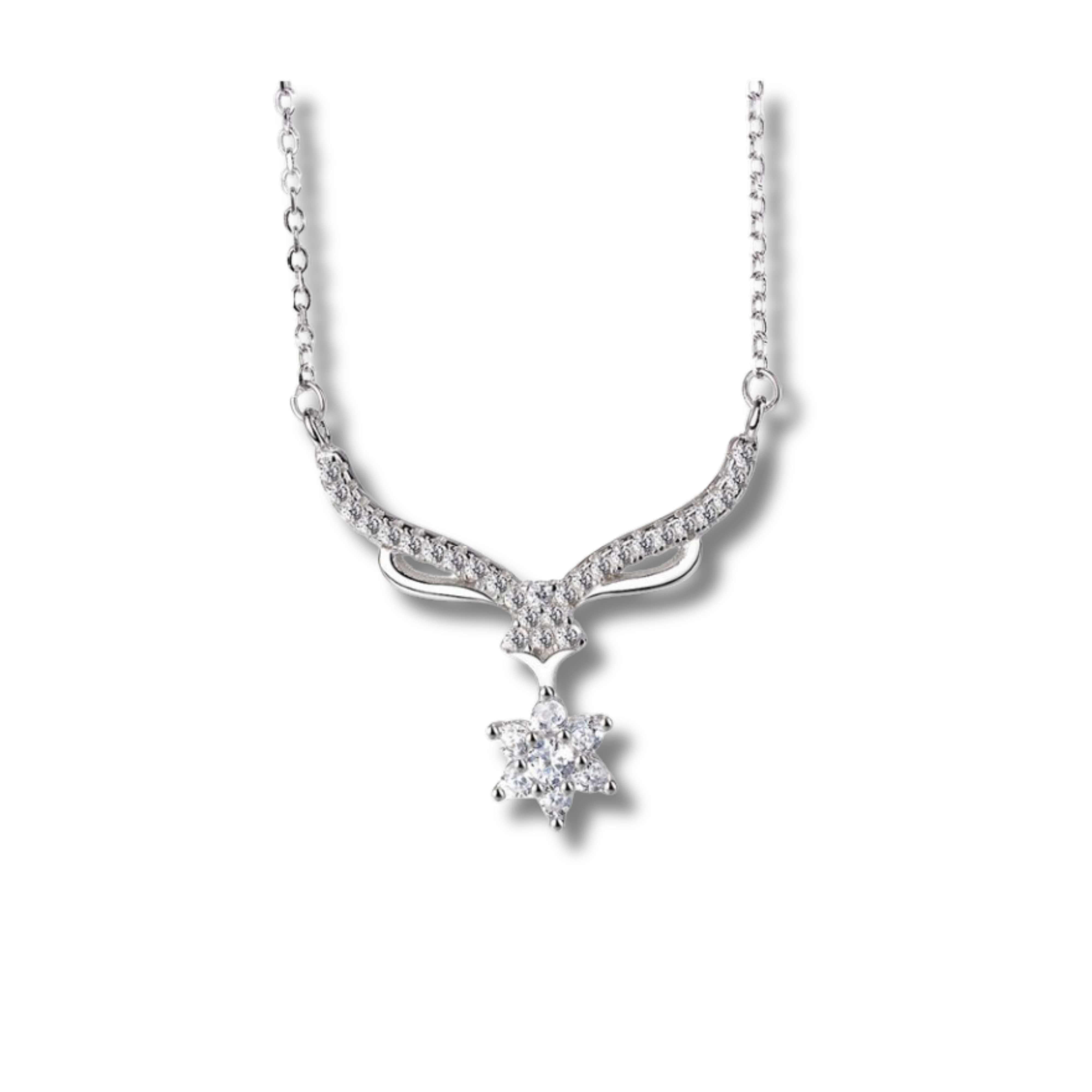 925 Sterling Silver Rhodium Plated Star Necklace with Cubic Zirconia Drop Pendant