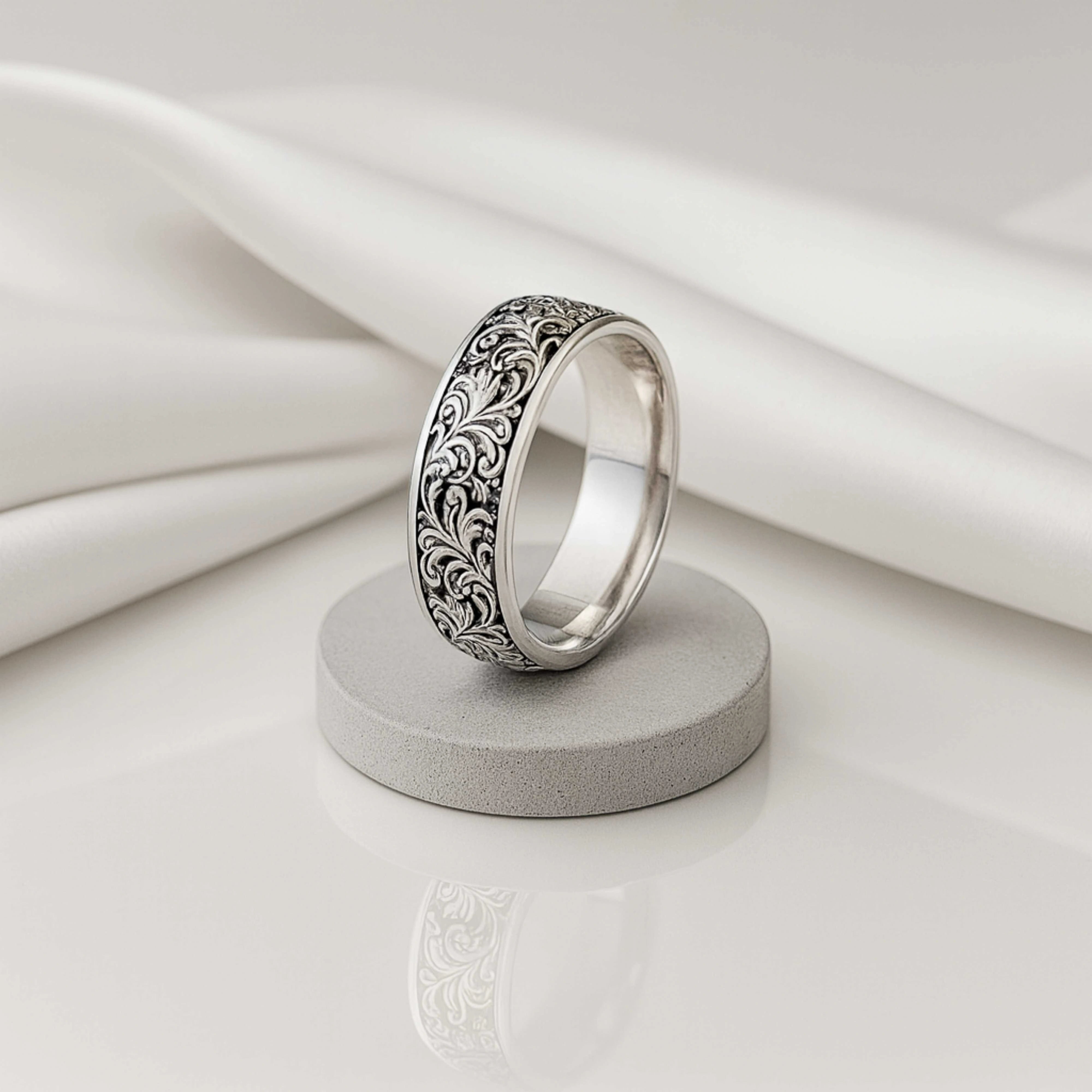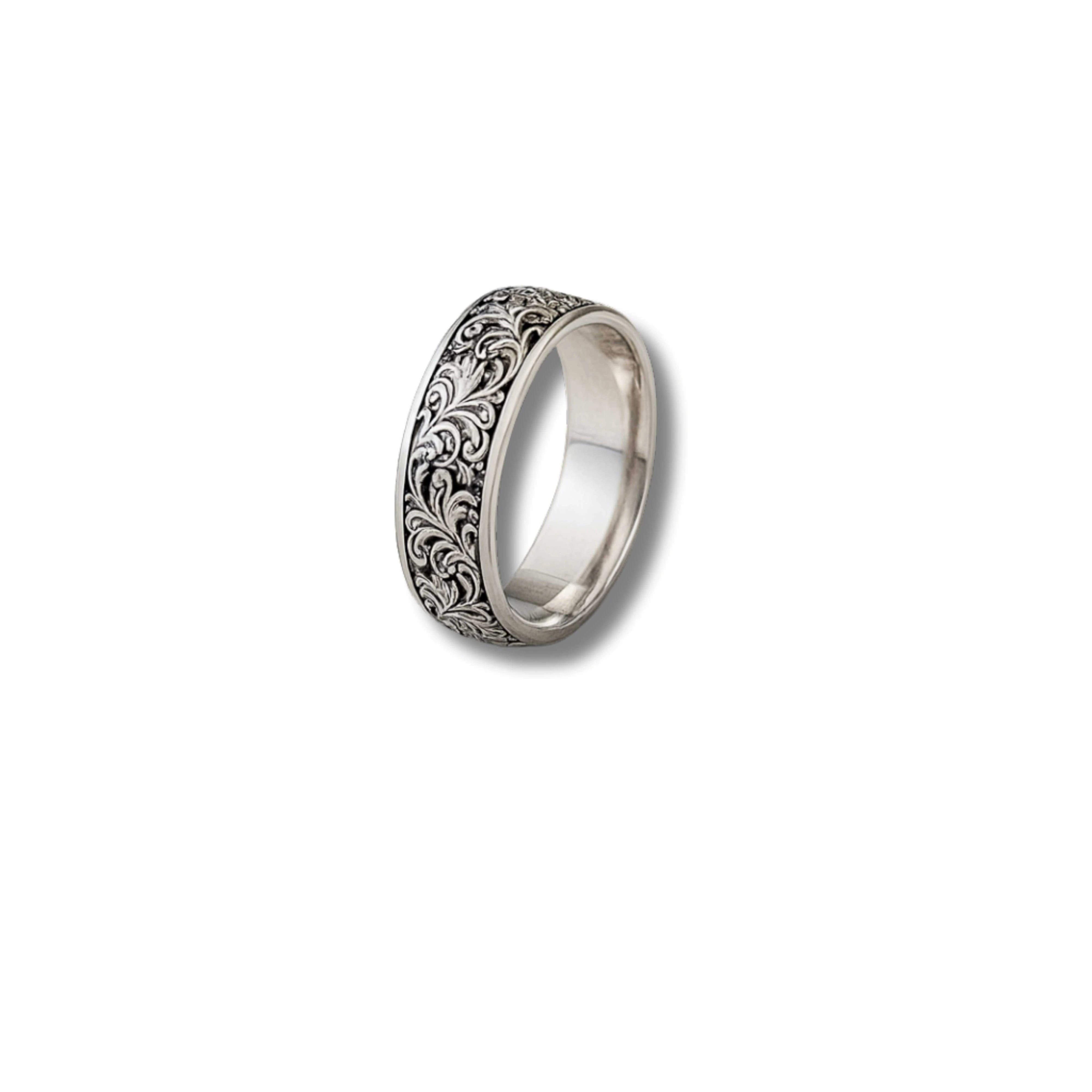 925 Sterling Silver Rhodium Plated Vintage Engraved Band Ring for Men