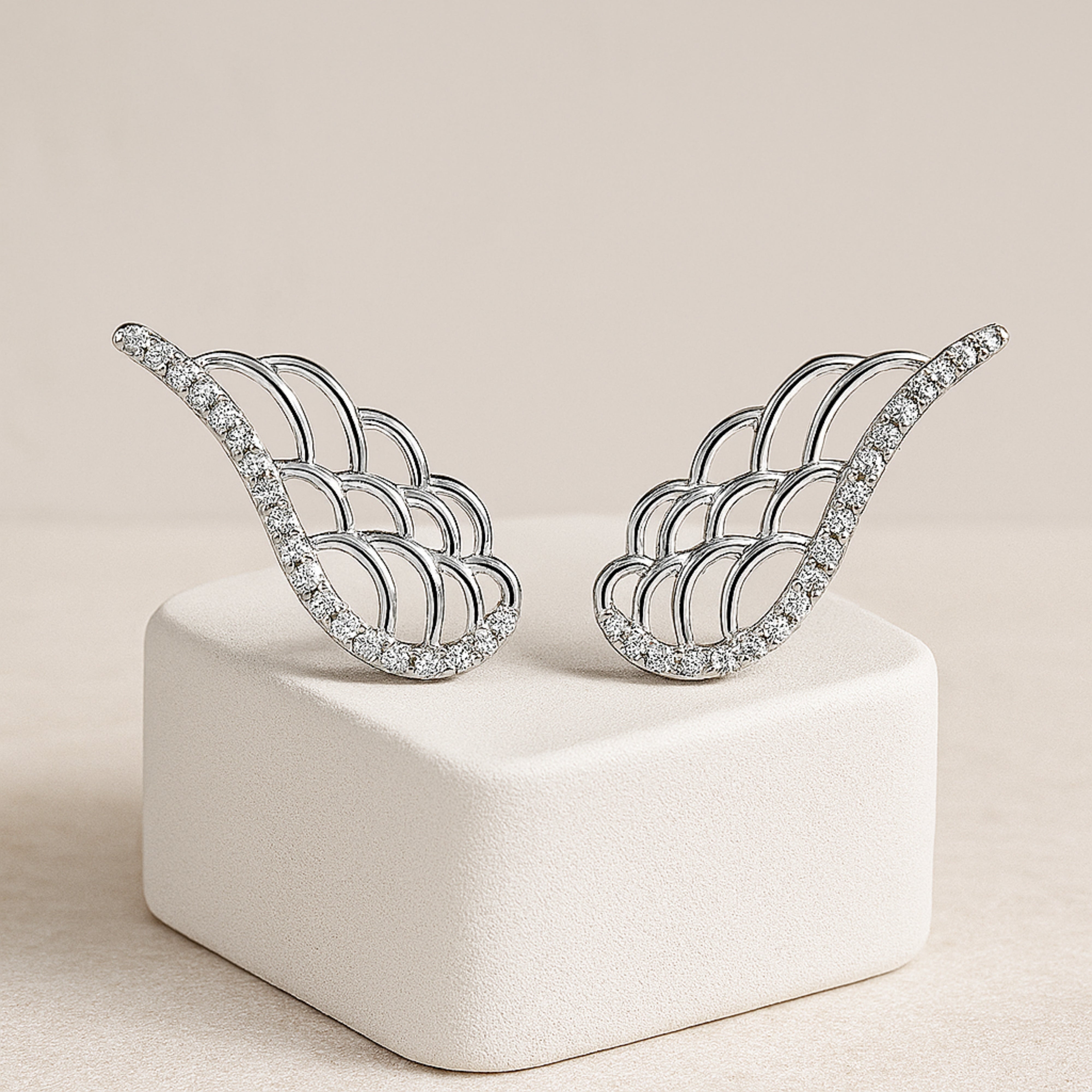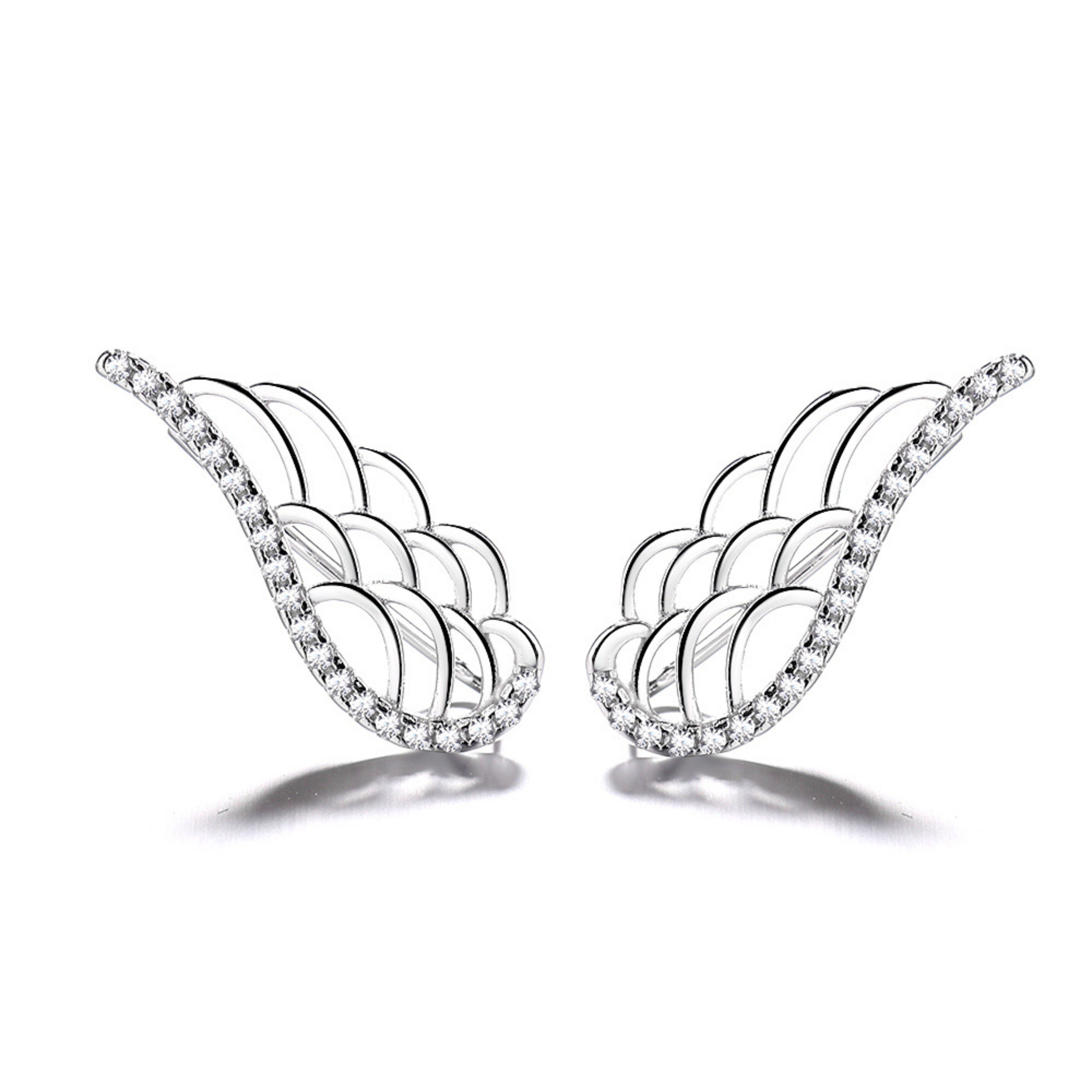 925 Sterling Silver Rhodium Plated Wing Design Ear Cuffs with Cubic Zirconia