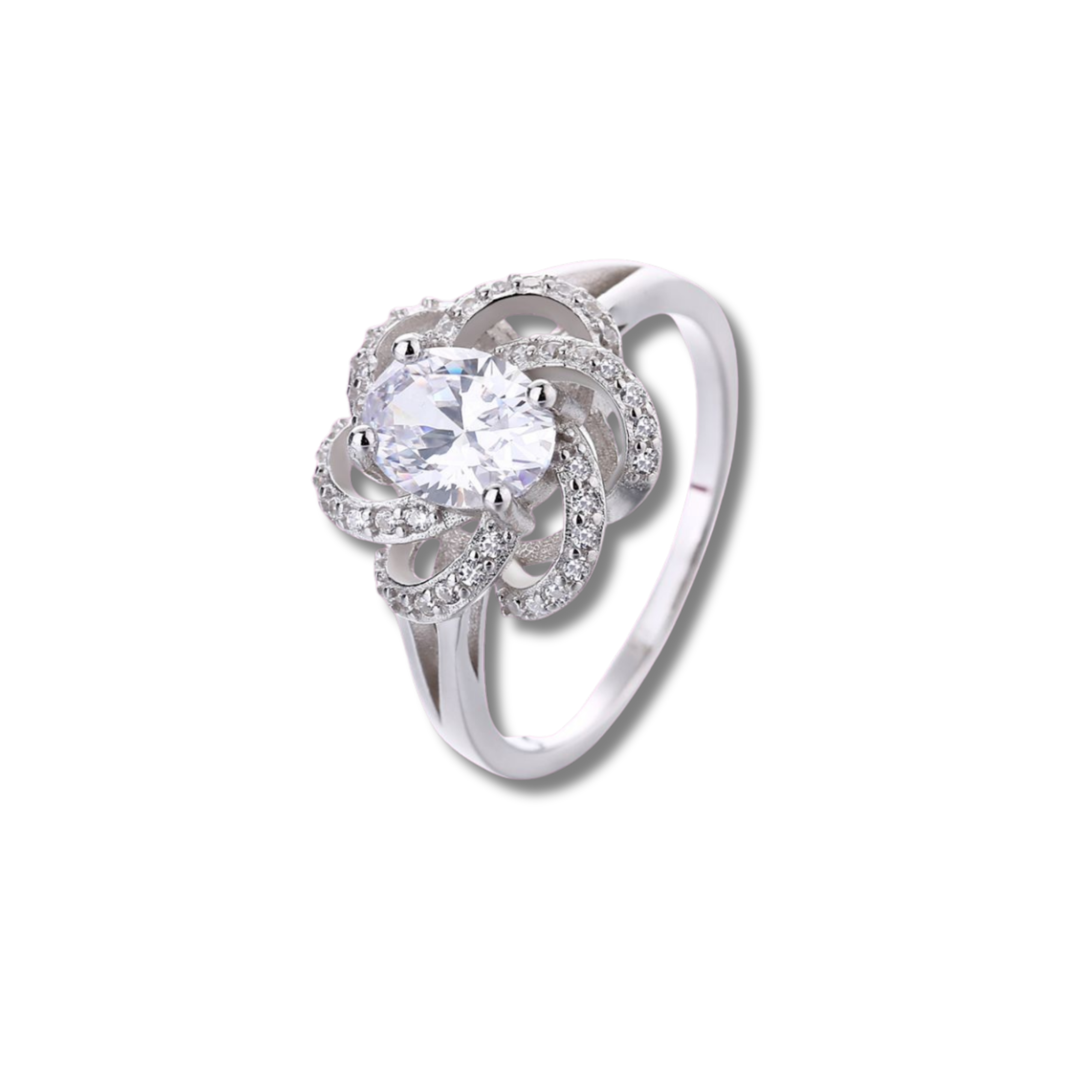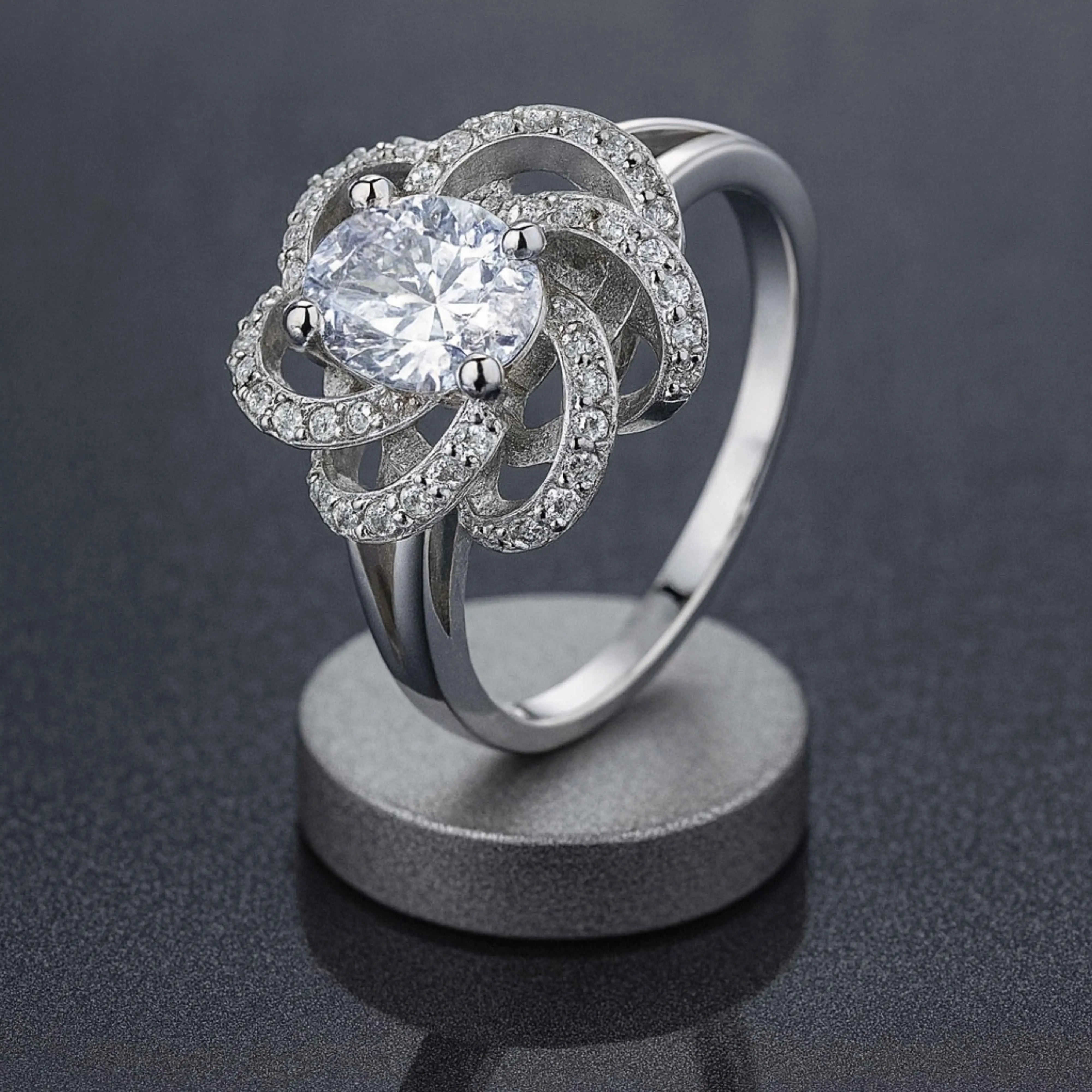 925 Sterling Silver Round-Cut Floral Halo Engagement Ring