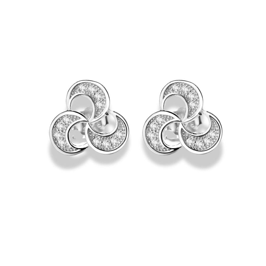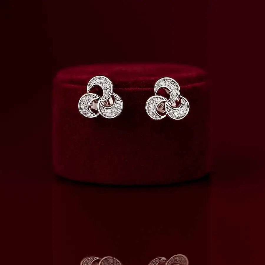925 Sterling Silver Triple Crescent Stud Earrings|Rhodium Plated with Cubic Zirconia