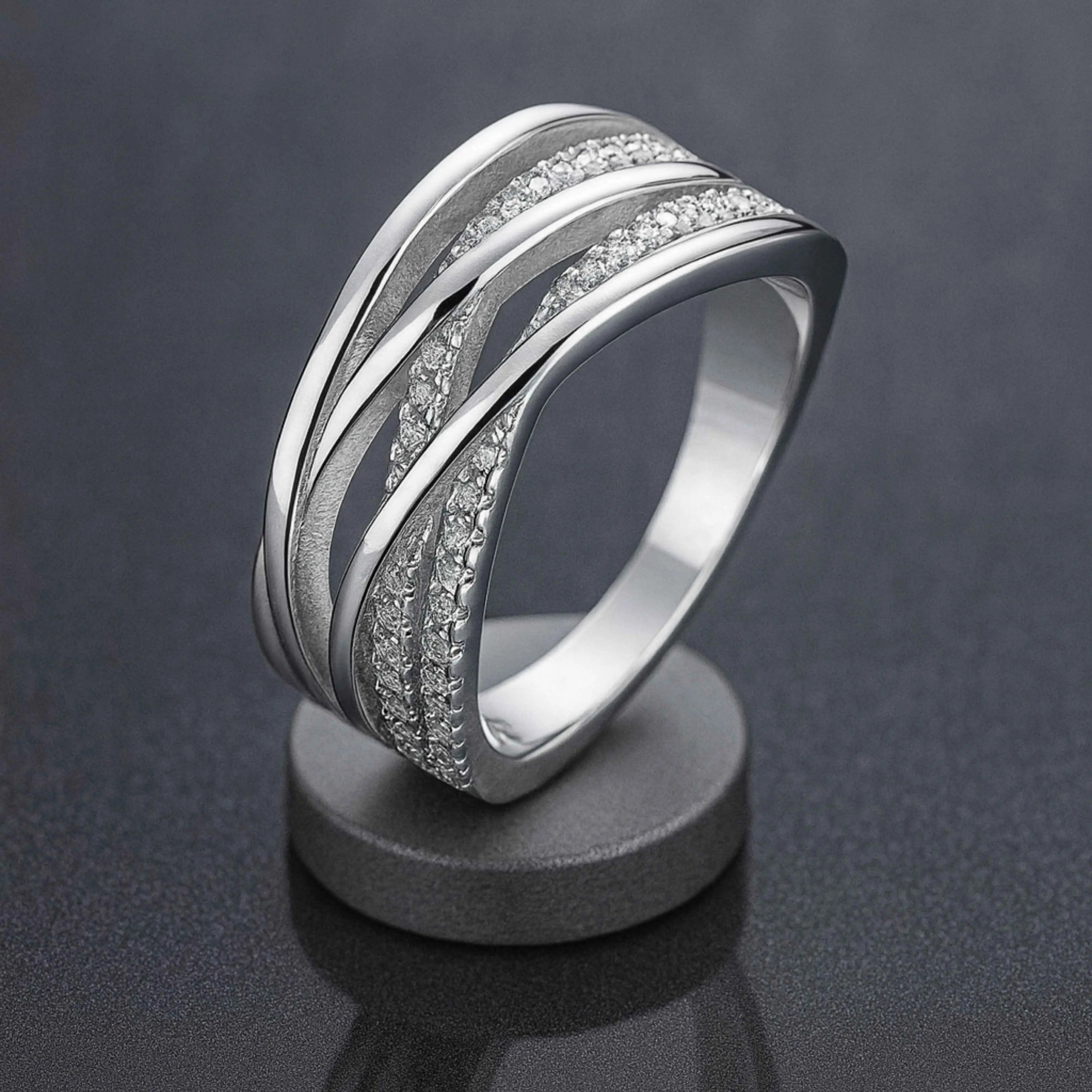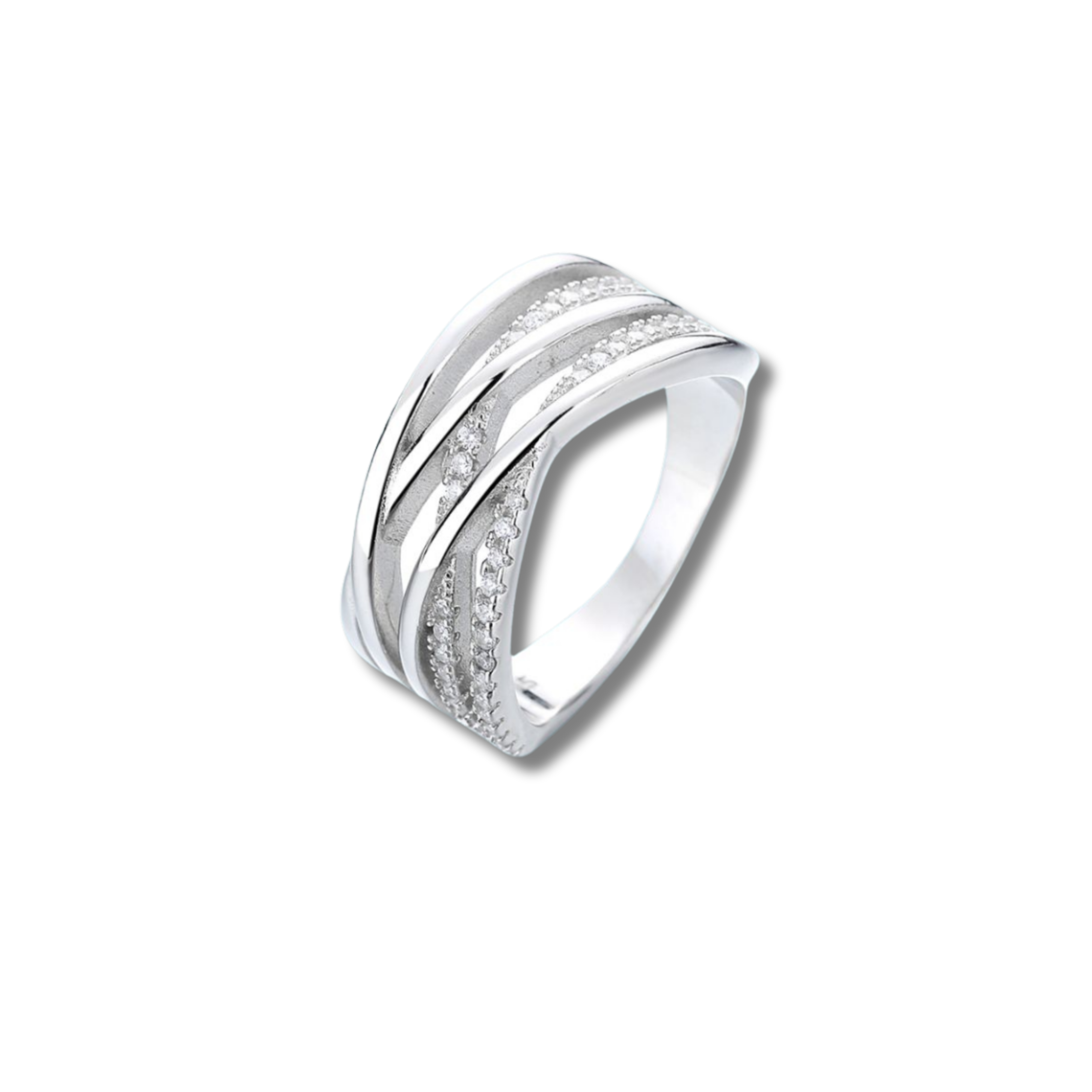 925 Sterling Silver Triple Row Cross-Over Band Ring
