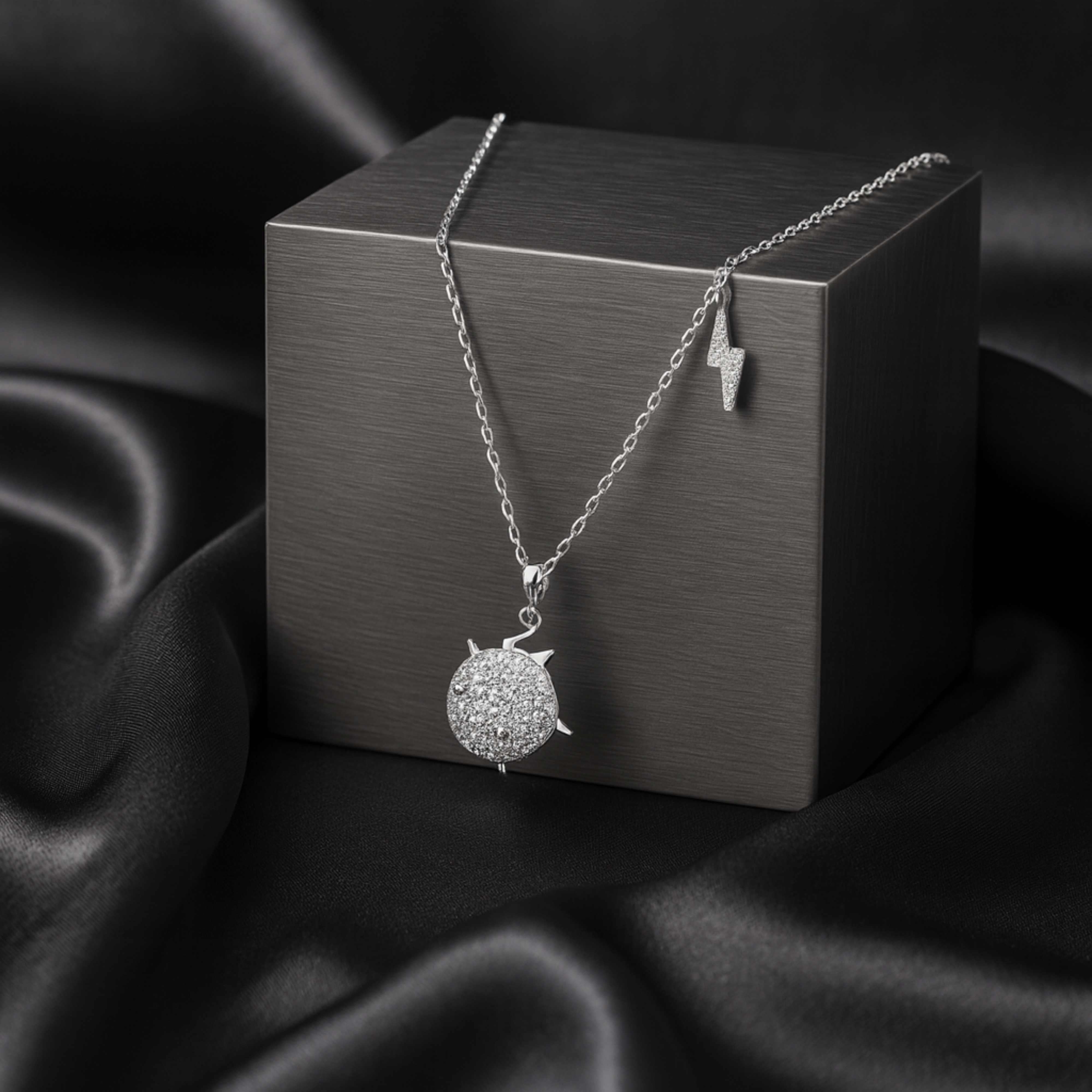 925 Sterling Silver Turtle Pendant Necklace | Rhodium Plated with Cubic Zirconia