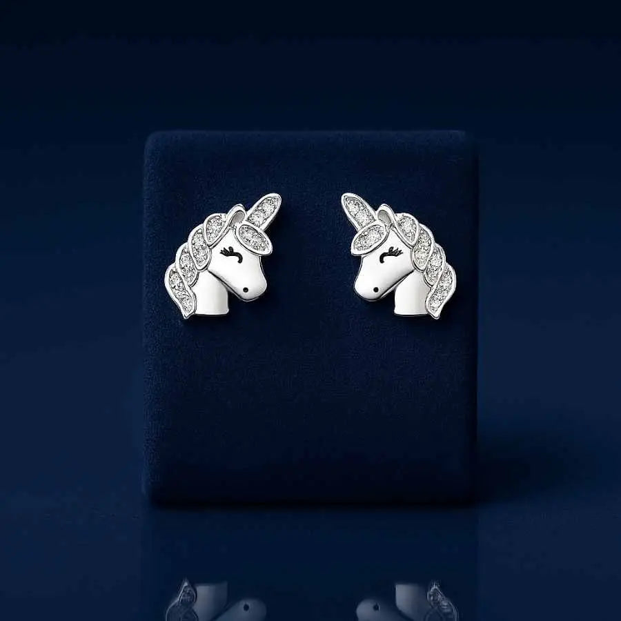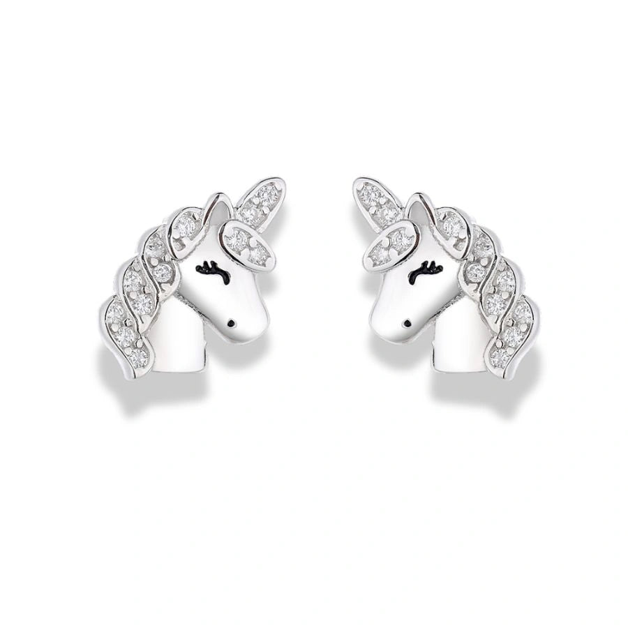 925 Sterling Silver Unicorn Stud Earrings | Rhodium Plated with Cubic Zirconia