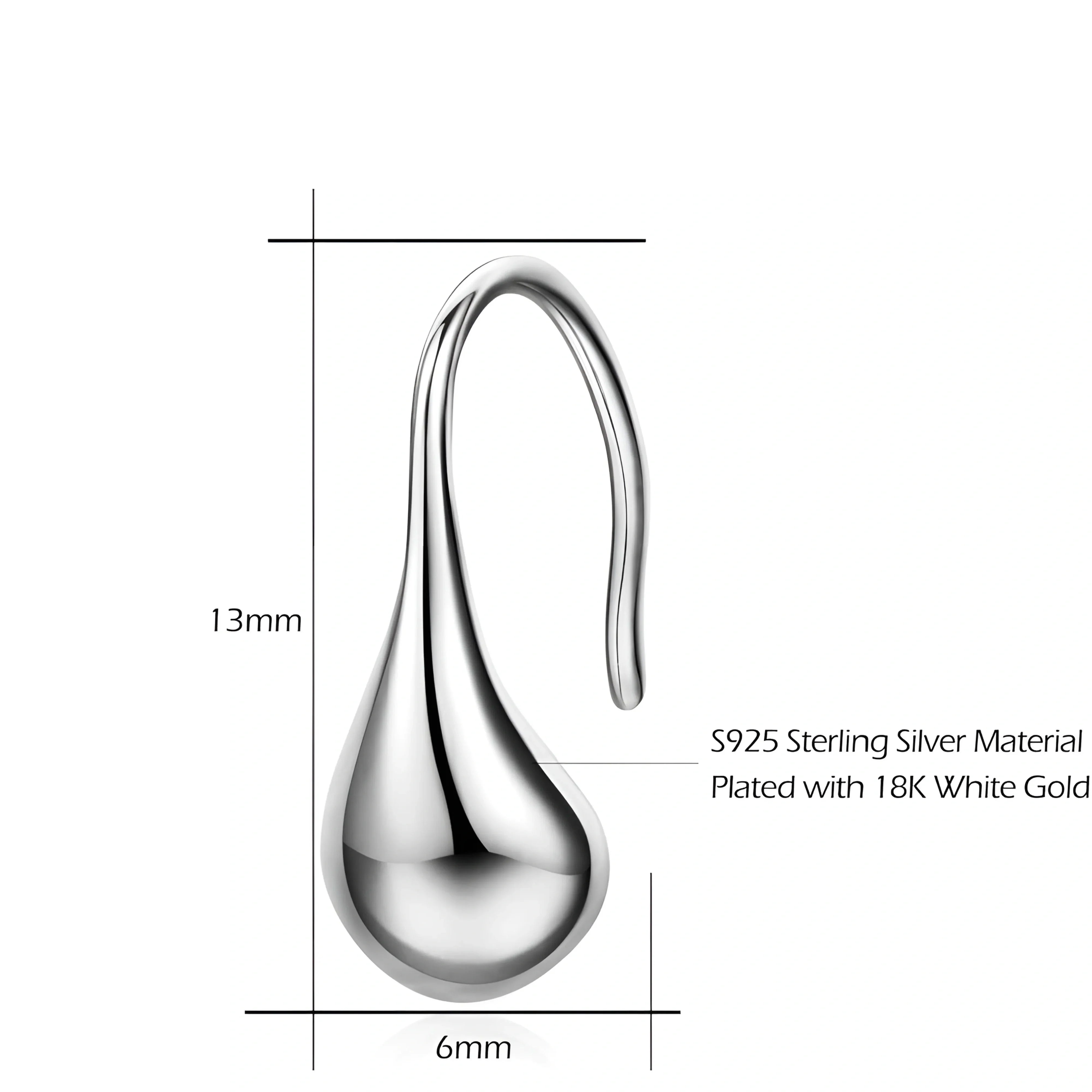 925 Sterling Silver Waterdrop Hook Earrings (Stone-Free Design)