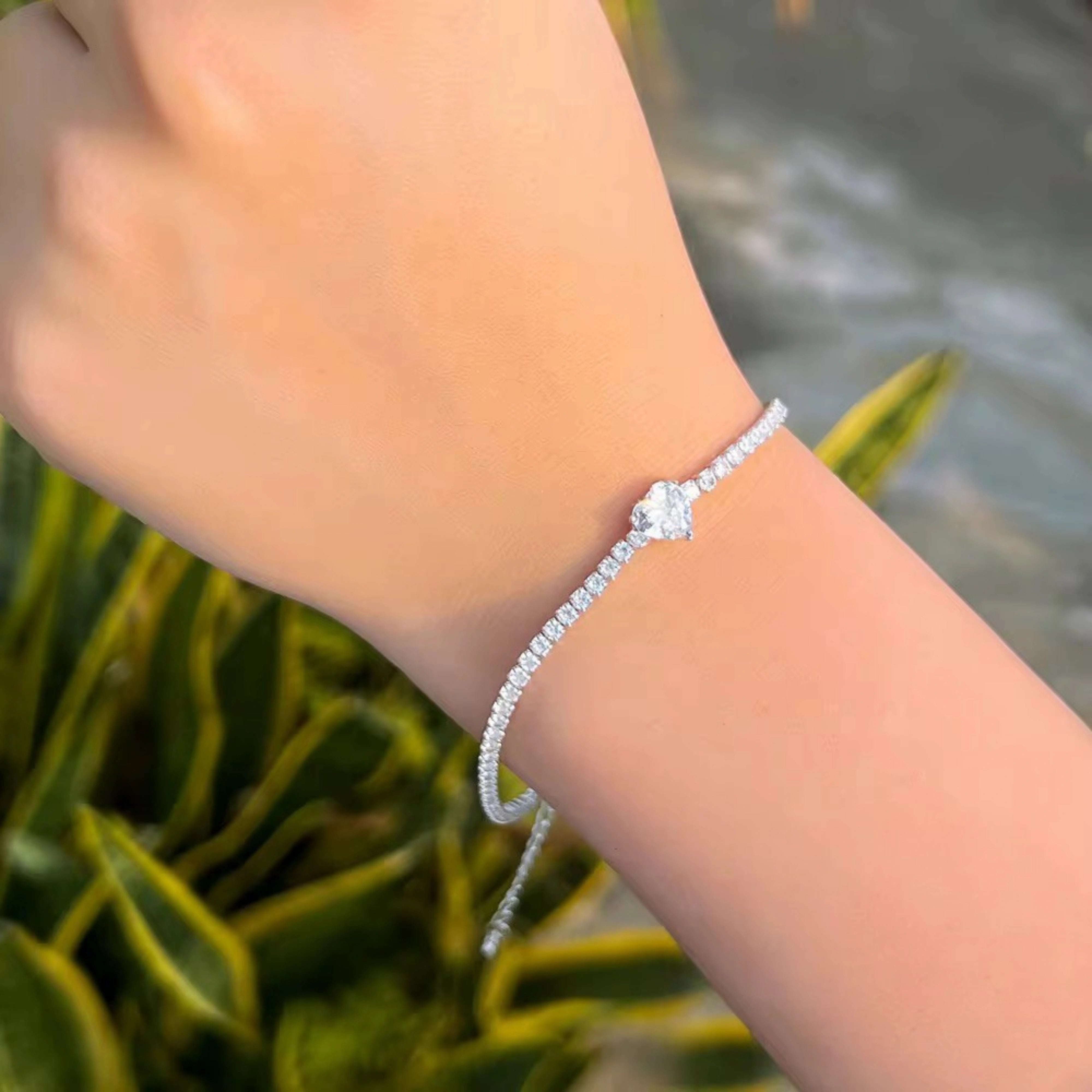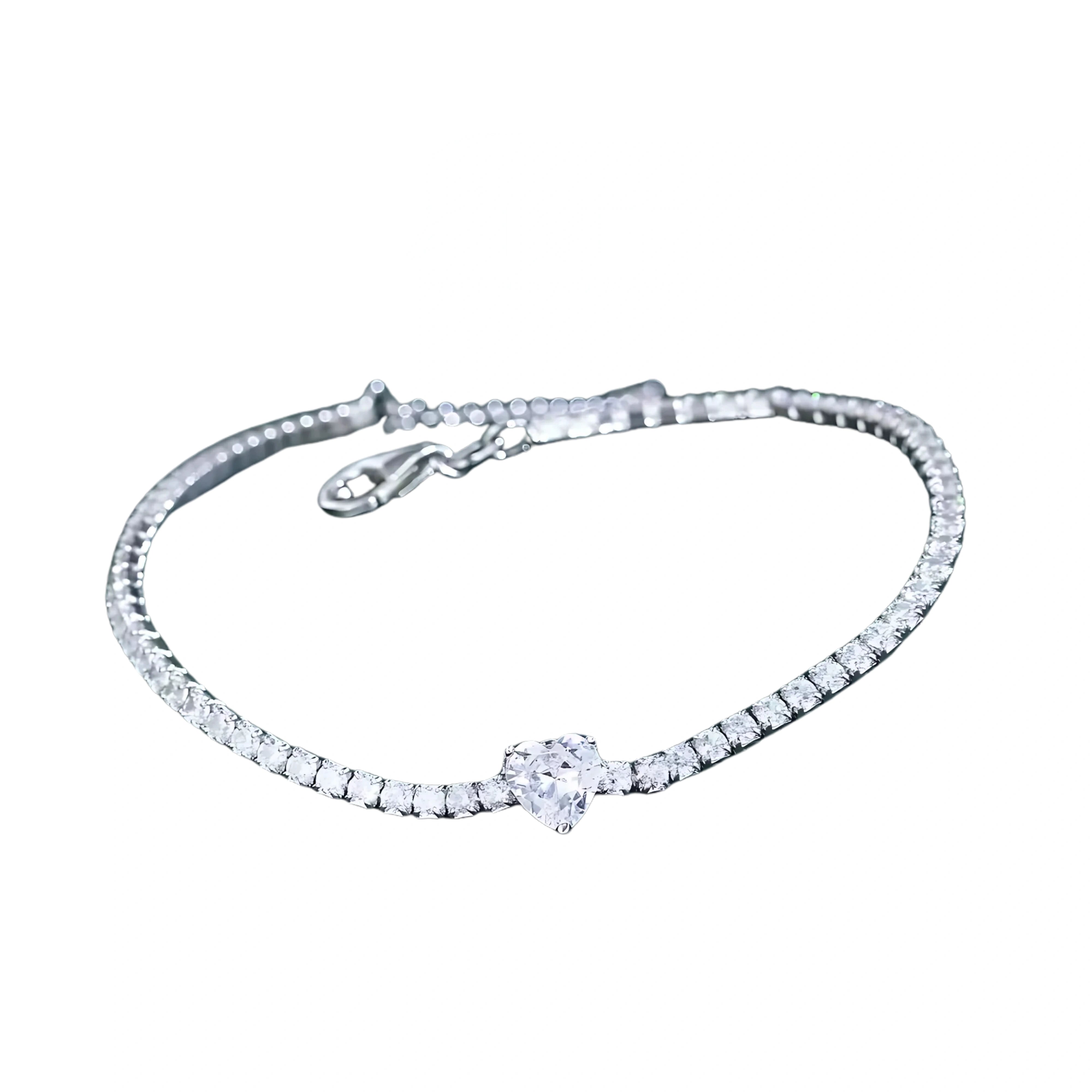 Adjustable Cubic Zirconia 925 Sterling Silver Heart Charms Bracelets Bangle for Women Bulk Wholesale Lady Fashion Jewelry