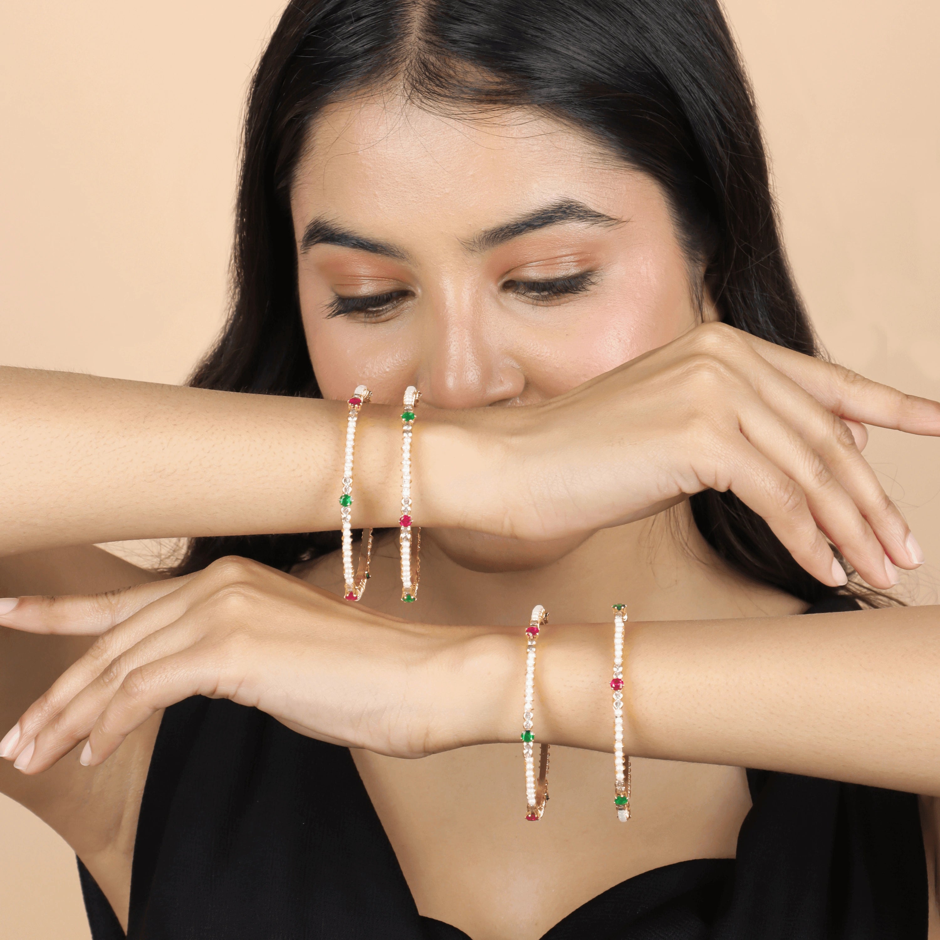 Beautiful Design Gold Plated Green & Red Moti Maharashtrian Bangles