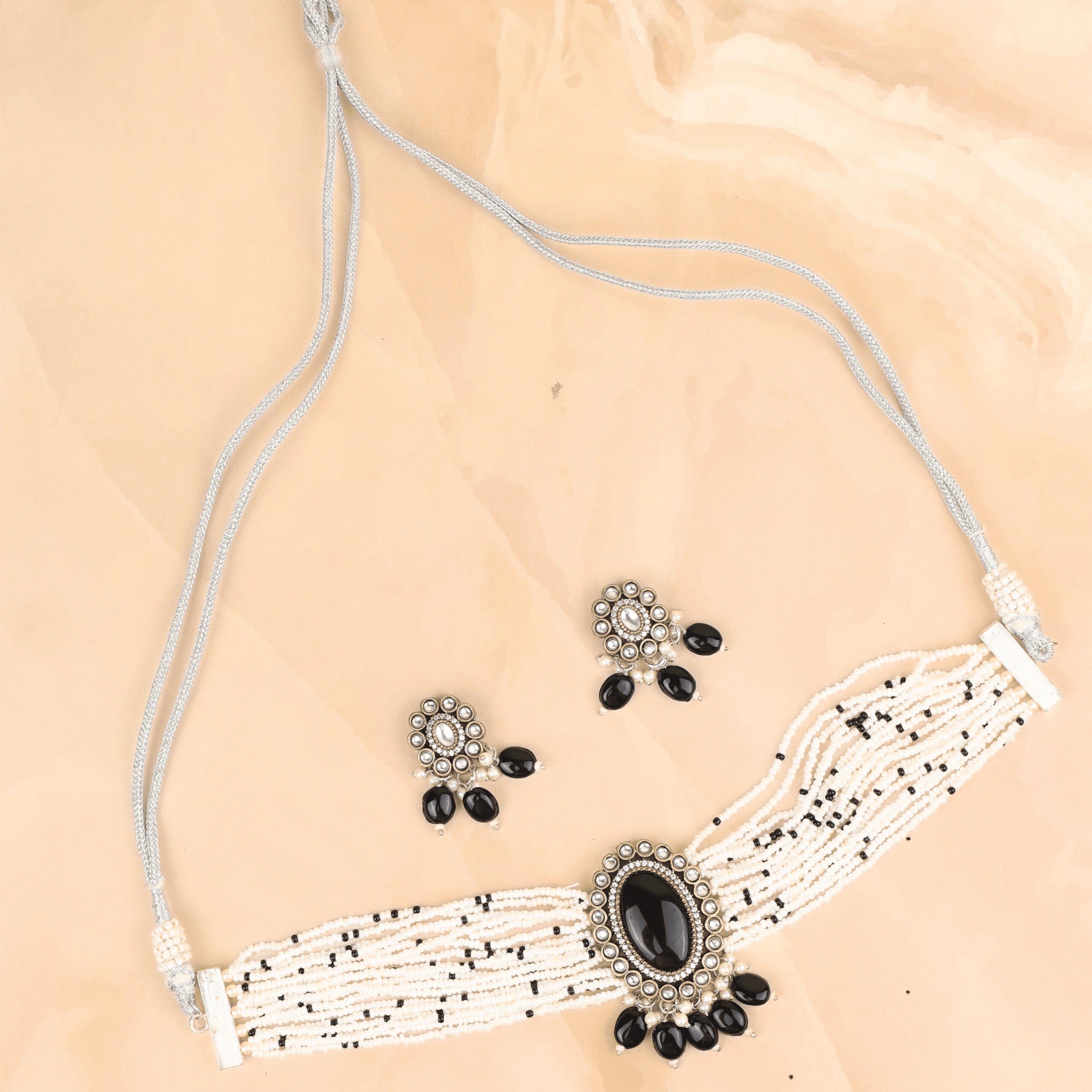 Black Kundan Pearl Choker with Earrings - Rukhmani