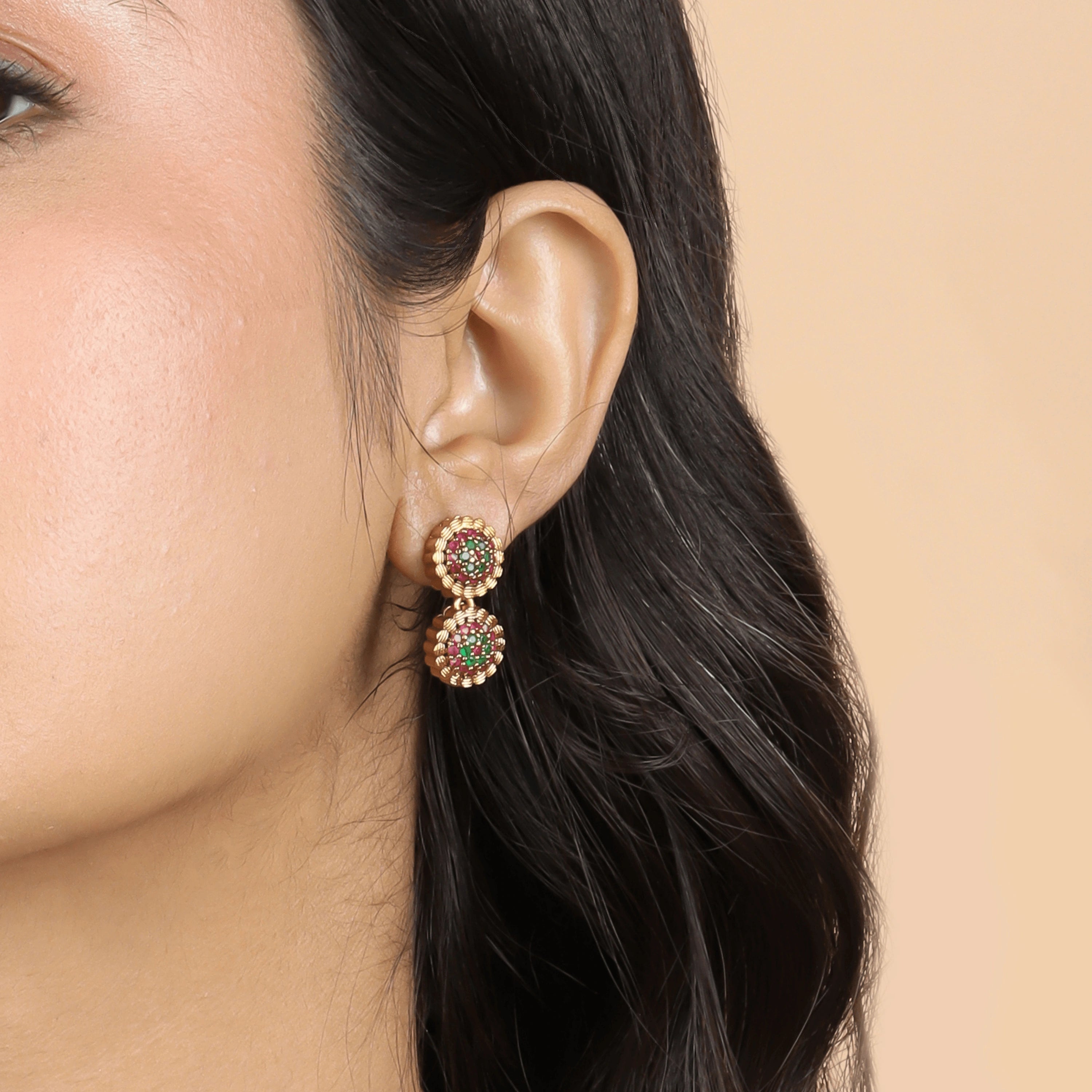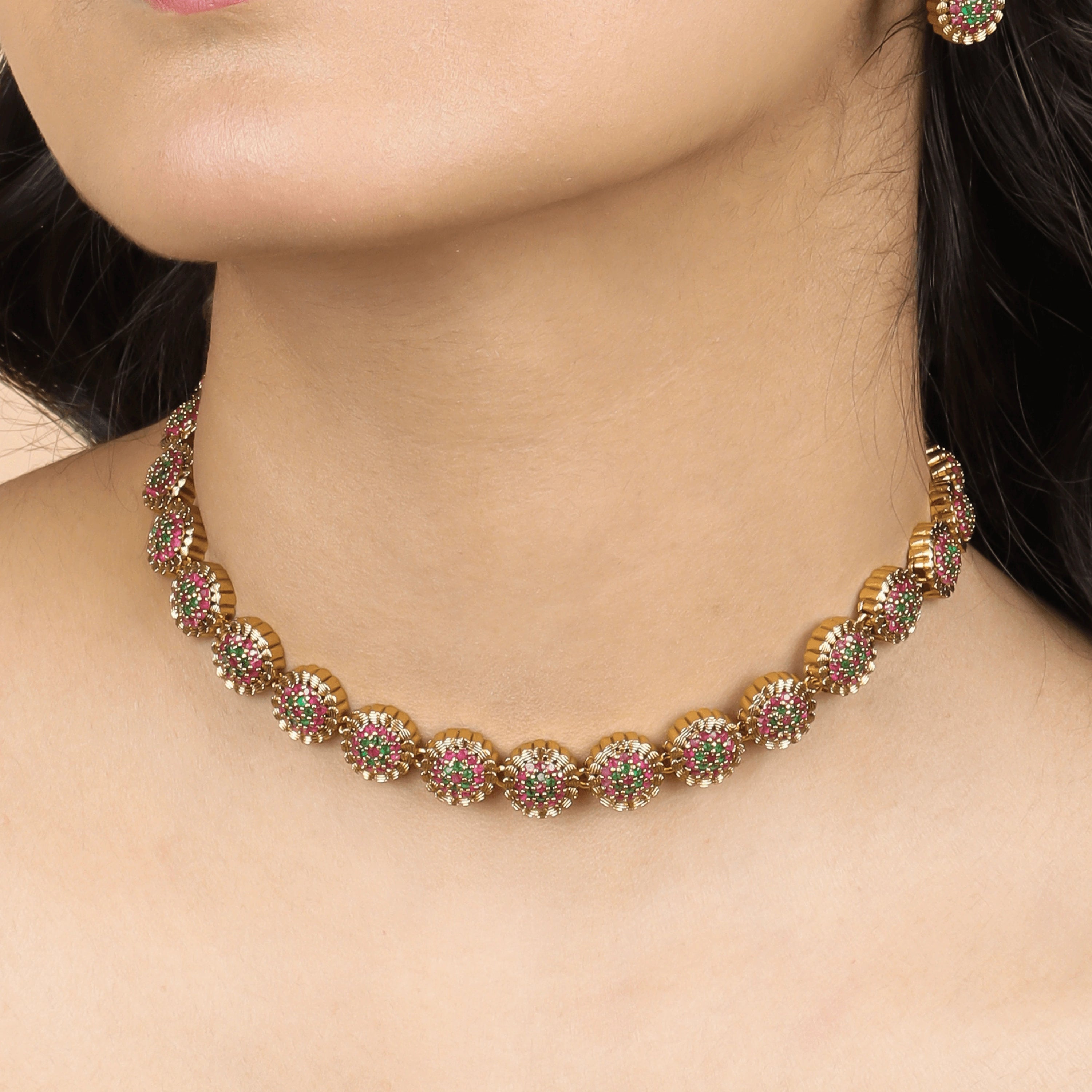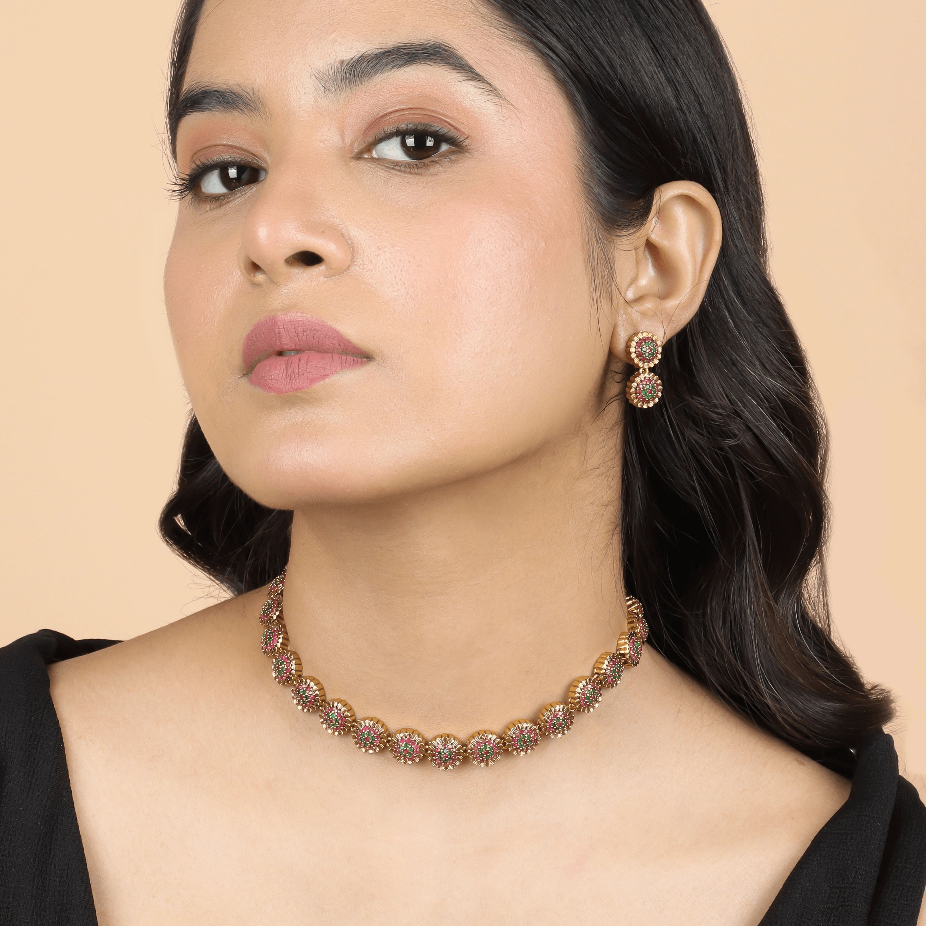 Colored Stone South Indian Necklace with Earrings - Rukhmani