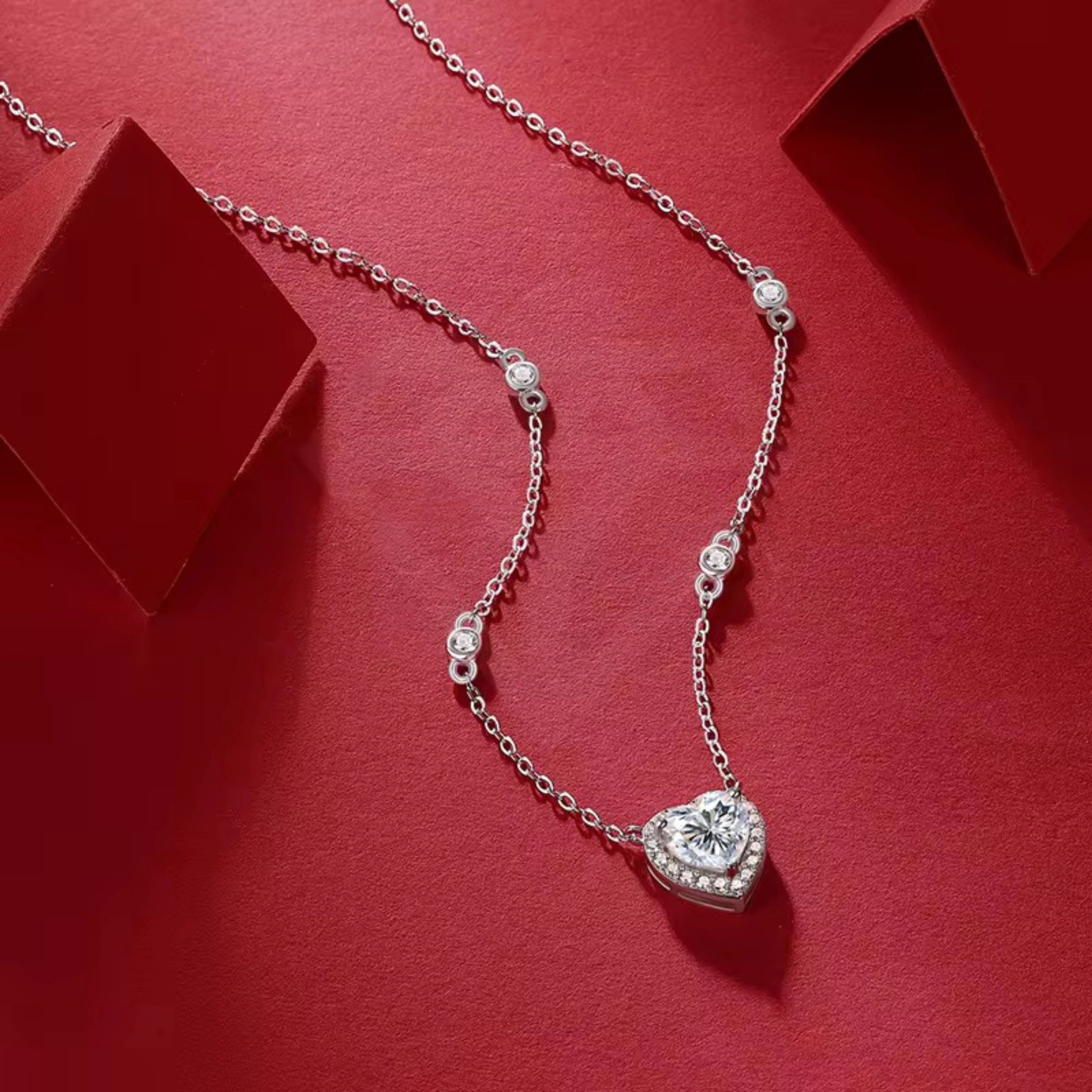 Elegant Charm Cubic Zircon 925 Sterling Silver Fashion Jewelry Gemstone Heart Pendant Chain Necklace for Women Decoration