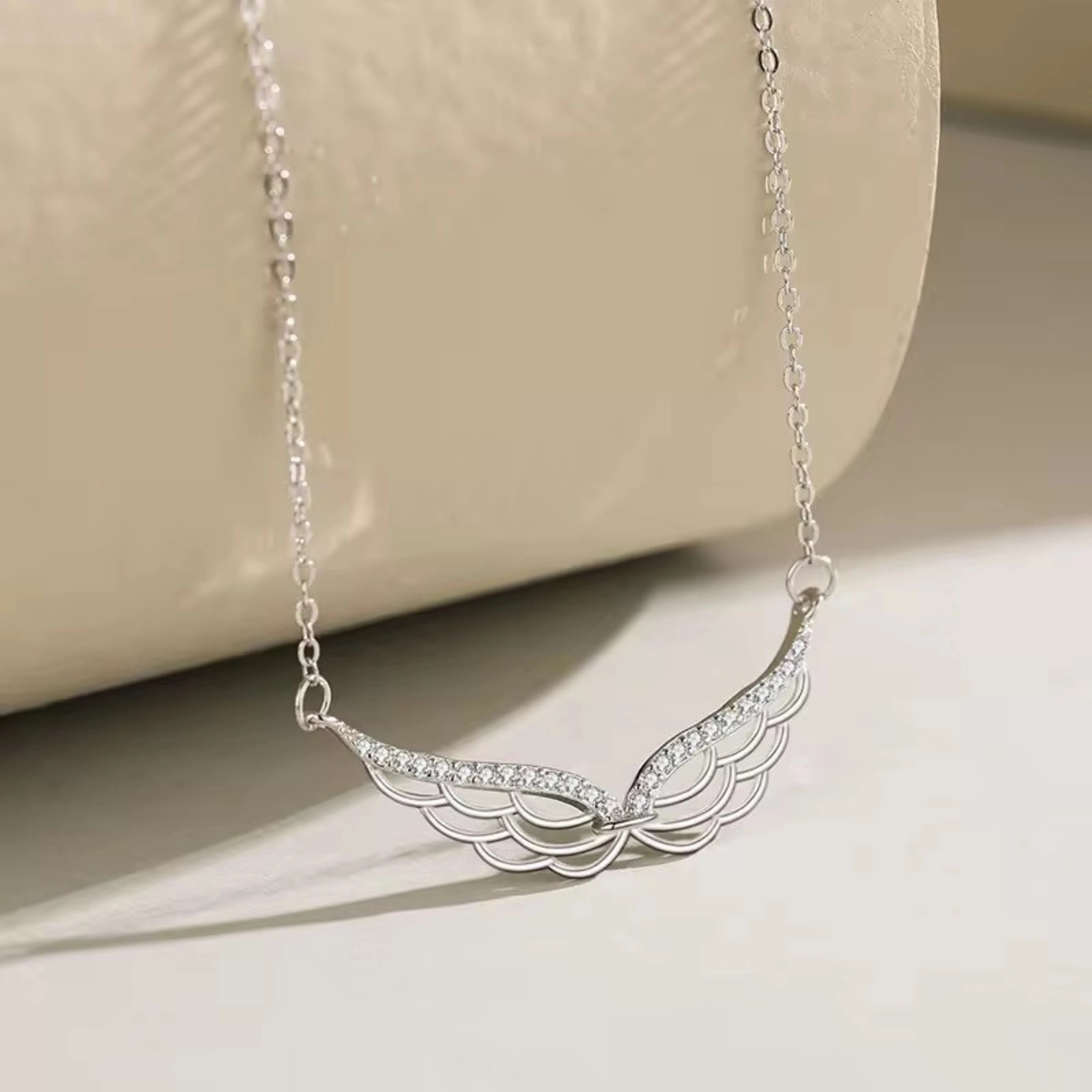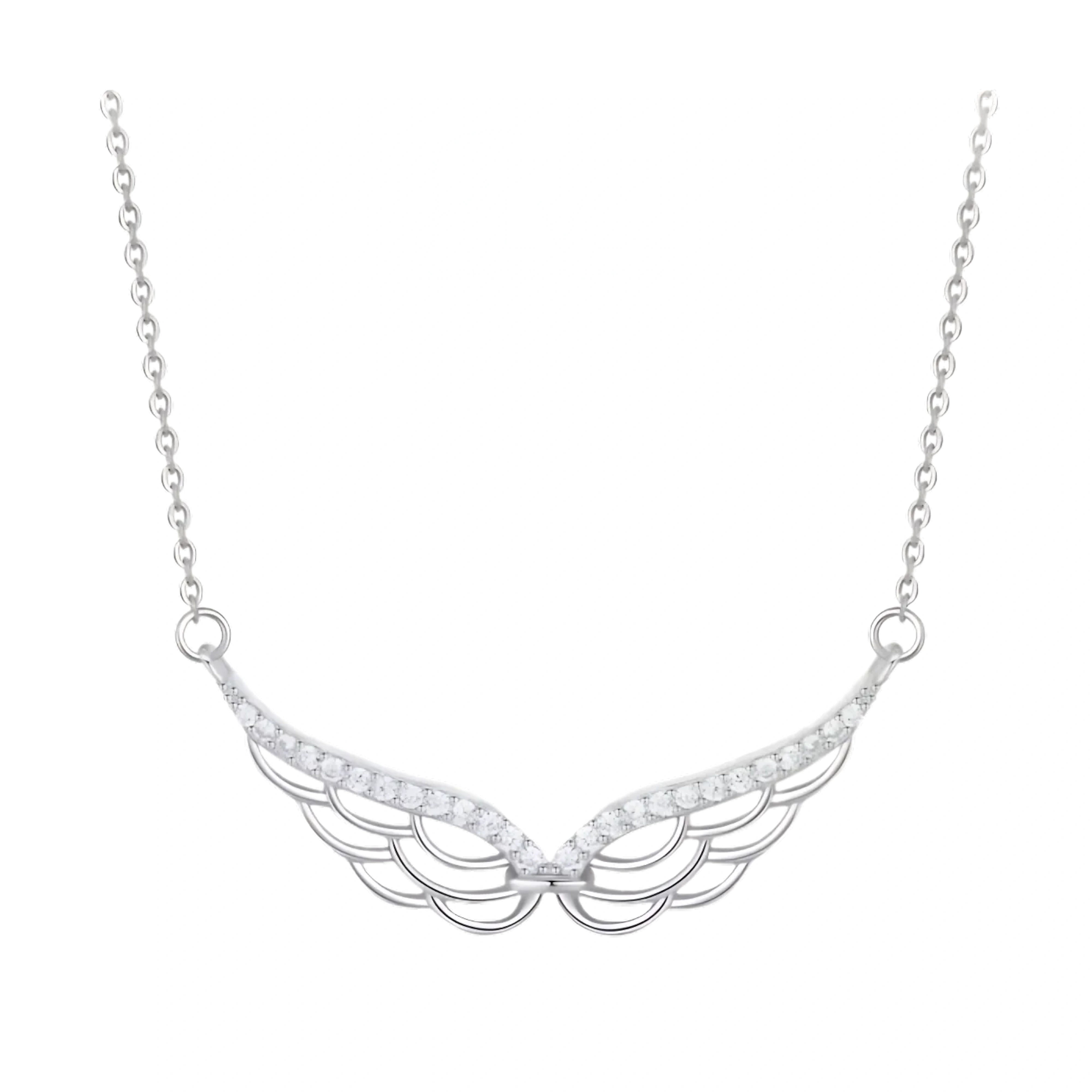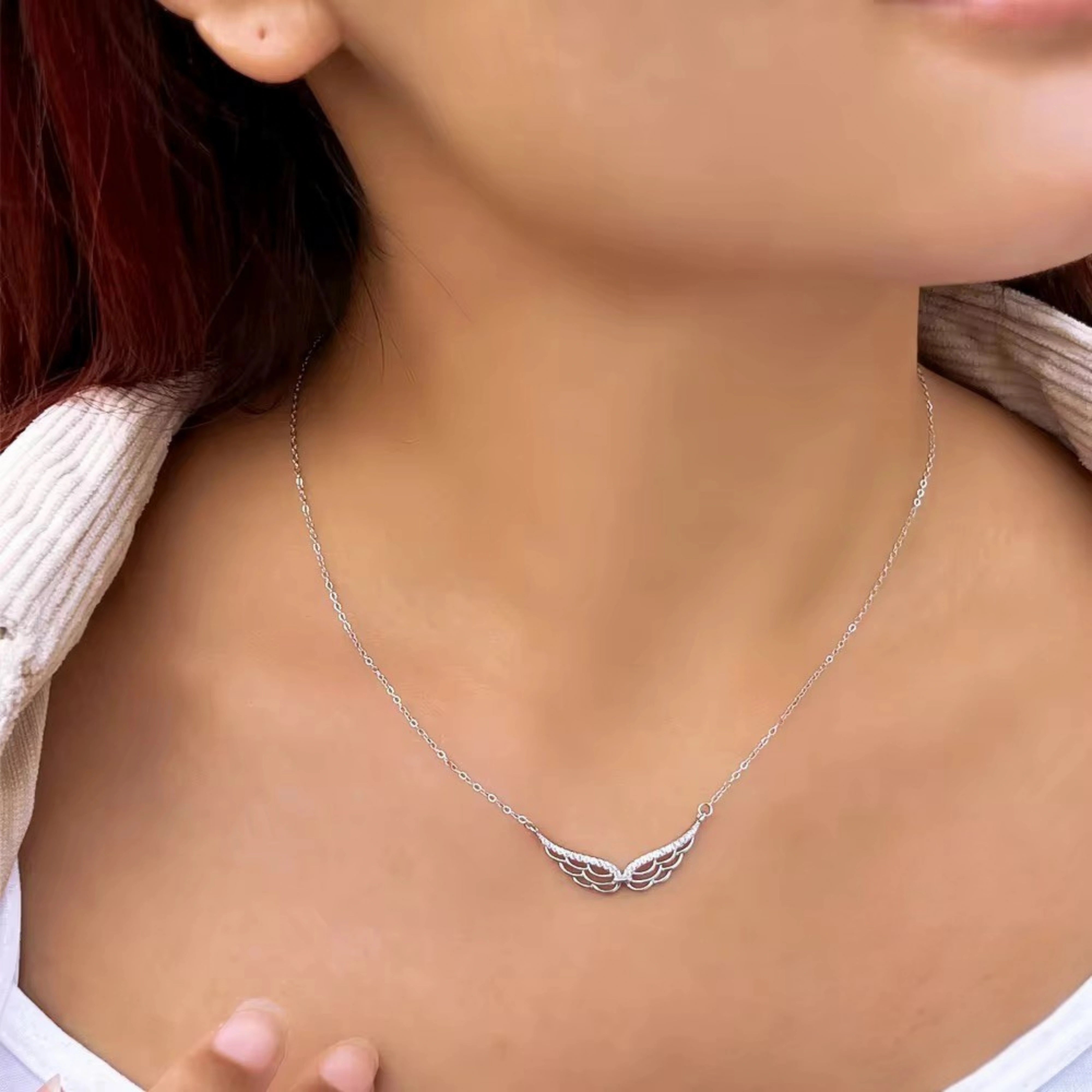 Exquisite Jewelry 925 Sterling Silver CZ Diamond Angel Wing Pendant Necklace for Women
