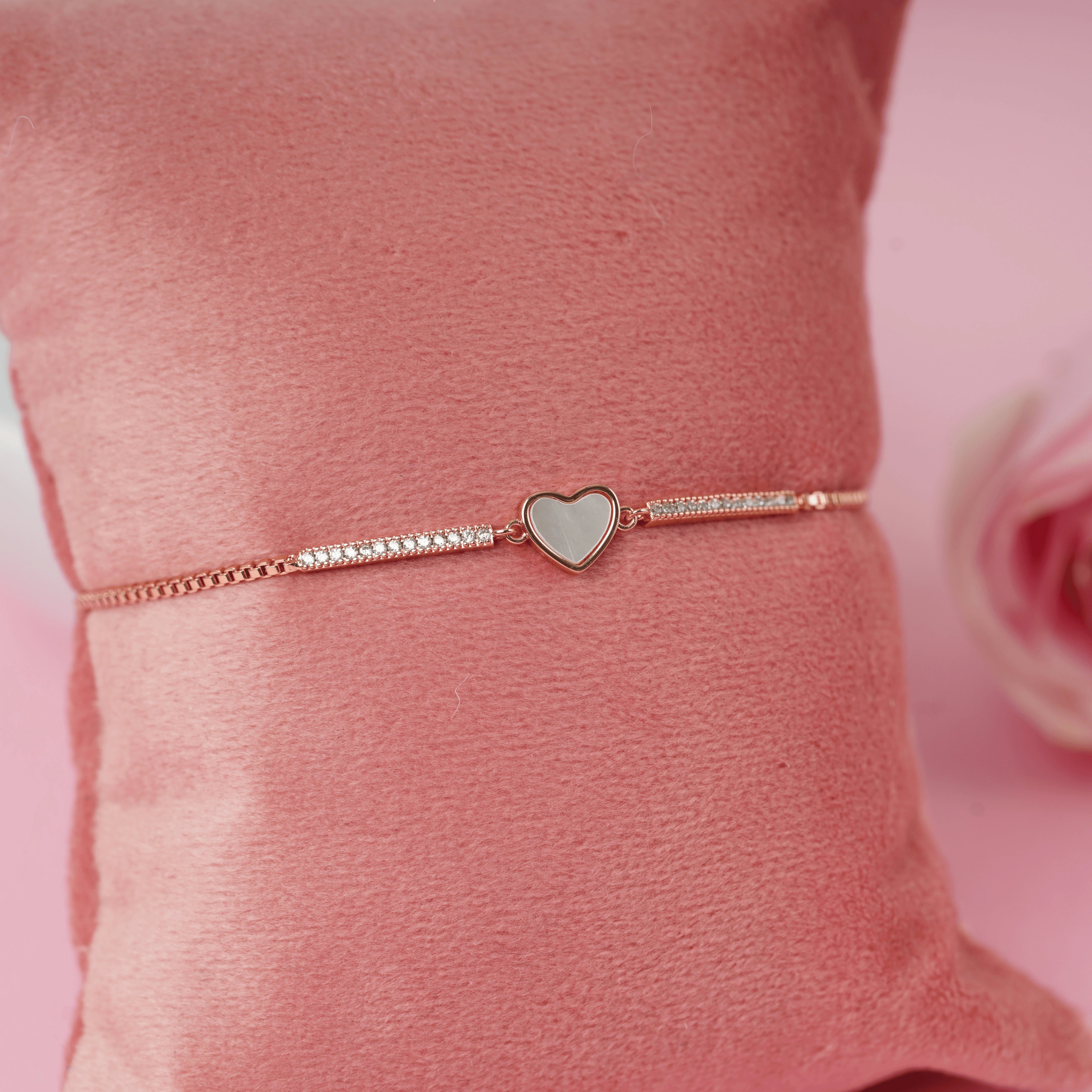 Fancy Design Adjustable Heart Shape Rose Gold Plated Beautiful Bracelet - Rukhmani